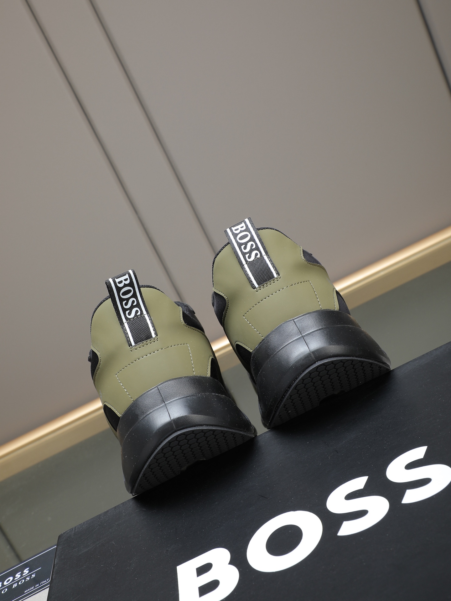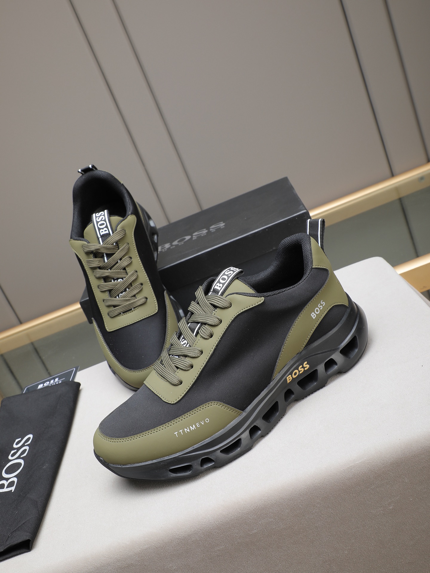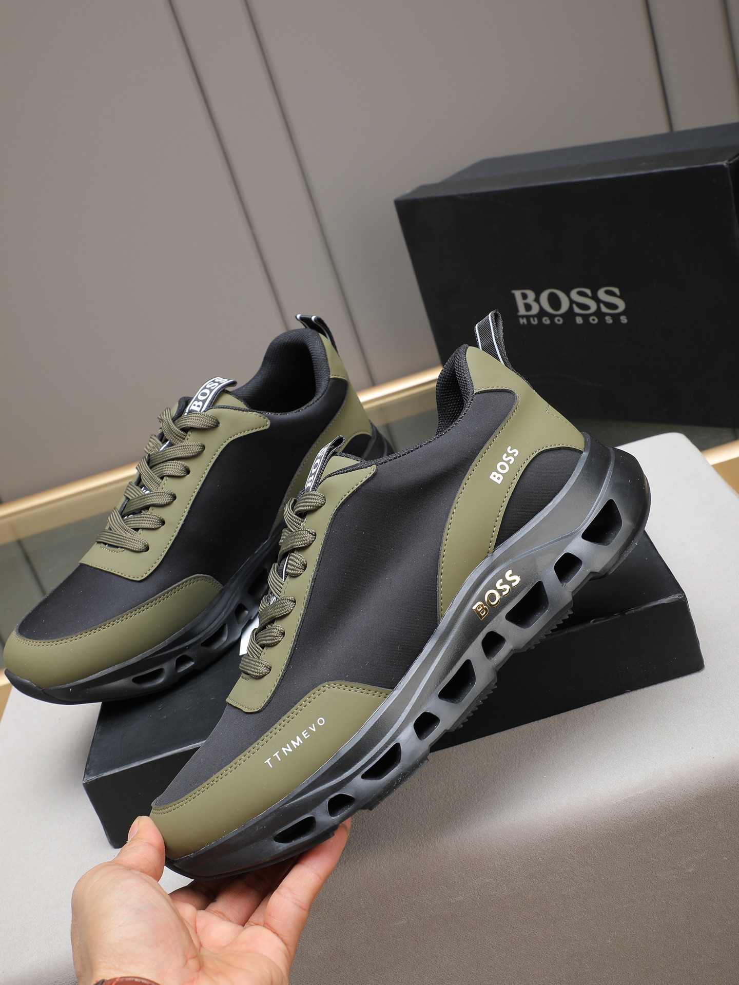 这款鞋子是AAAAA 1:1 质量 (非常棒). 使用了和原版一模一样的材料. 商标部分也保持了和BOSS一样. 图片拍摄是实物鞋子拍摄, 您所收到的实物保证和我们图片一模一样.