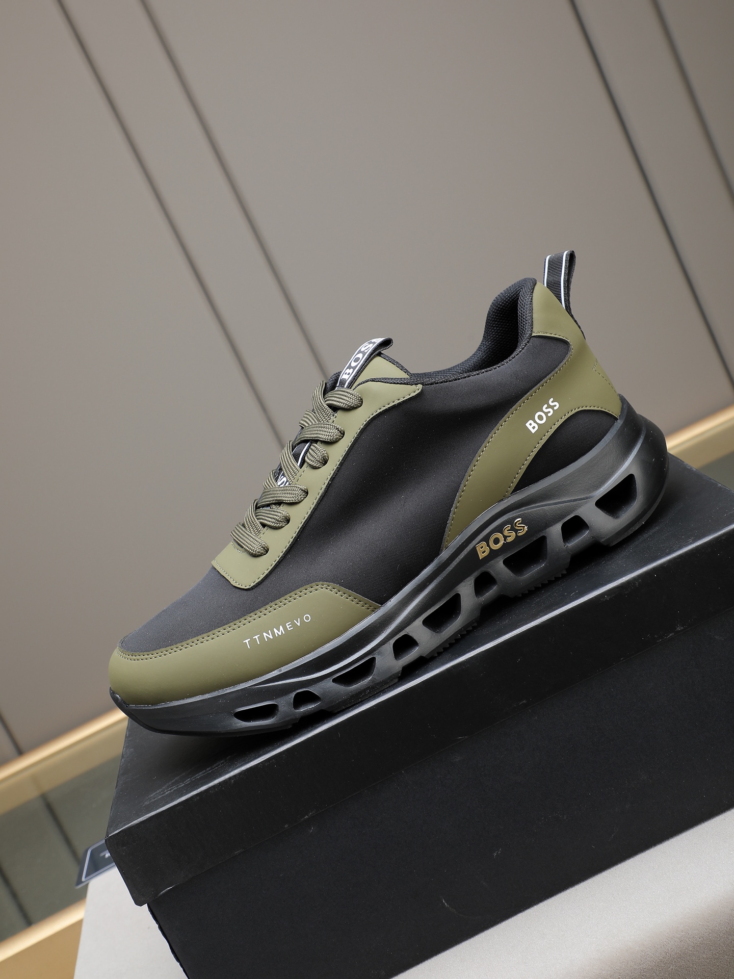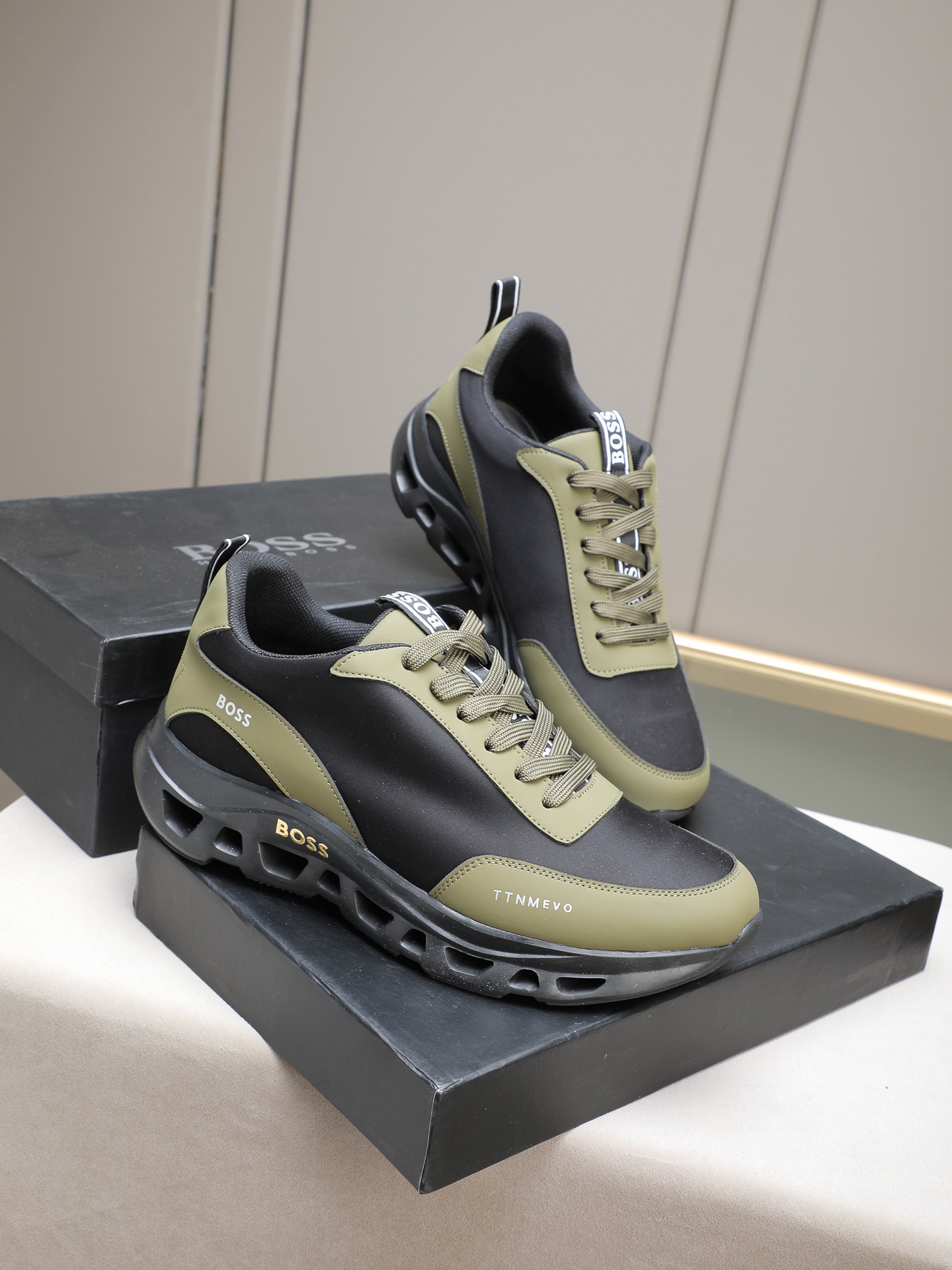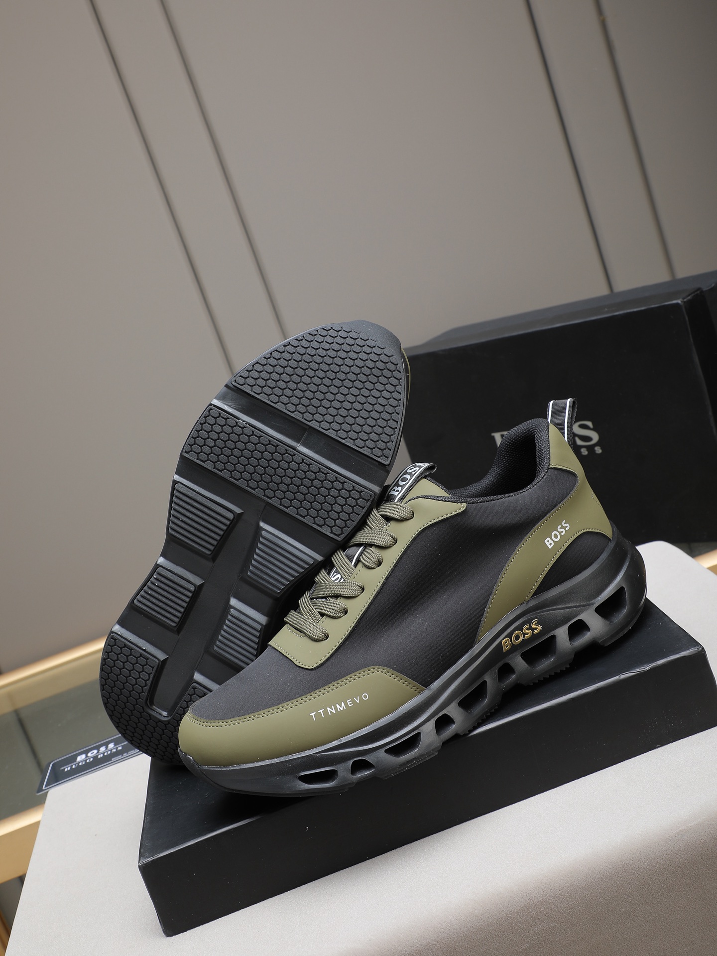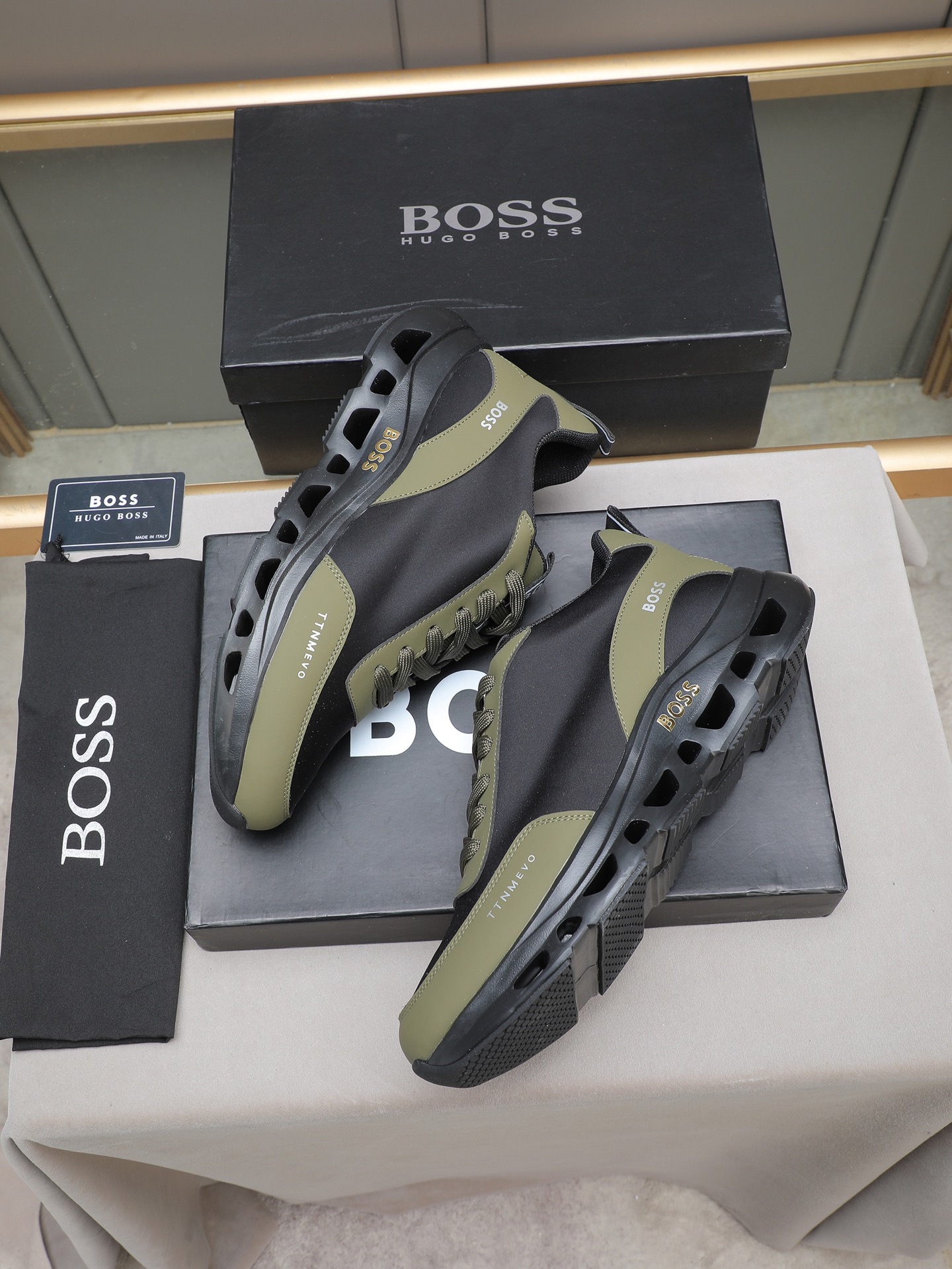 这款鞋子是AAAAA 1:1 质量 (非常棒). 使用了和原版一模一样的材料. 商标部分也保持了和BOSS一样. 图片拍摄是实物鞋子拍摄, 您所收到的实物保证和我们图片一模一样.