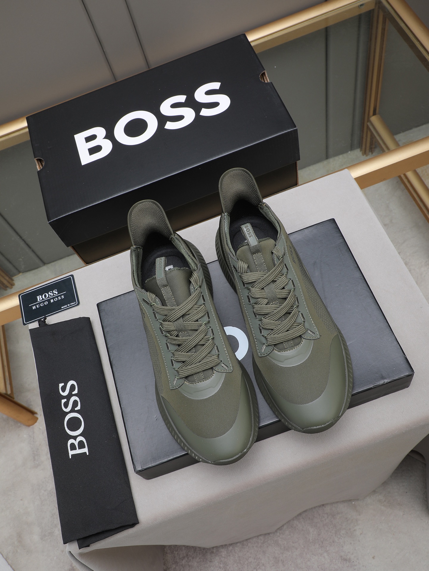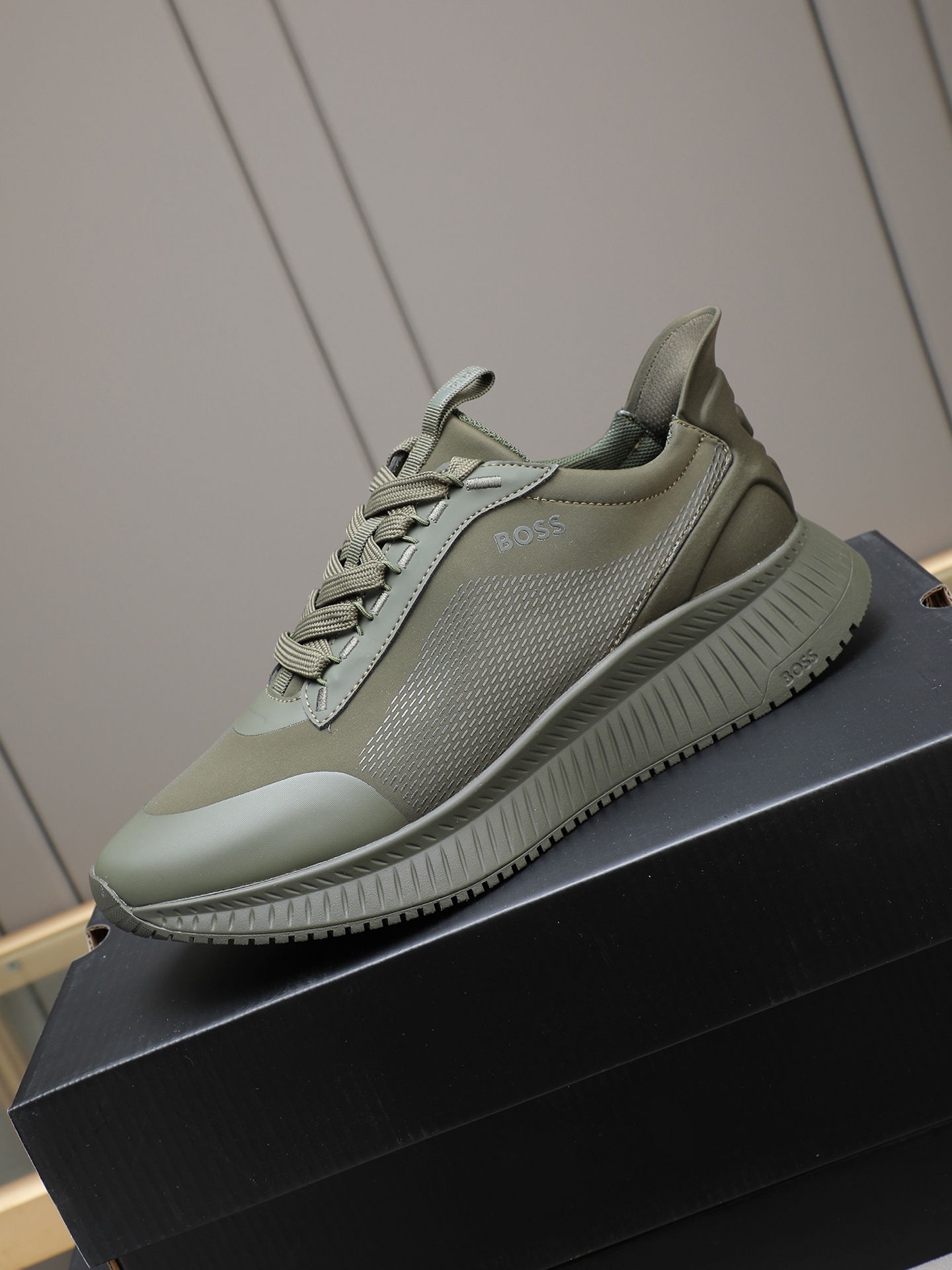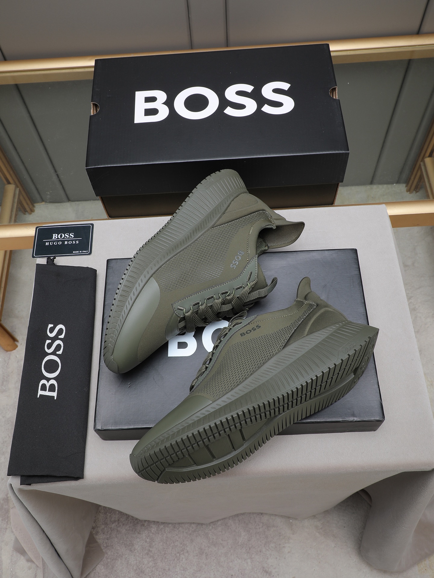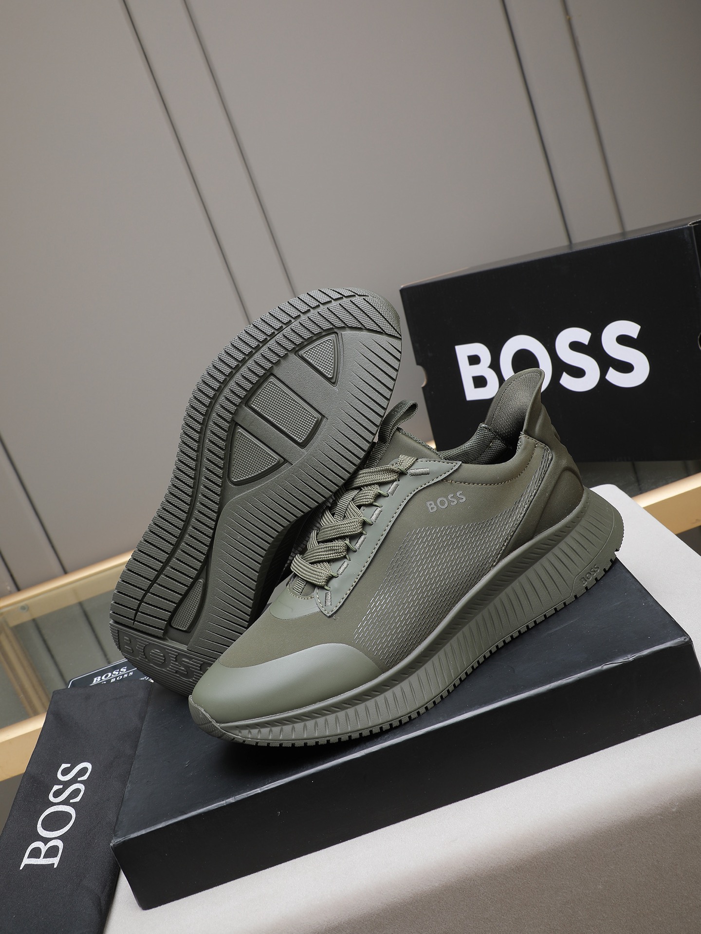 这款鞋子是AAAAA 1:1 质量 (非常棒). 使用了和原版一模一样的材料. 商标部分也保持了和BOSS一样. 图片拍摄是实物鞋子拍摄, 您所收到的实物保证和我们图片一模一样.