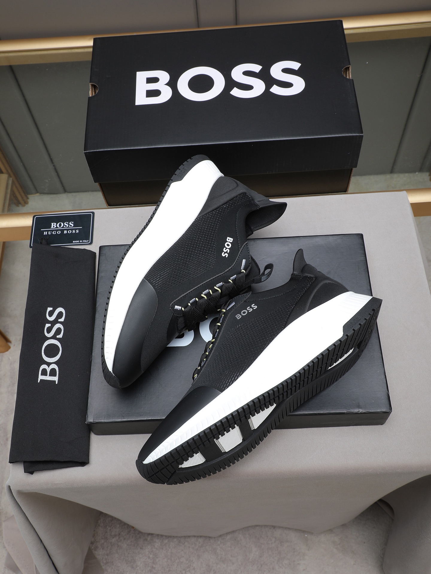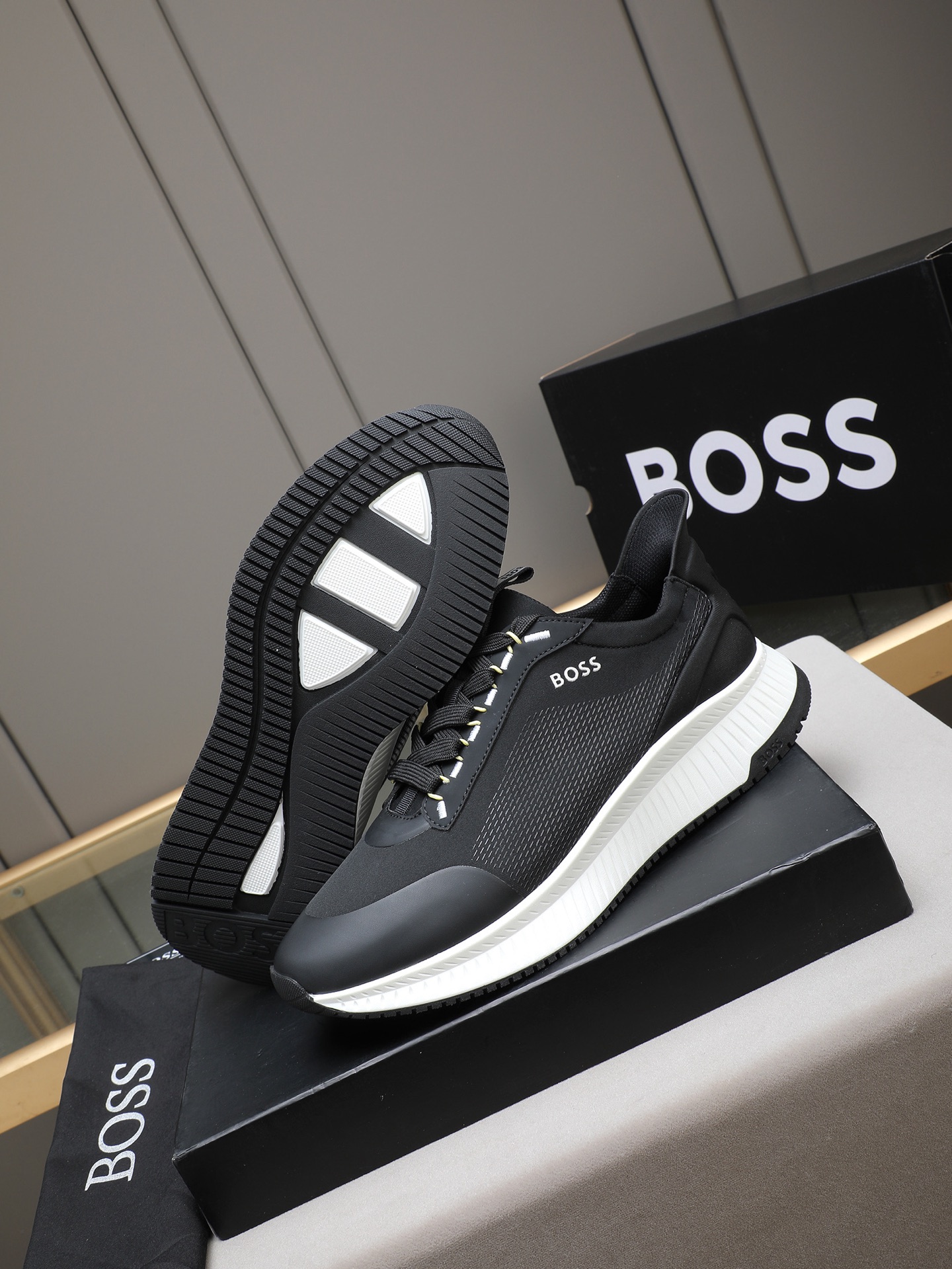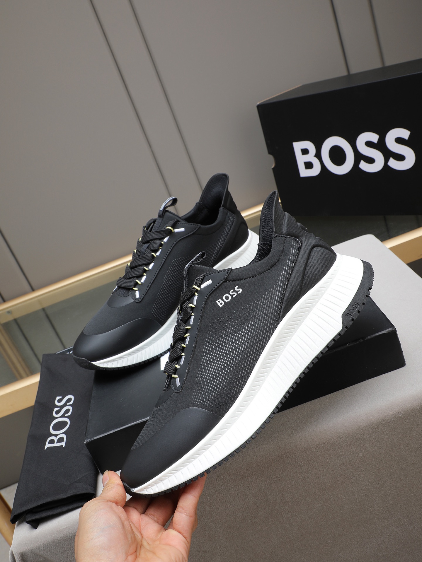 这款鞋子是AAAAA 1:1 质量 (非常棒). 使用了和原版一模一样的材料. 商标部分也保持了和BOSS一样. 图片拍摄是实物鞋子拍摄, 您所收到的实物保证和我们图片一模一样.