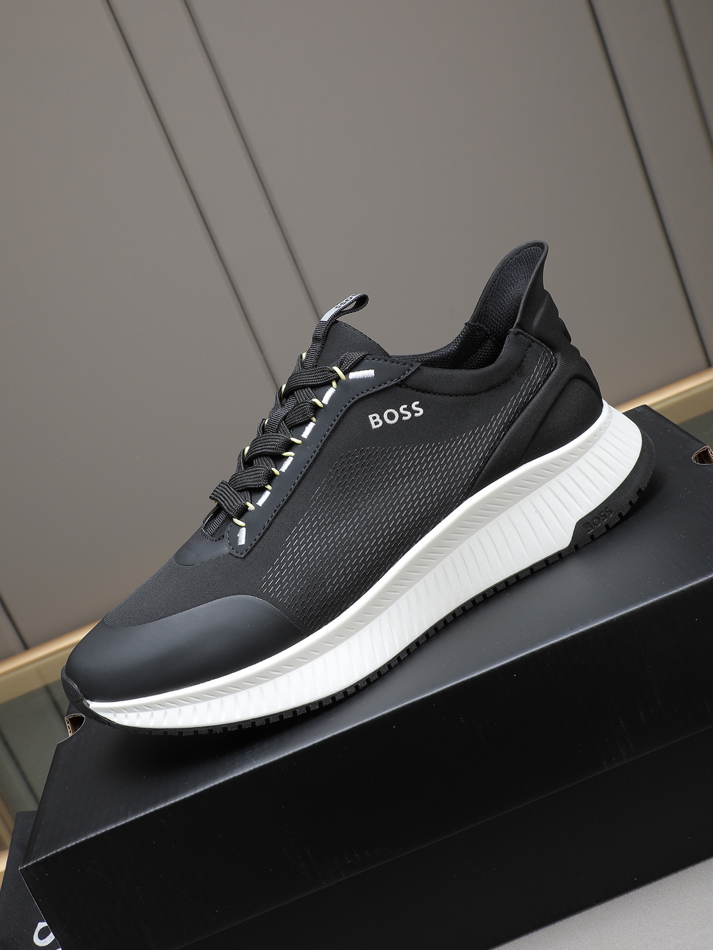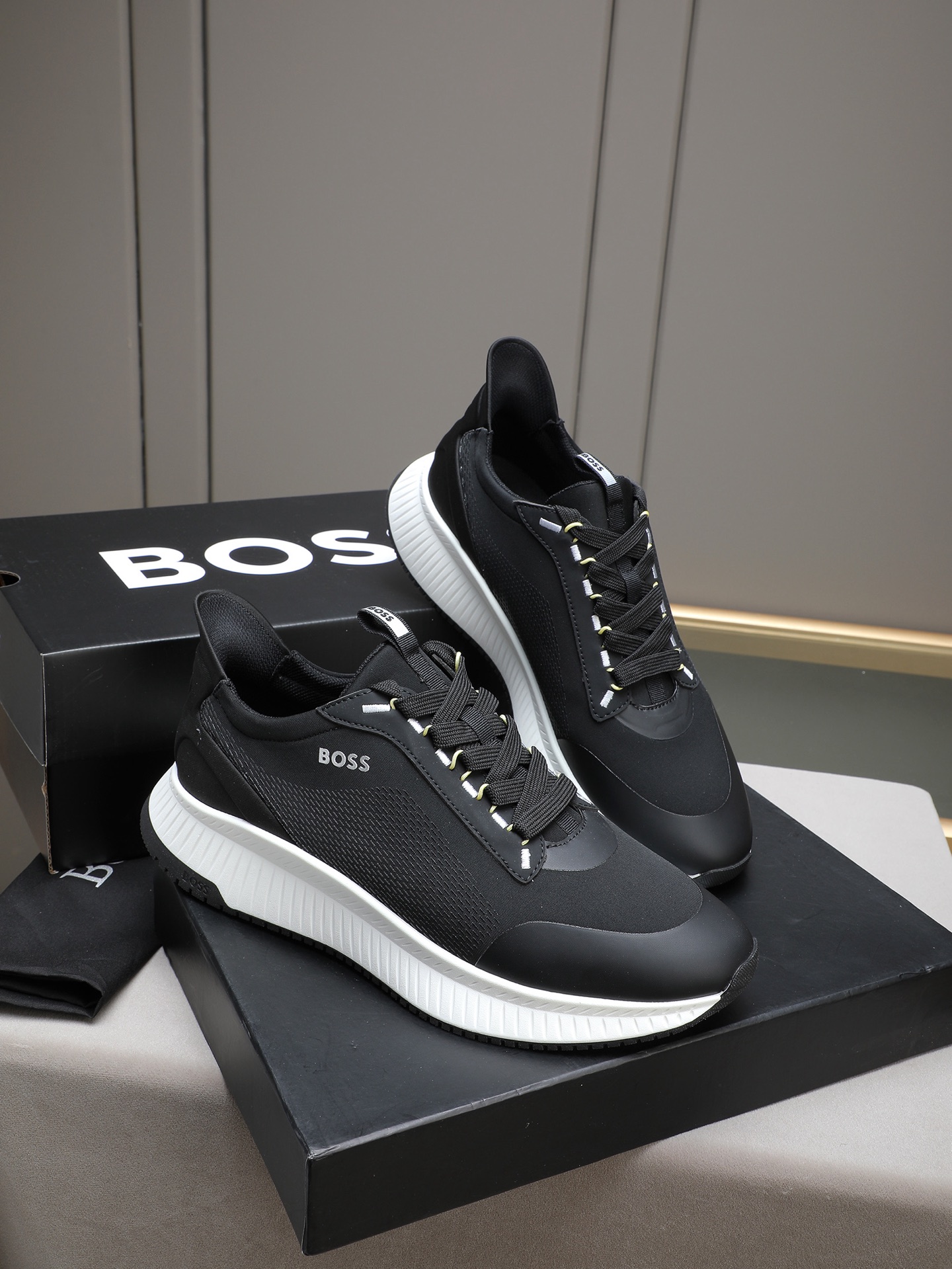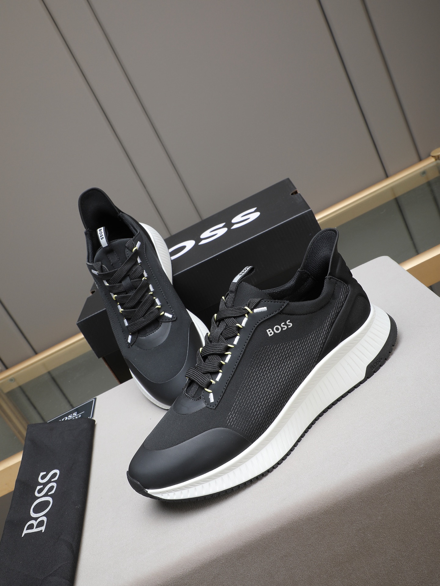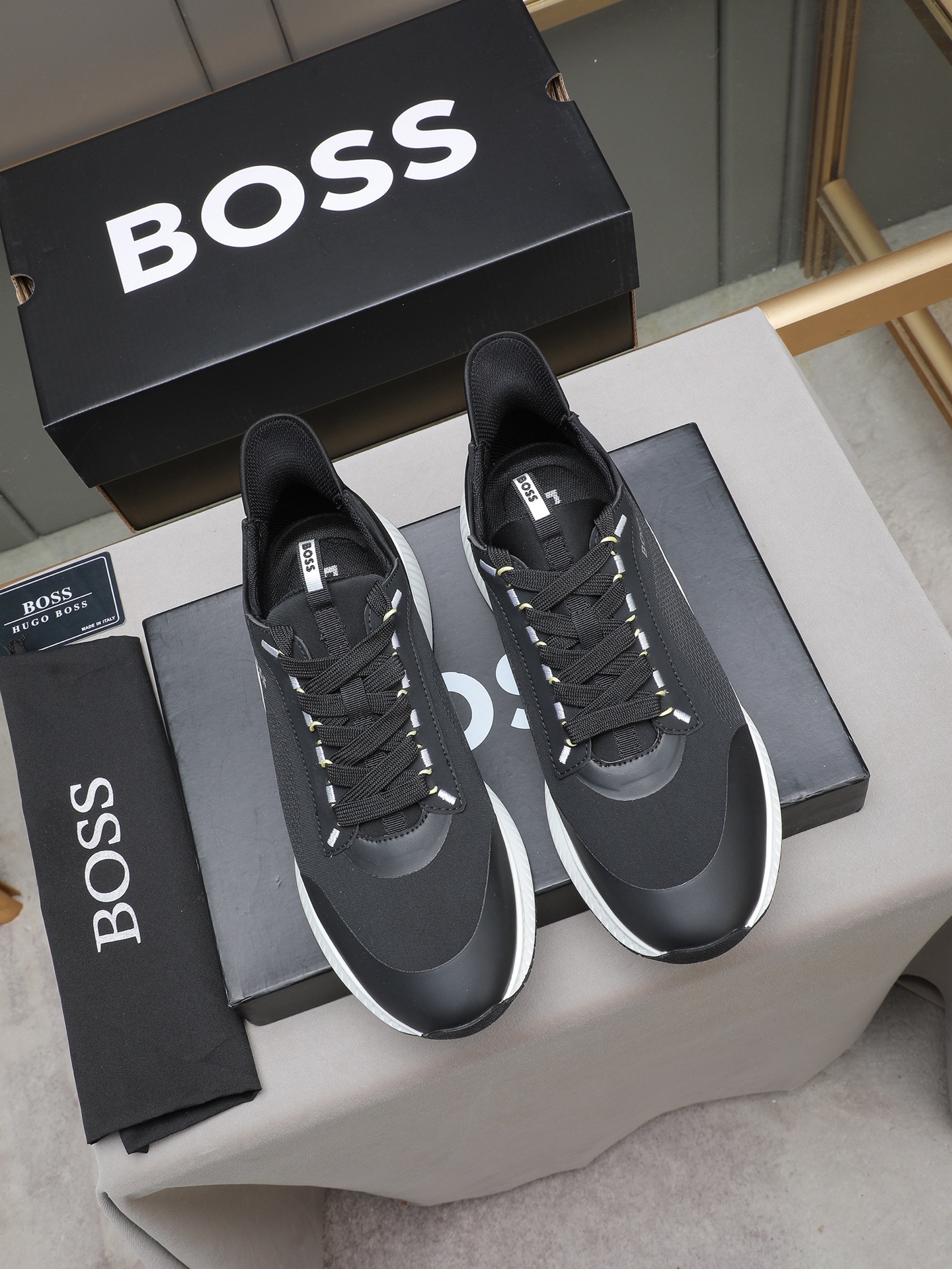 这款鞋子是AAAAA 1:1 质量 (非常棒). 使用了和原版一模一样的材料. 商标部分也保持了和BOSS一样. 图片拍摄是实物鞋子拍摄, 您所收到的实物保证和我们图片一模一样.