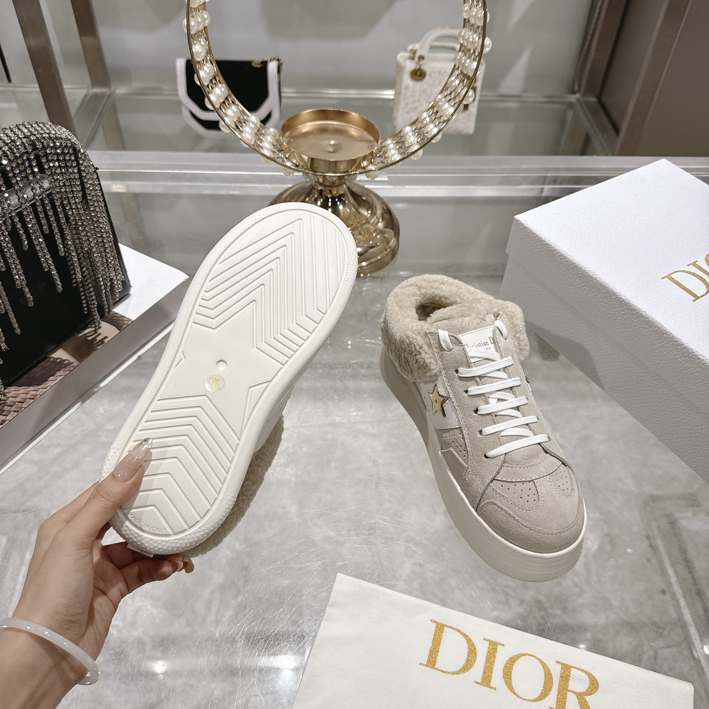 这款鞋子是AAAAA 1:1 质量 (非常棒). 使用了和原版一模一样的材料. 商标部分也保持了和迪奥/Dior一样. 图片拍摄是实物鞋子拍摄, 您所收到的实物保证和我们图片一模一样.
