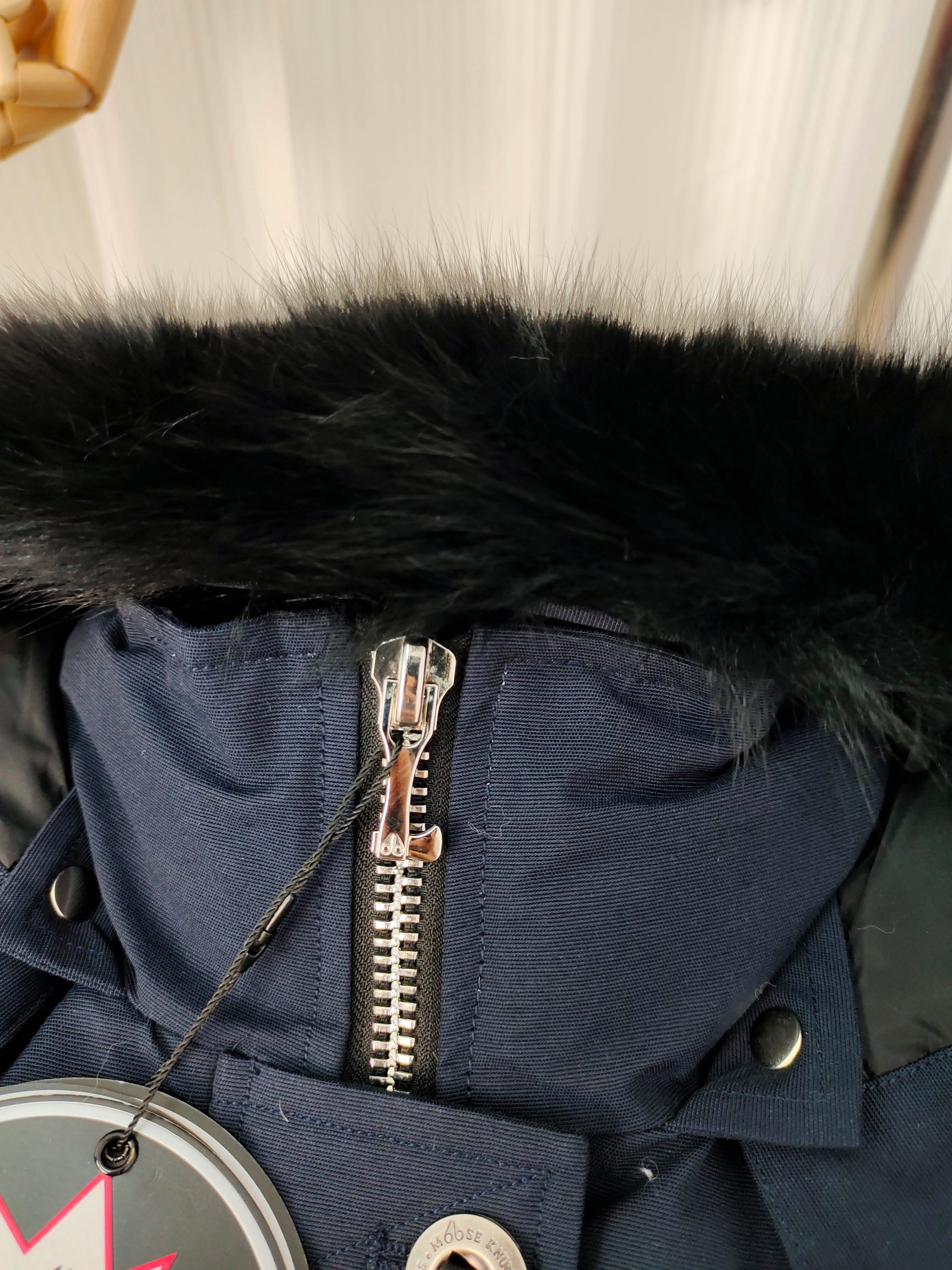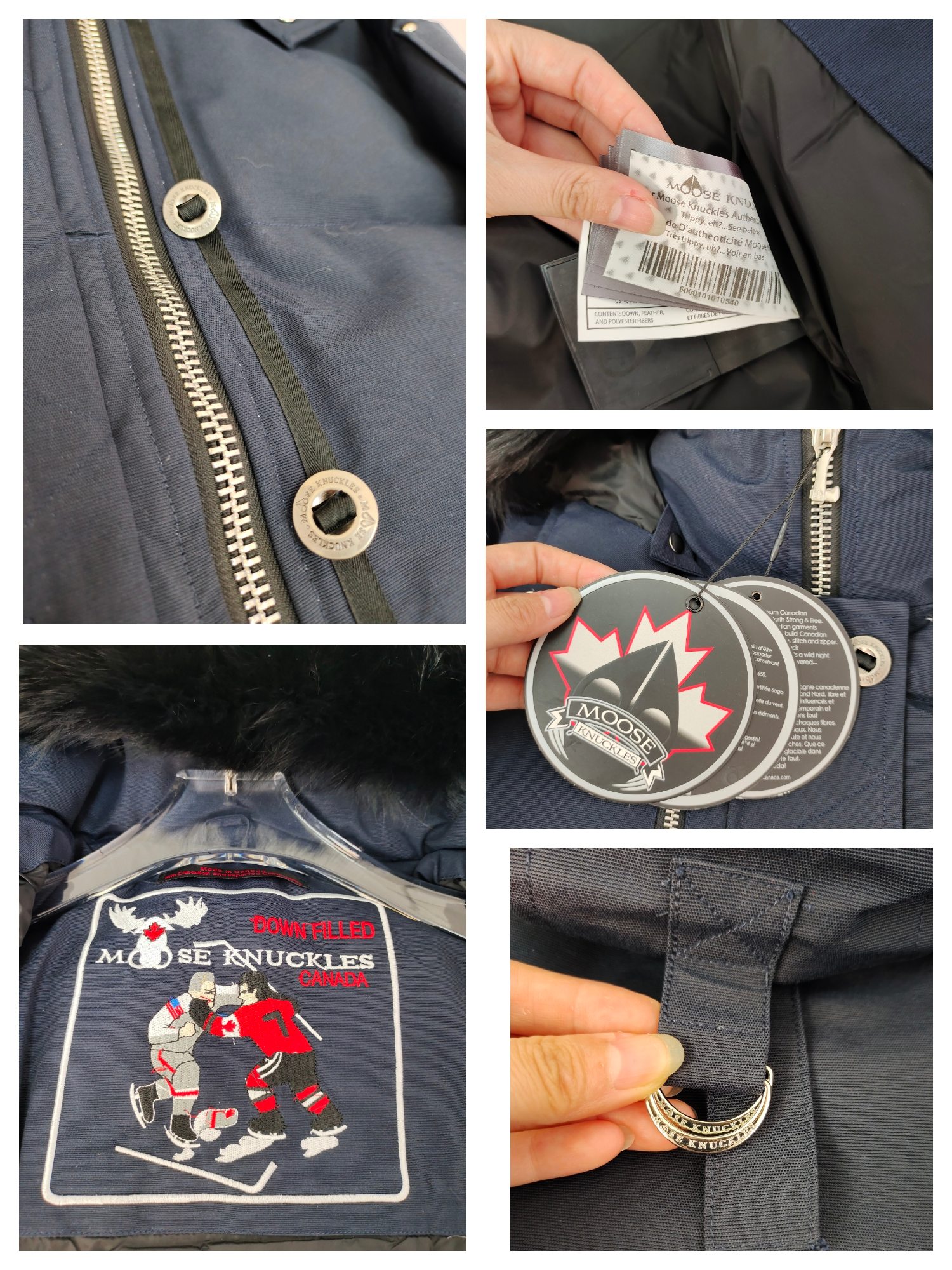 这款衣服是AAAAA 1:1 质量 (非常棒). 使用了和原版一模一样的材料. 商标部分也保持了和Moose Knuckles一样. 图片拍摄是实物衣服拍摄, 您所收到的实物保证和我们图片一模一样.