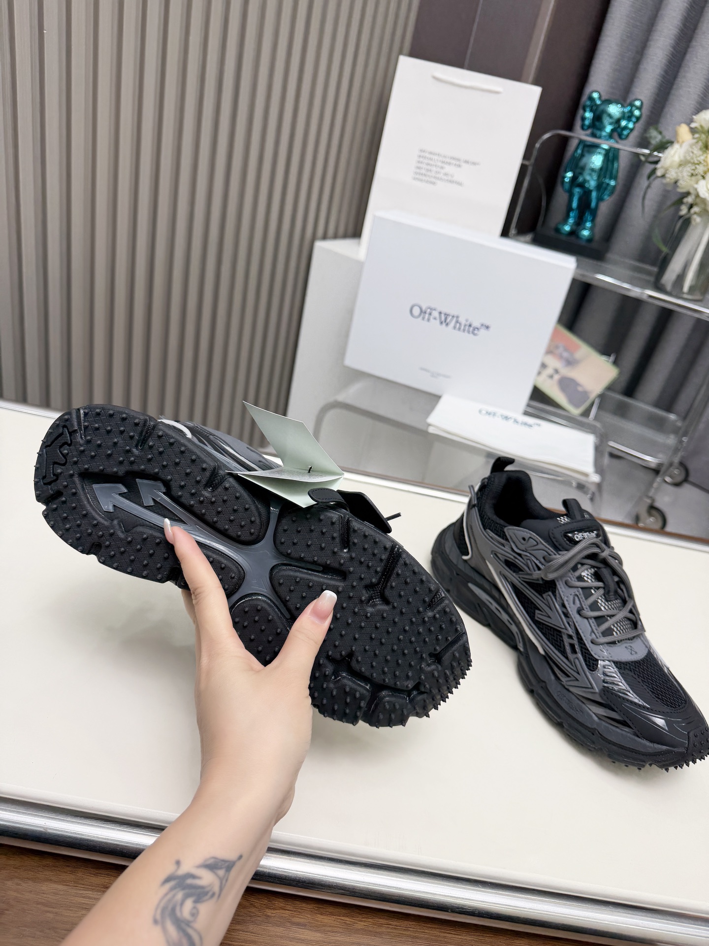 这款鞋子是AAAAA 1:1 质量 (非常棒). 使用了和原版一模一样的材料. 商标部分也保持了和OFF WHITE一样. 图片拍摄是实物鞋子拍摄, 您所收到的实物保证和我们图片一模一样.