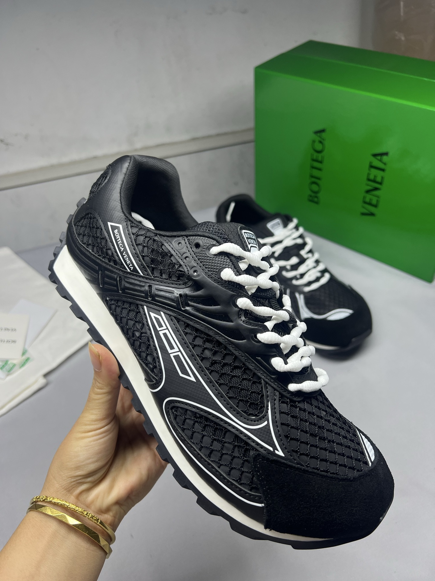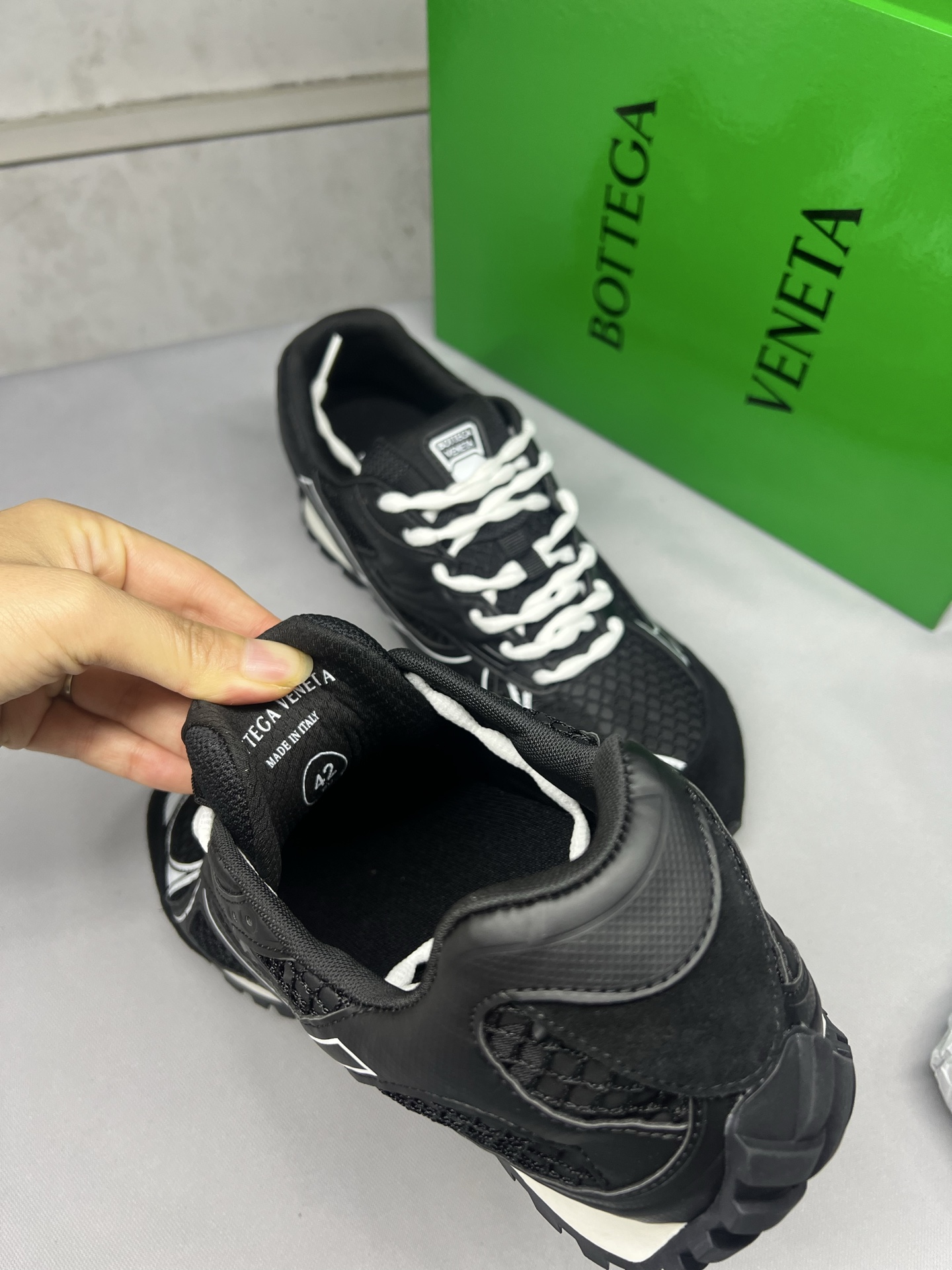 这款鞋子是AAAAA 1:1 质量 (非常棒). 使用了和原版一模一样的材料. 商标部分也保持了和葆蝶家/Bottega Veneta一样. 图片拍摄是实物鞋子拍摄, 您所收到的实物保证和我们图片一模一样.