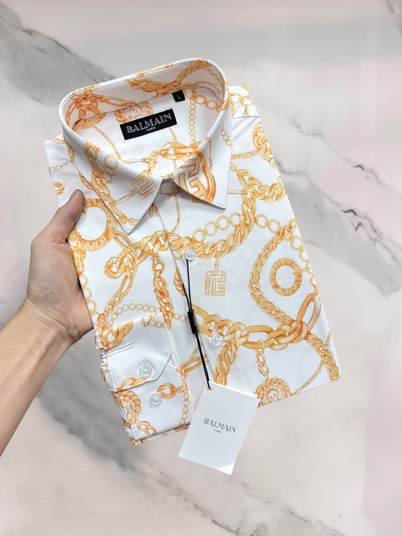 这款衣服是AAAAA 1:1 质量 (非常棒). 使用了和原版一模一样的材料. 商标部分也保持了和巴尔曼/Balmain一样. 图片拍摄是实物衣服拍摄, 您所收到的实物保证和我们图片一模一样.