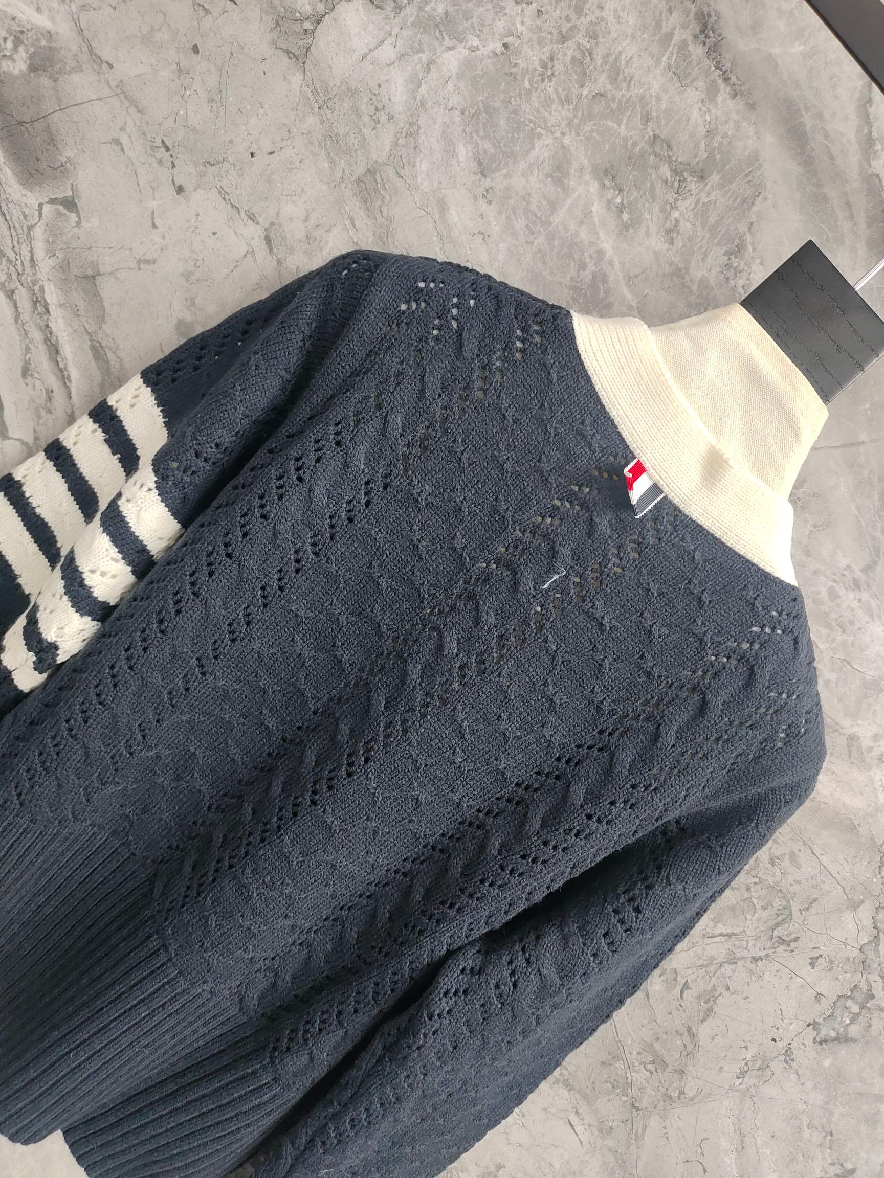 这款衣服是AAAAA 1:1 质量 (非常棒). 使用了和原版一模一样的材料. 商标部分也保持了和汤姆布朗/Thom Browne一样. 图片拍摄是实物衣服拍摄, 您所收到的实物保证和我们图片一模一样.