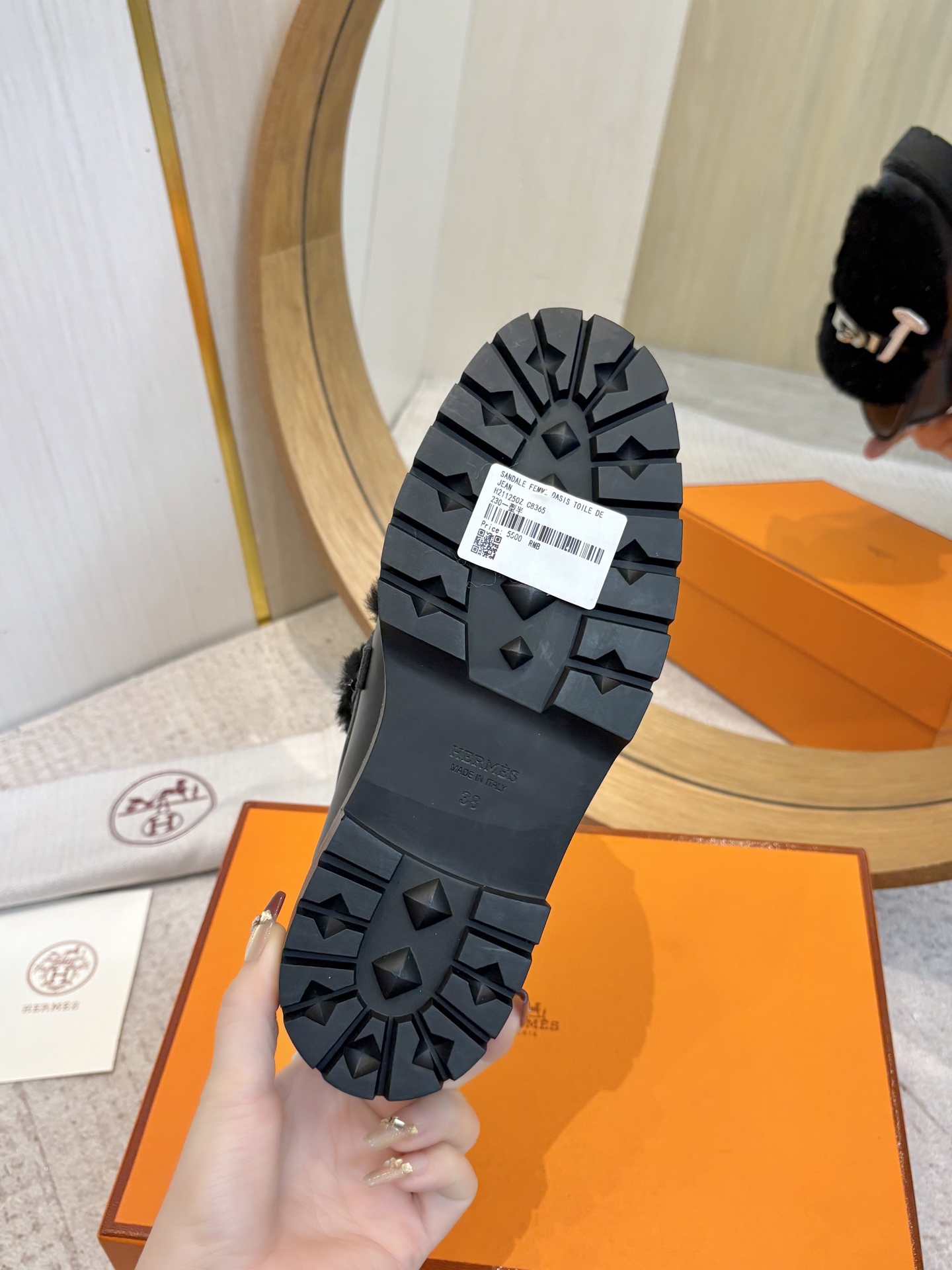 这款鞋子是AAAAA 1:1 质量 (非常棒). 使用了和原版一模一样的材料. 商标部分也保持了和爱马仕/Hermes一样. 图片拍摄是实物鞋子拍摄, 您所收到的实物保证和我们图片一模一样.