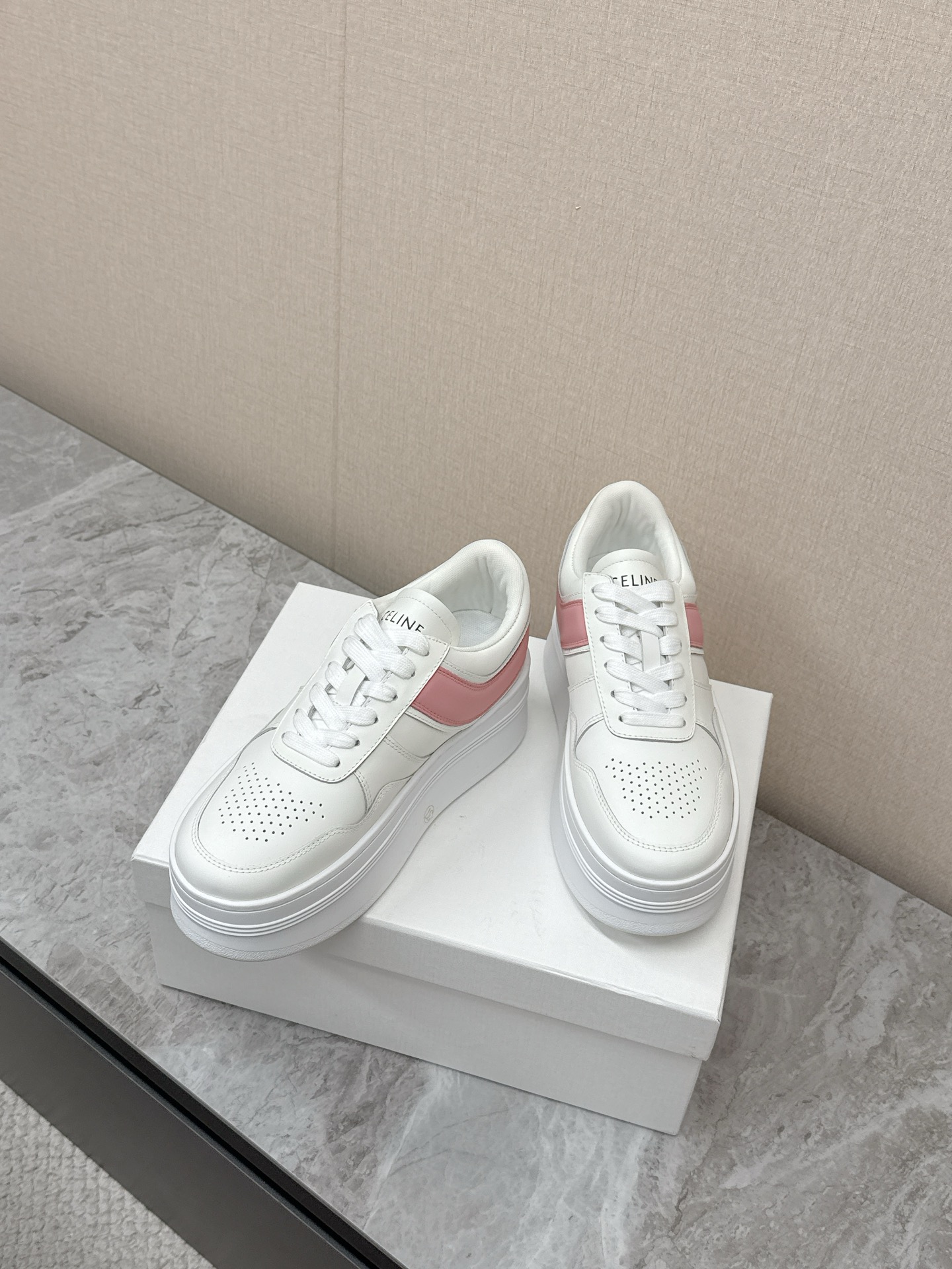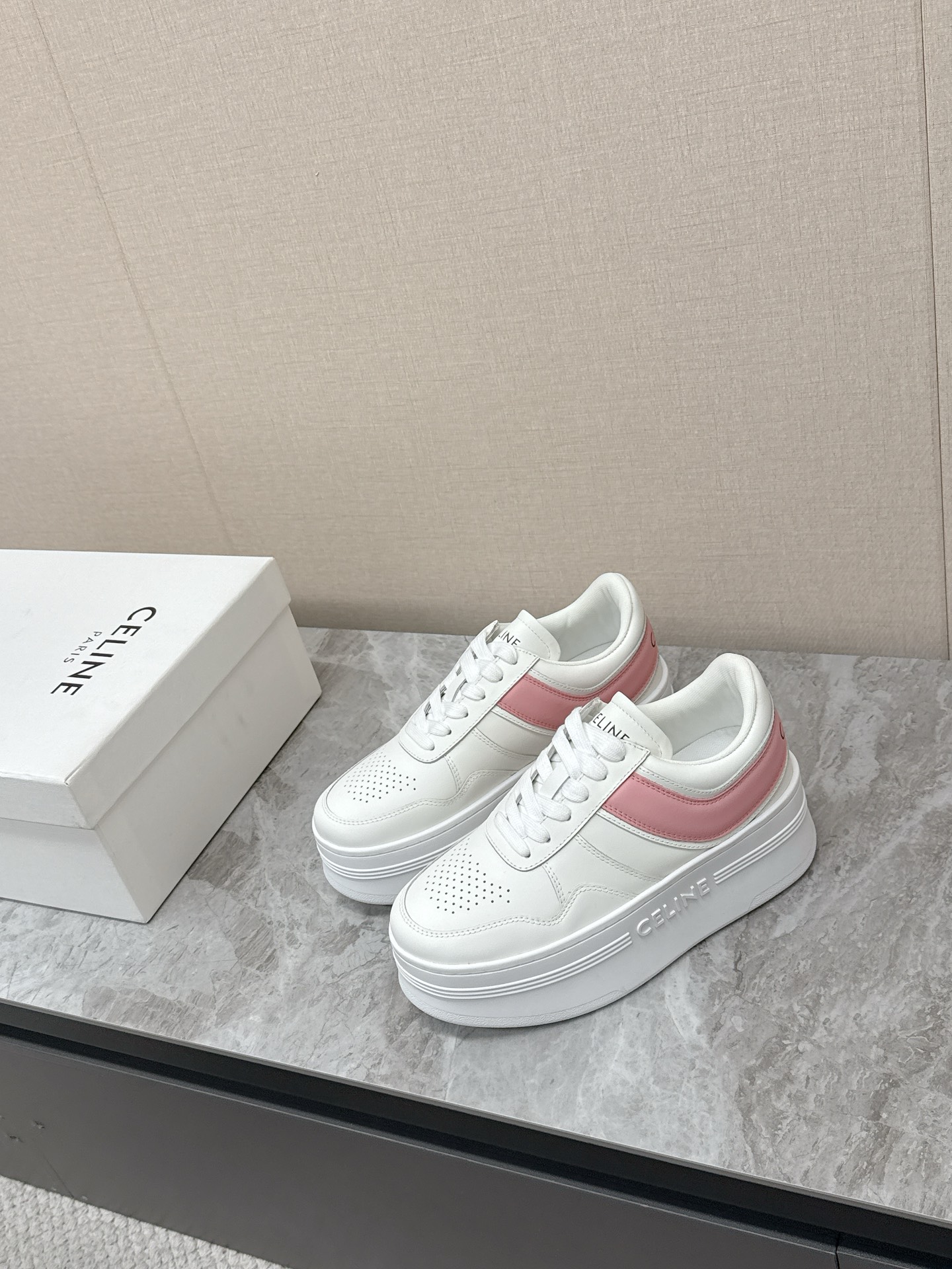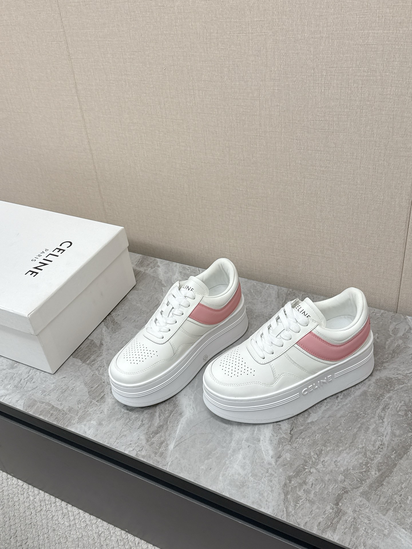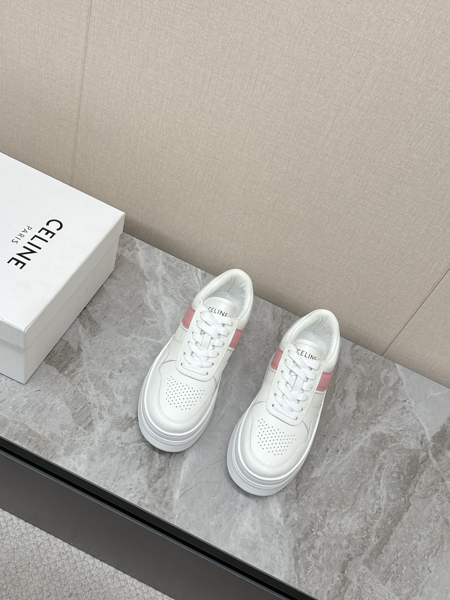 这款鞋子是AAAAA 1:1 质量 (非常棒). 使用了和原版一模一样的材料. 商标部分也保持了和思琳/Celine一样. 图片拍摄是实物鞋子拍摄, 您所收到的实物保证和我们图片一模一样.