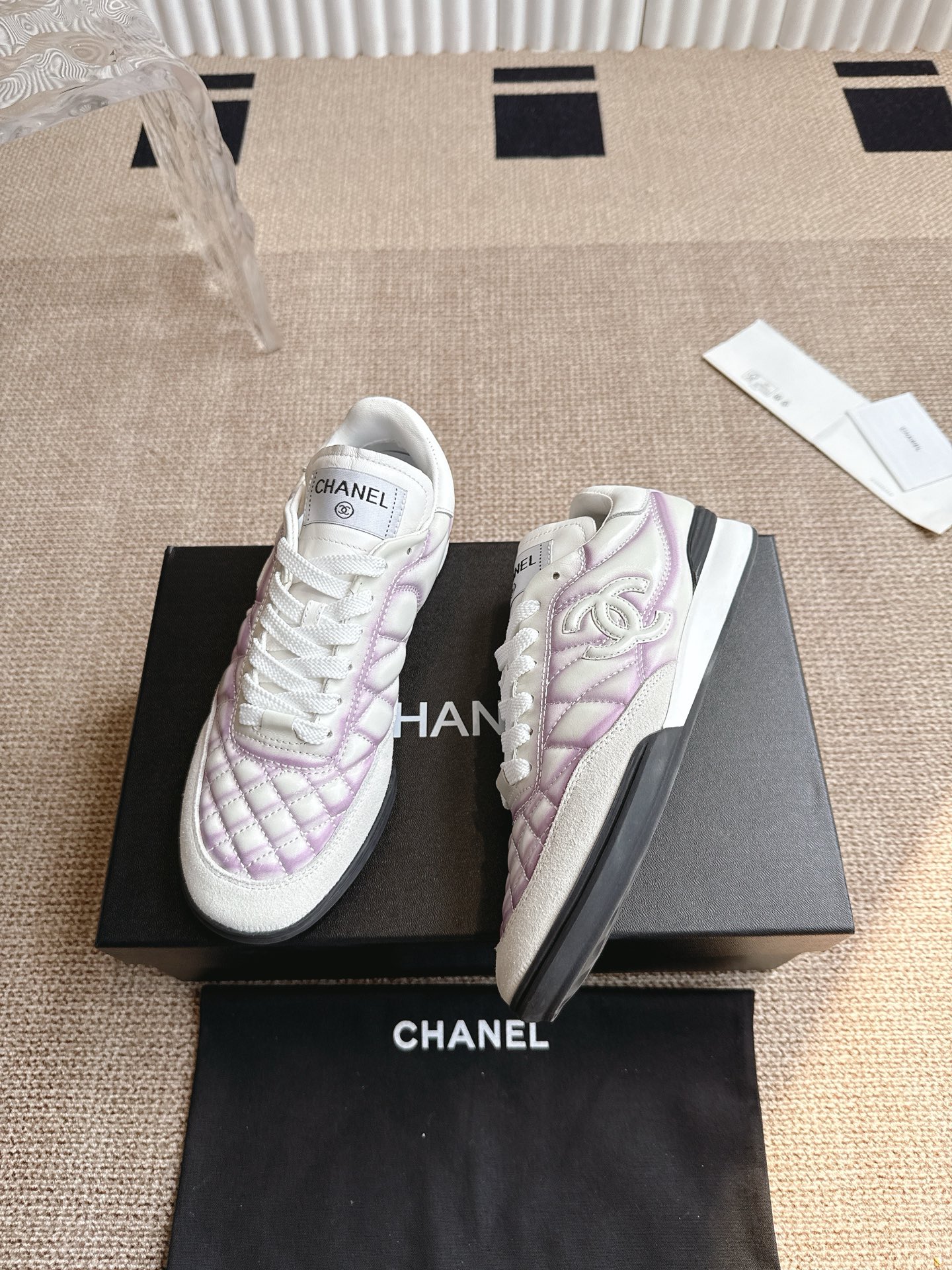这款鞋子是AAAAA 1:1 质量 (非常棒). 使用了和原版一模一样的材料. 商标部分也保持了和香奈儿/Chanel一样. 图片拍摄是实物鞋子拍摄, 您所收到的实物保证和我们图片一模一样.