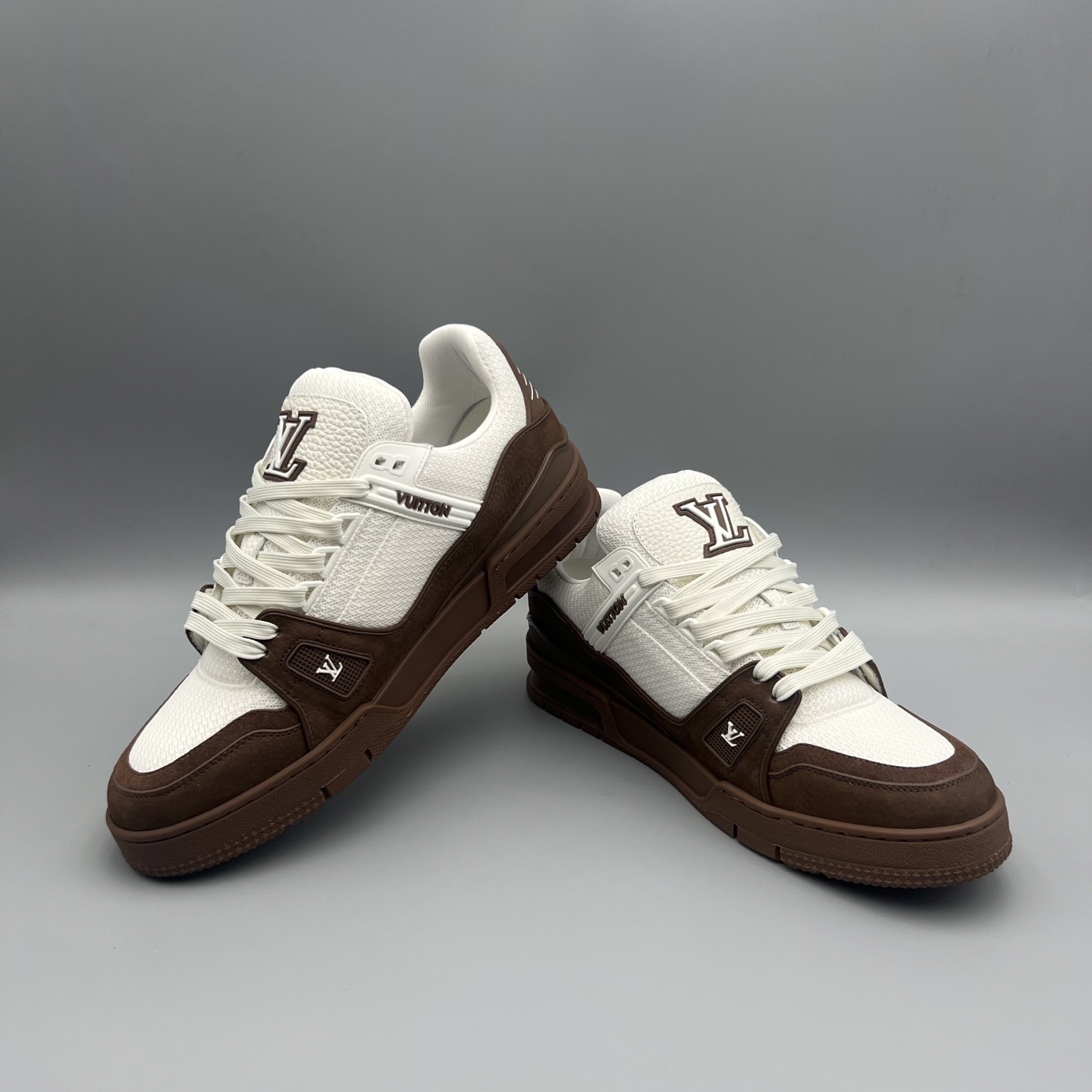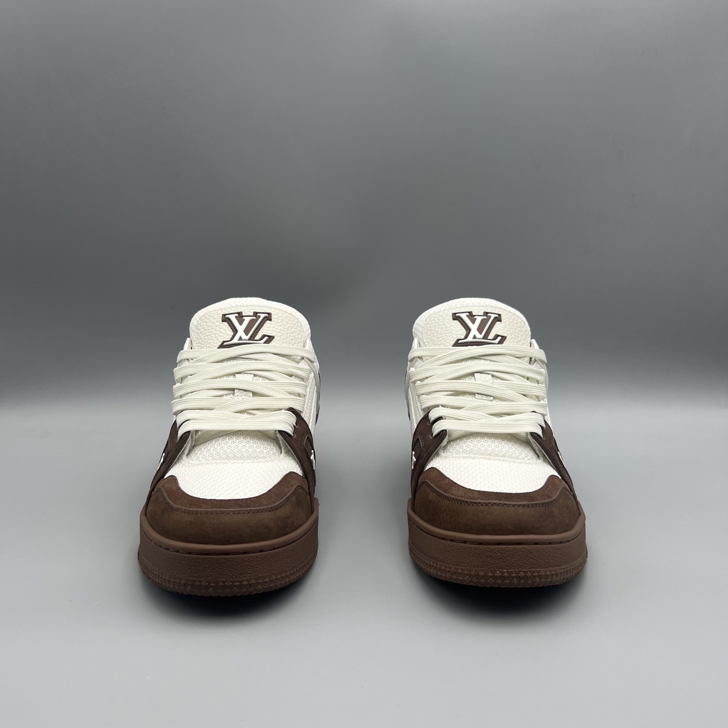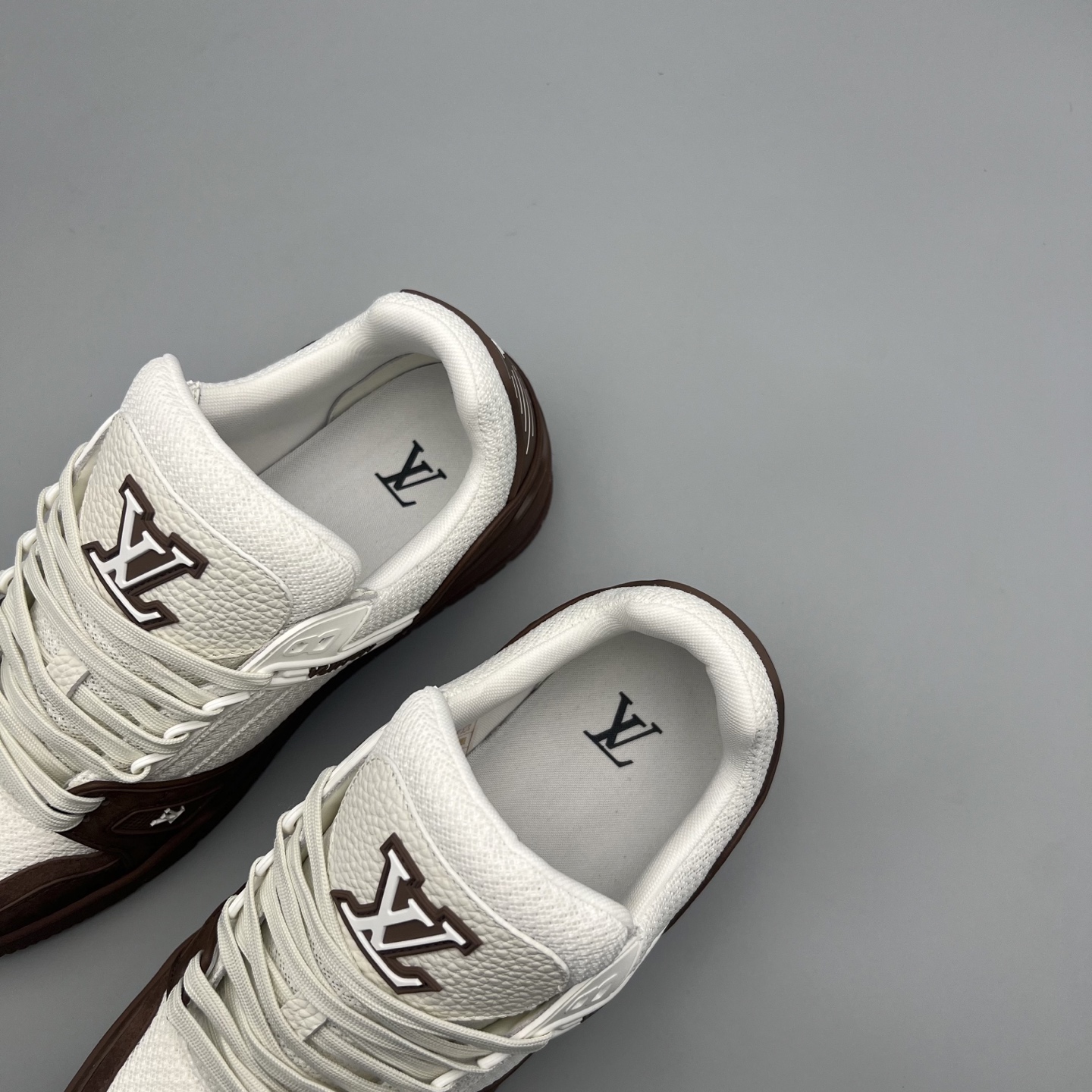 这款鞋子是AAAAA 1:1 质量 (非常棒). 使用了和原版一模一样的材料. 商标部分也保持了和路易威登/Louis Vuitton一样. 图片拍摄是实物鞋子拍摄, 您所收到的实物保证和我们图片一模一样.