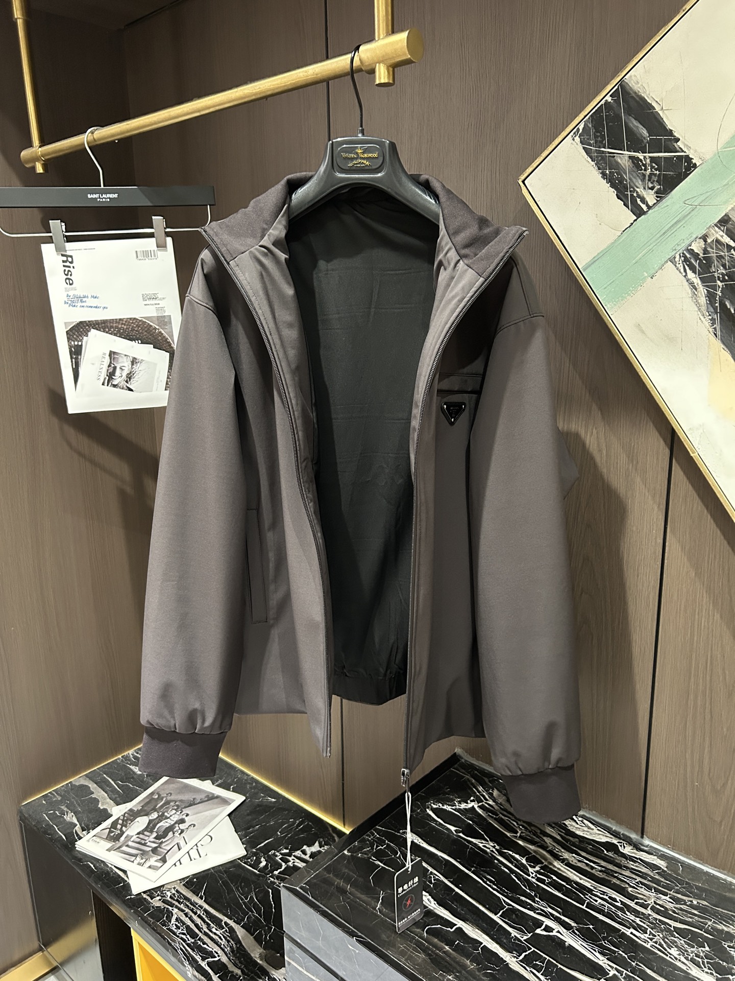 这款衣服是AAAAA 1:1 质量 (非常棒). 使用了和原版一模一样的材料. 商标部分也保持了和普拉达/Prada一样. 图片拍摄是实物衣服拍摄, 您所收到的实物保证和我们图片一模一样.