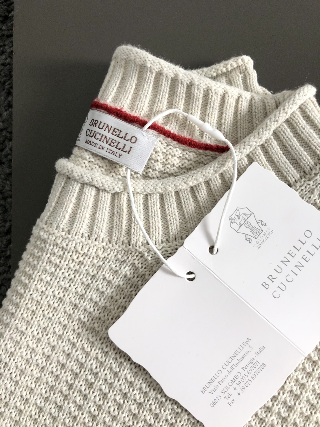 这款衣服是AAAAA 1:1 质量 (非常棒). 使用了和原版一模一样的材料. 商标部分也保持了和Brunello Cucinelli一样. 图片拍摄是实物衣服拍摄, 您所收到的实物保证和我们图片一模一样.