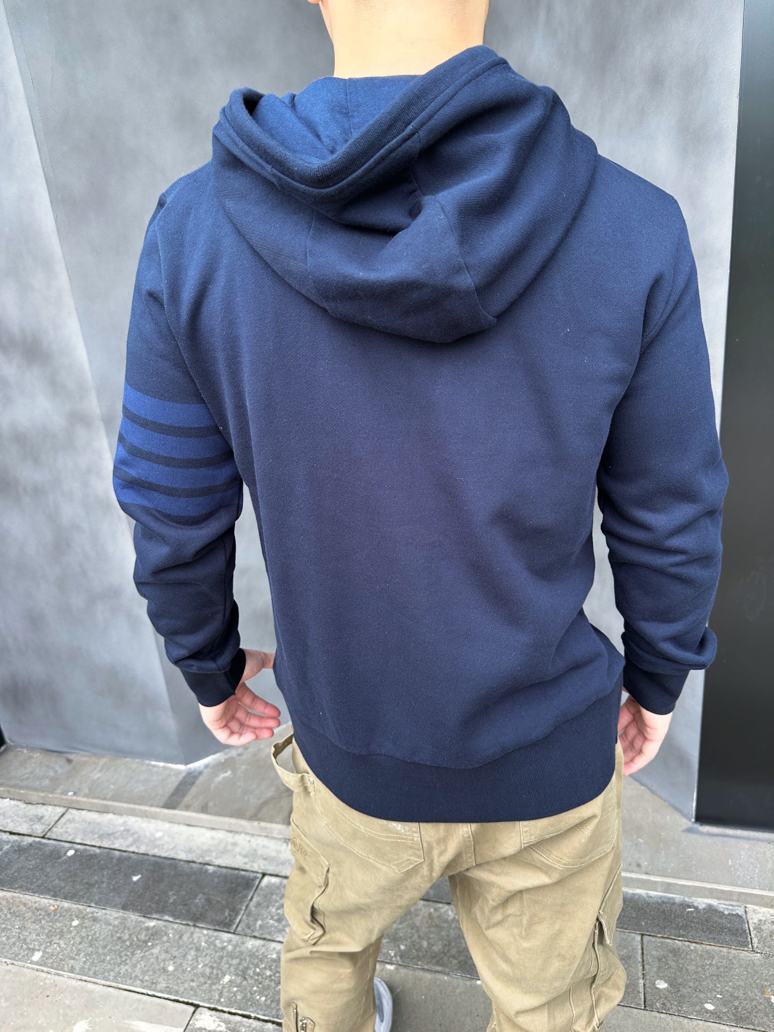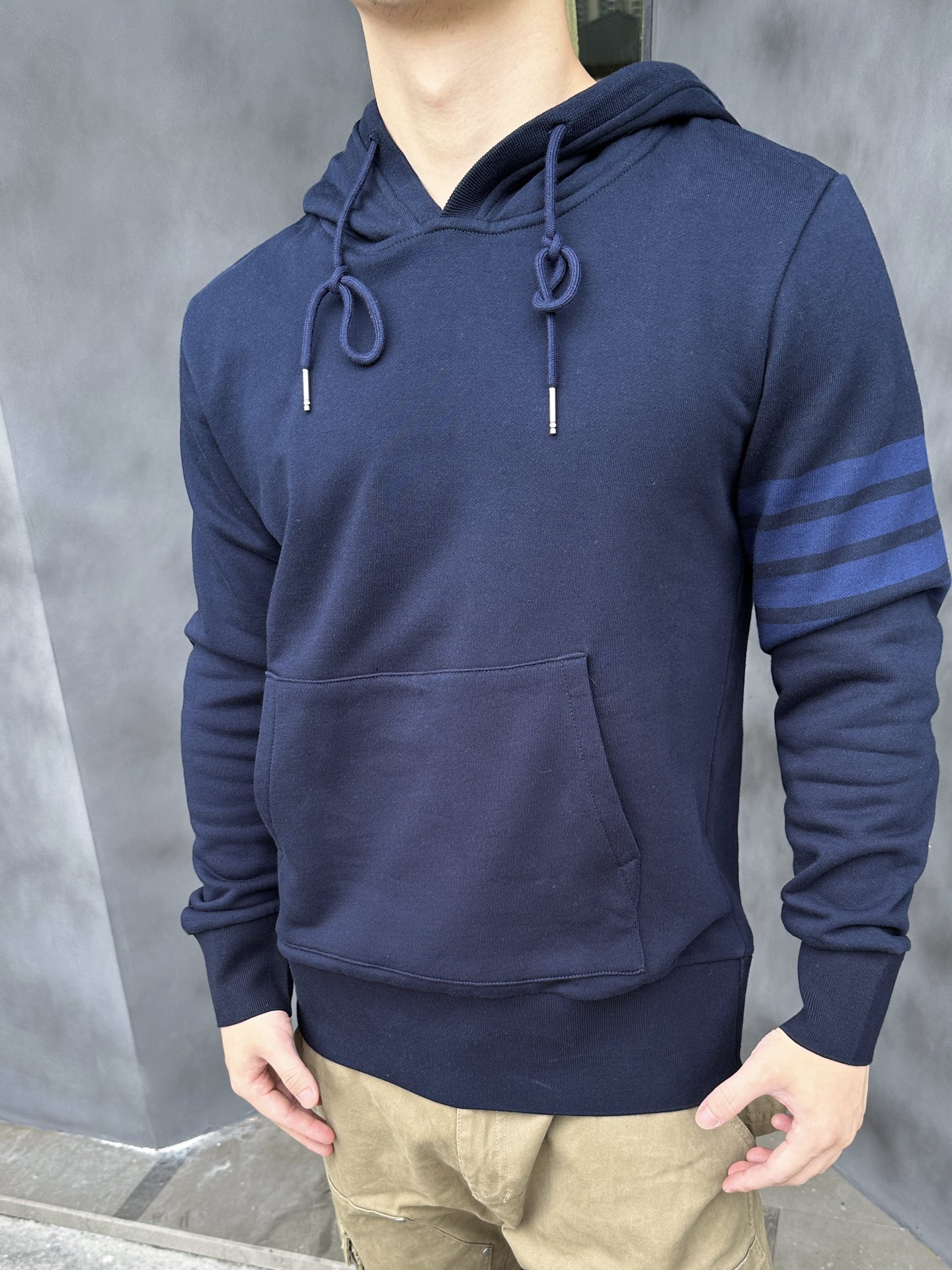 这款衣服是AAAAA 1:1 质量 (非常棒). 使用了和原版一模一样的材料. 商标部分也保持了和汤姆布朗/Thom Browne一样. 图片拍摄是实物衣服拍摄, 您所收到的实物保证和我们图片一模一样.