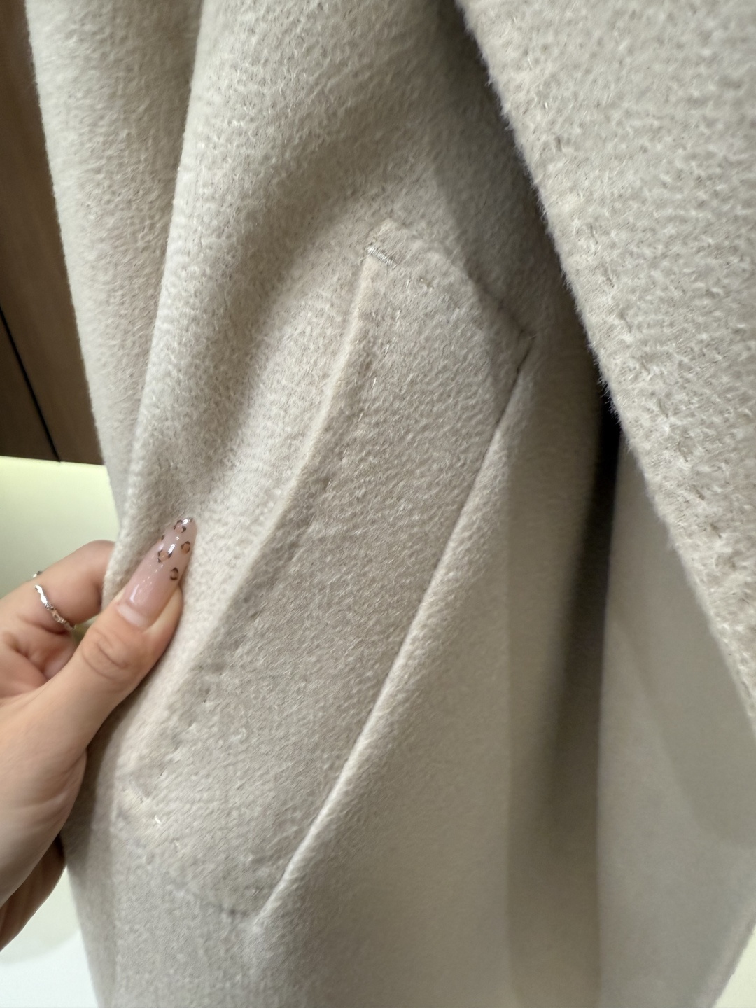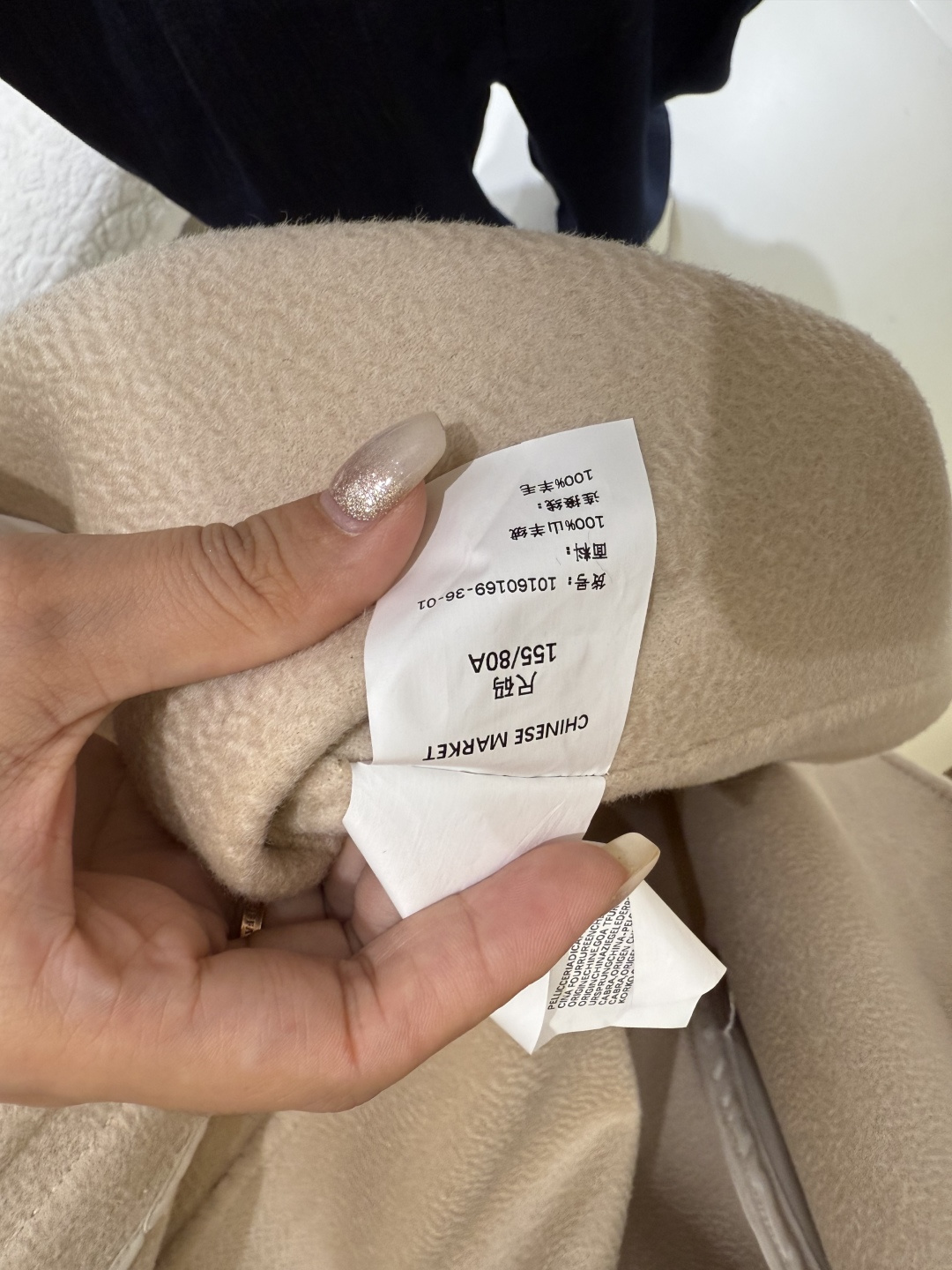 这款衣服是AAAAA 1:1 质量 (非常棒). 使用了和原版一模一样的材料. 商标部分也保持了和Max Mara一样. 图片拍摄是实物衣服拍摄, 您所收到的实物保证和我们图片一模一样.