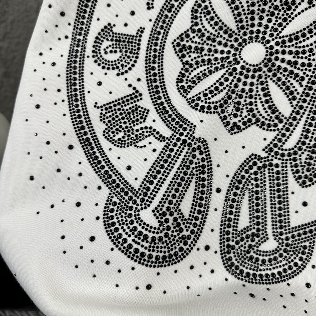 这款衣服是AAAAA 1:1 质量 (非常棒). 使用了和原版一模一样的材料. 商标部分也保持了和克罗心/Chrome Hearts一样. 图片拍摄是实物衣服拍摄, 您所收到的实物保证和我们图片一模一样.