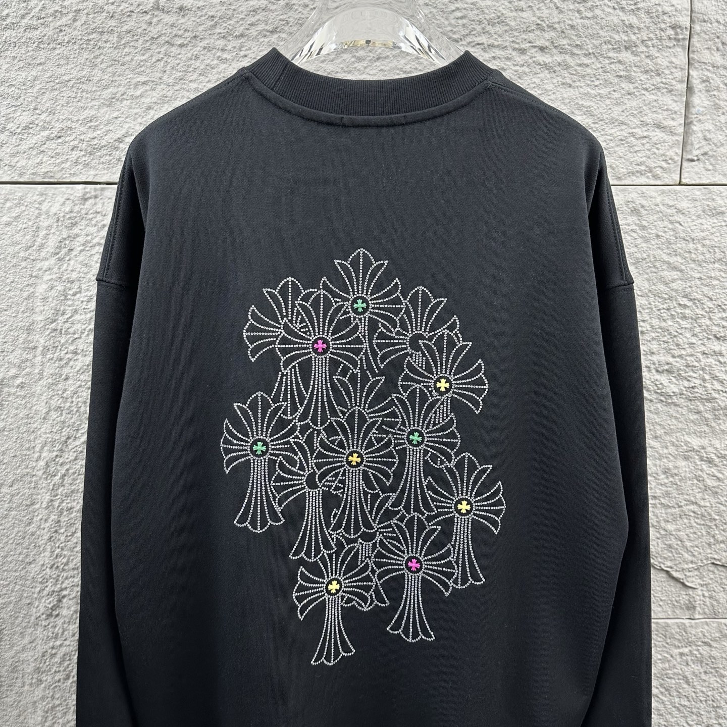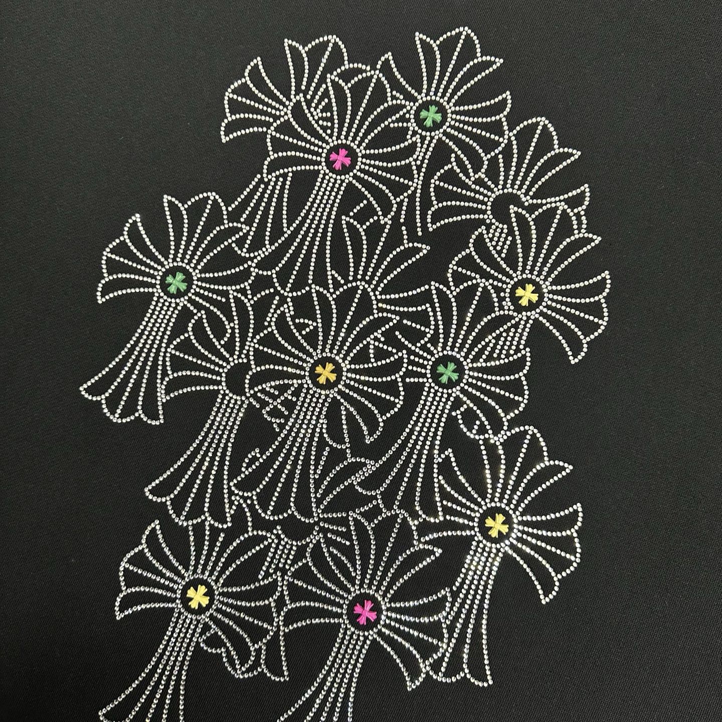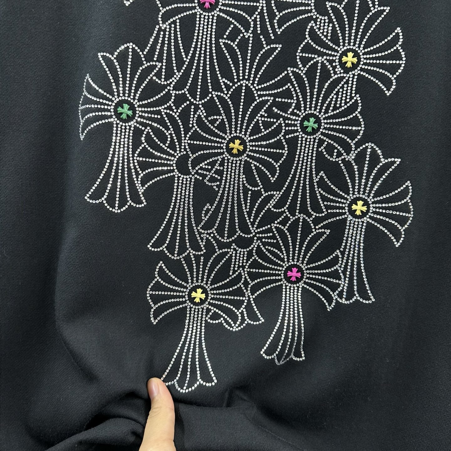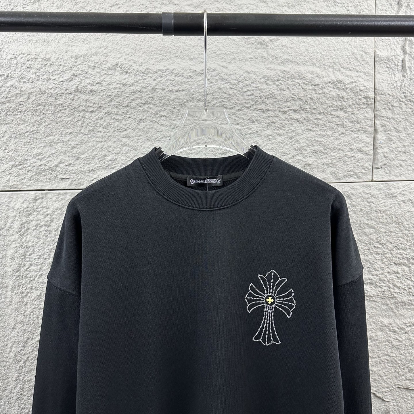 这款衣服是AAAAA 1:1 质量 (非常棒). 使用了和原版一模一样的材料. 商标部分也保持了和克罗心/Chrome Hearts一样. 图片拍摄是实物衣服拍摄, 您所收到的实物保证和我们图片一模一样.