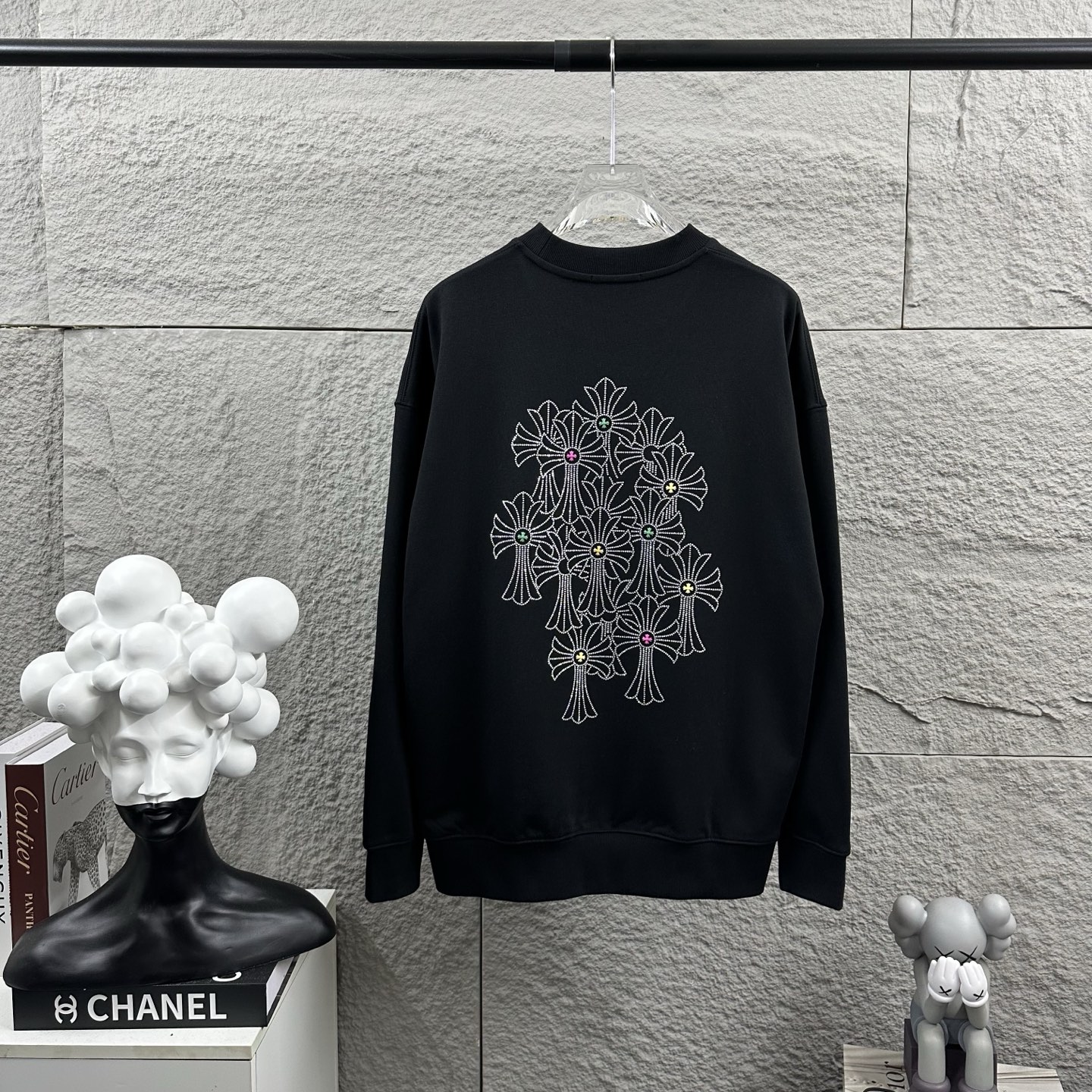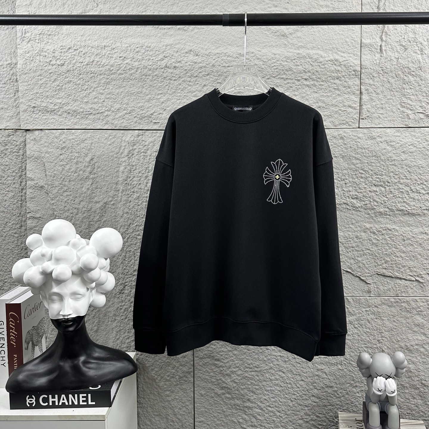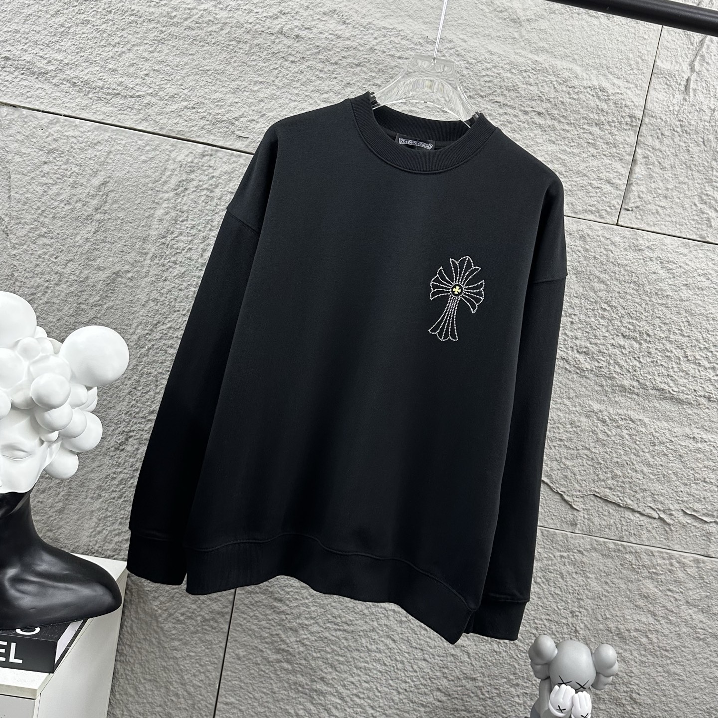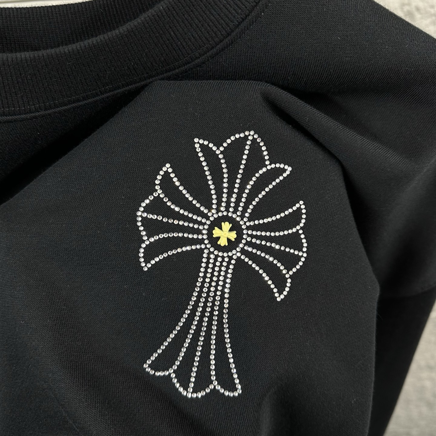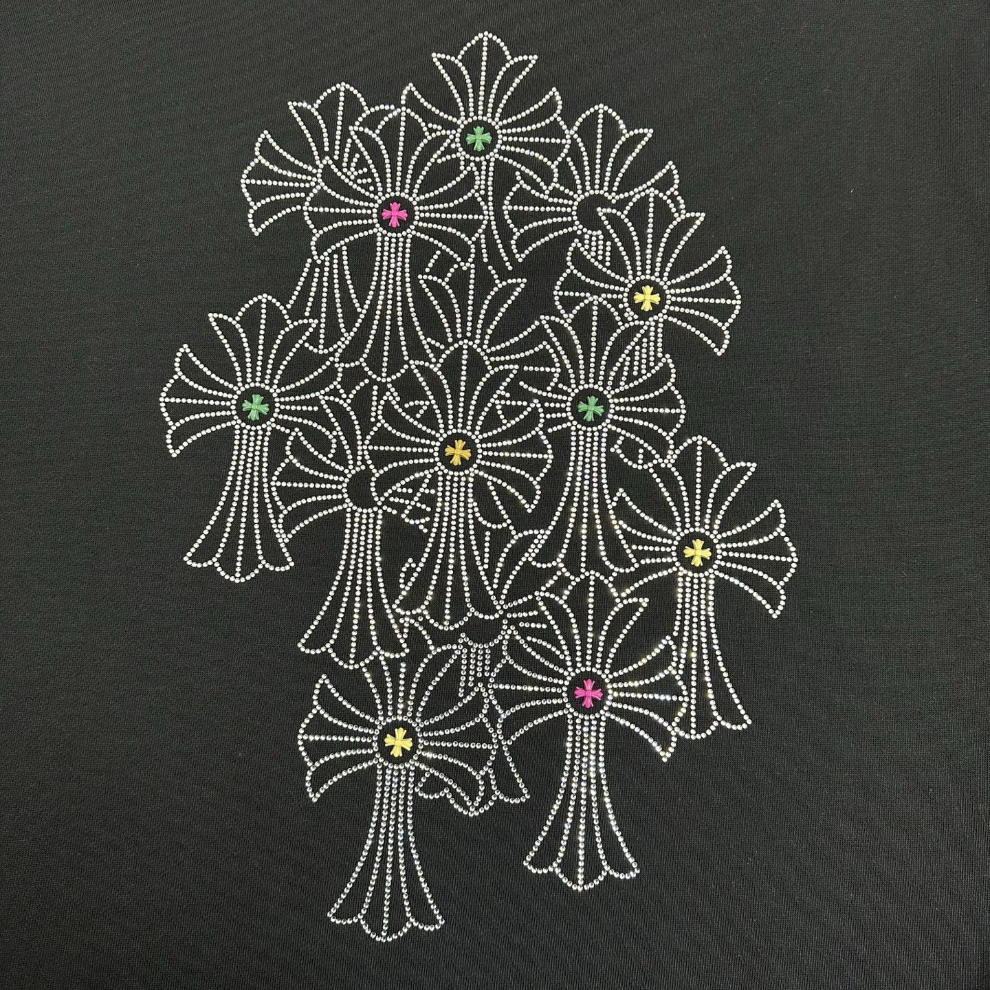 这款衣服是AAAAA 1:1 质量 (非常棒). 使用了和原版一模一样的材料. 商标部分也保持了和克罗心/Chrome Hearts一样. 图片拍摄是实物衣服拍摄, 您所收到的实物保证和我们图片一模一样.