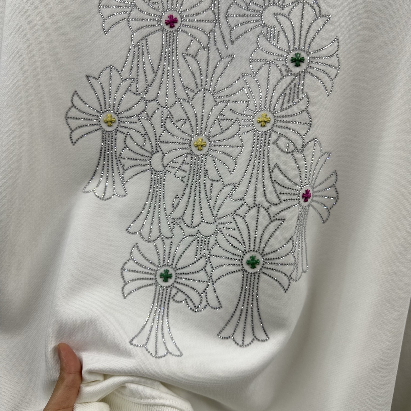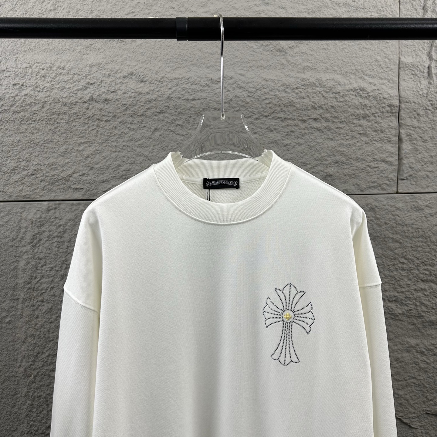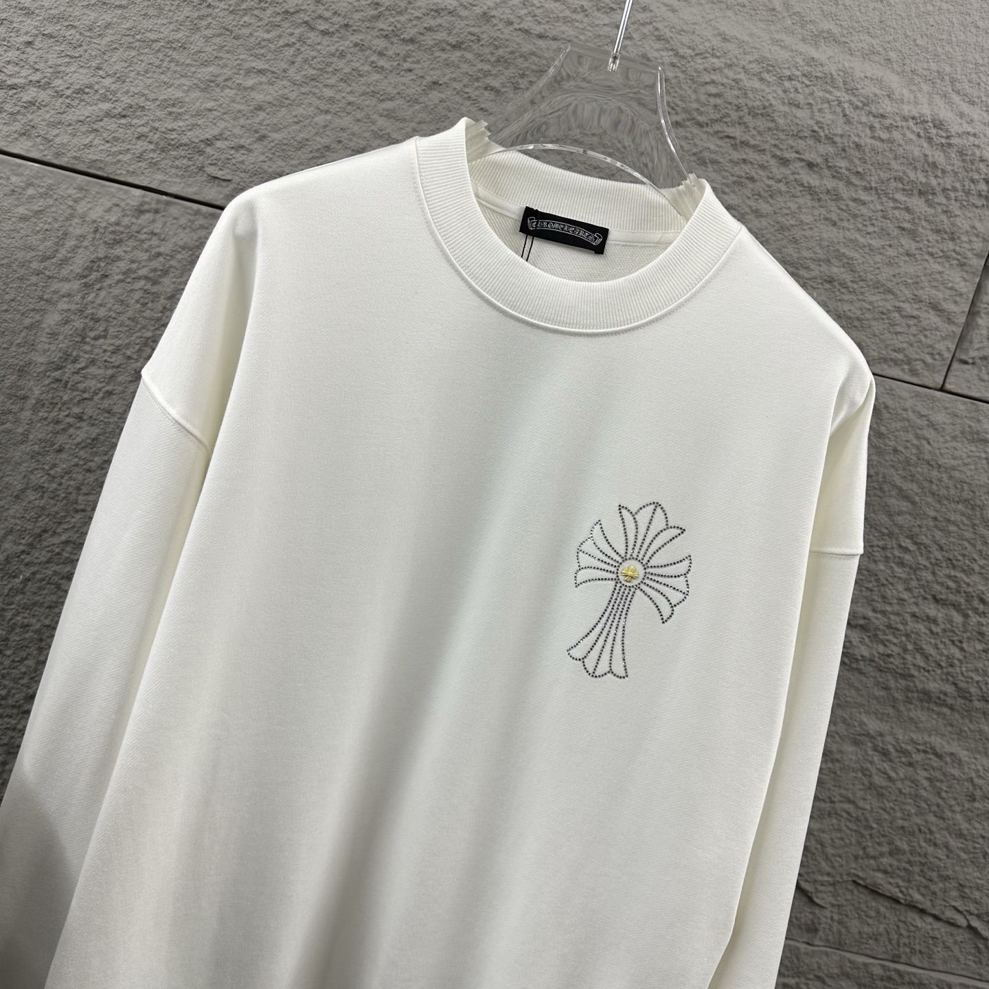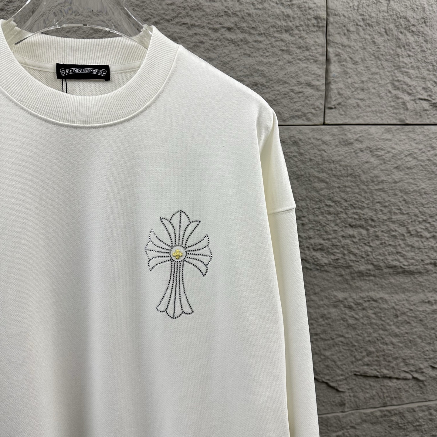 这款衣服是AAAAA 1:1 质量 (非常棒). 使用了和原版一模一样的材料. 商标部分也保持了和克罗心/Chrome Hearts一样. 图片拍摄是实物衣服拍摄, 您所收到的实物保证和我们图片一模一样.