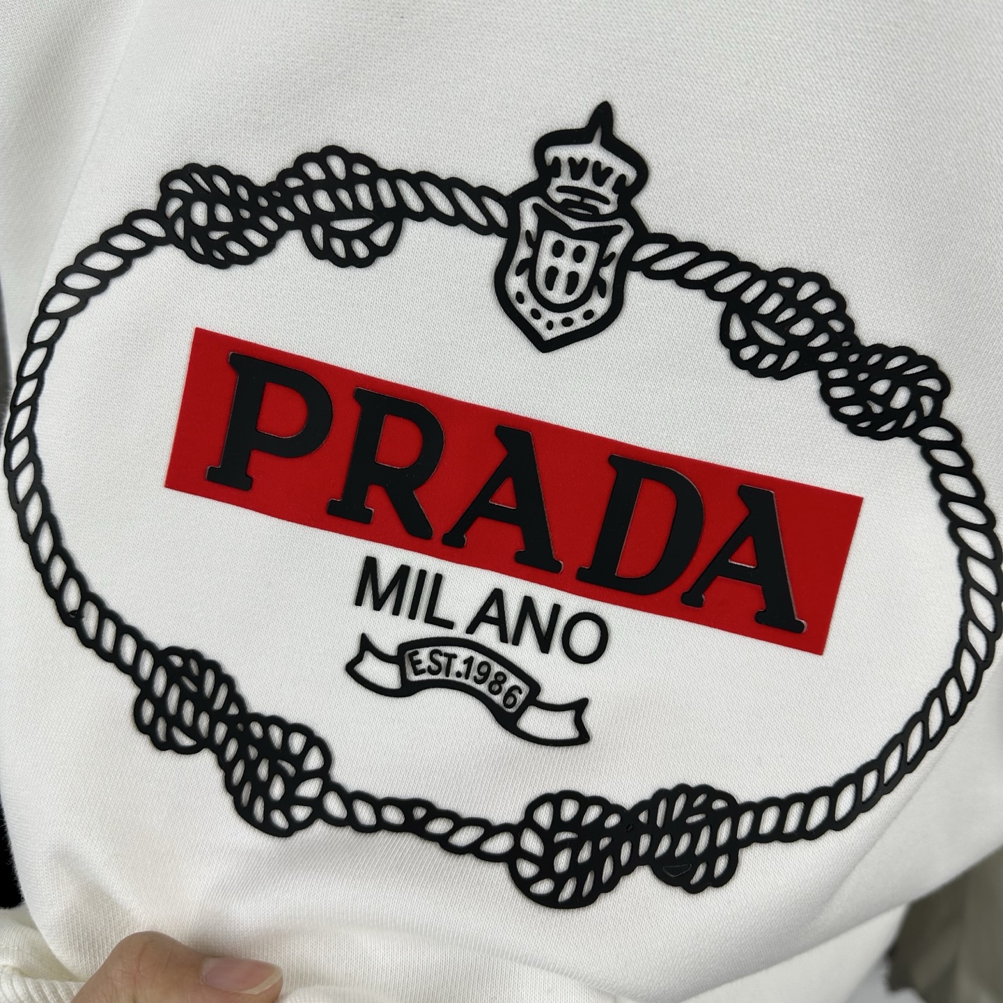 这款衣服是AAAAA 1:1 质量 (非常棒). 使用了和原版一模一样的材料. 商标部分也保持了和普拉达/Prada一样. 图片拍摄是实物衣服拍摄, 您所收到的实物保证和我们图片一模一样.