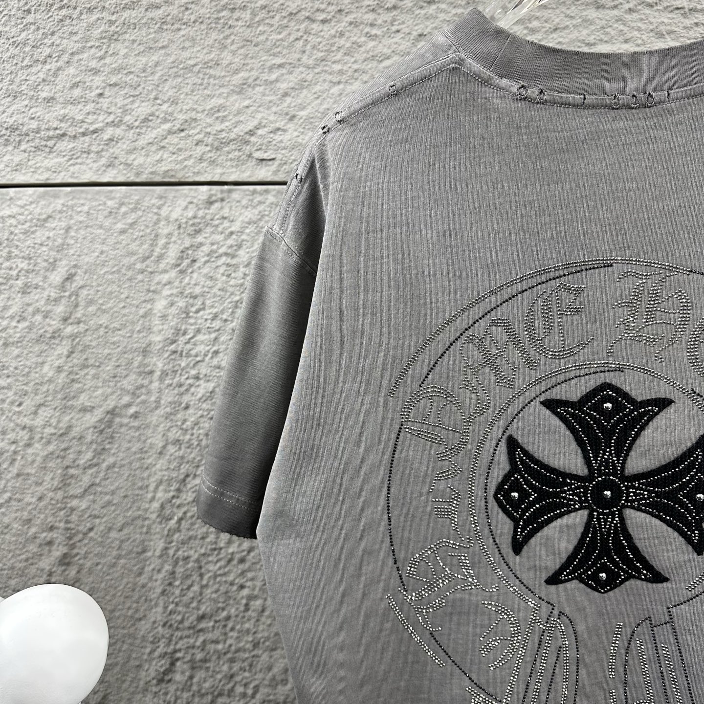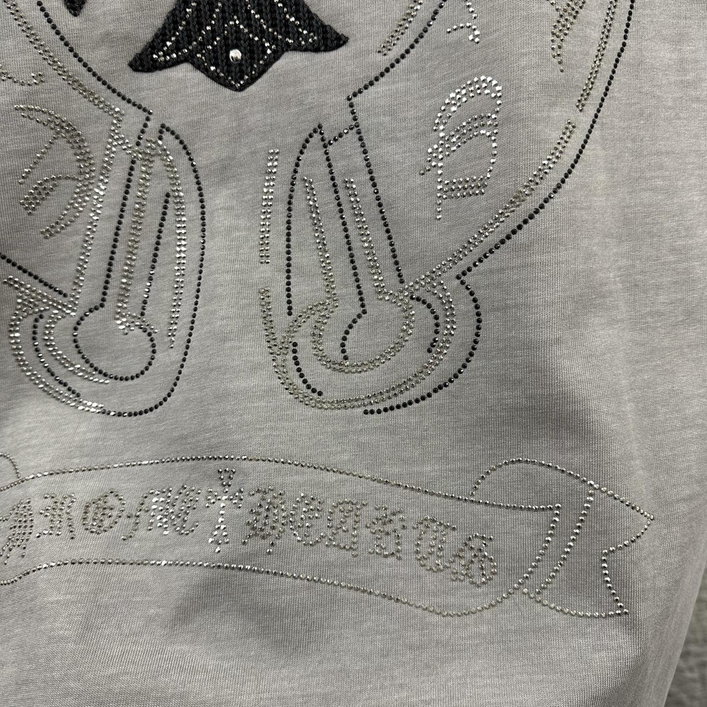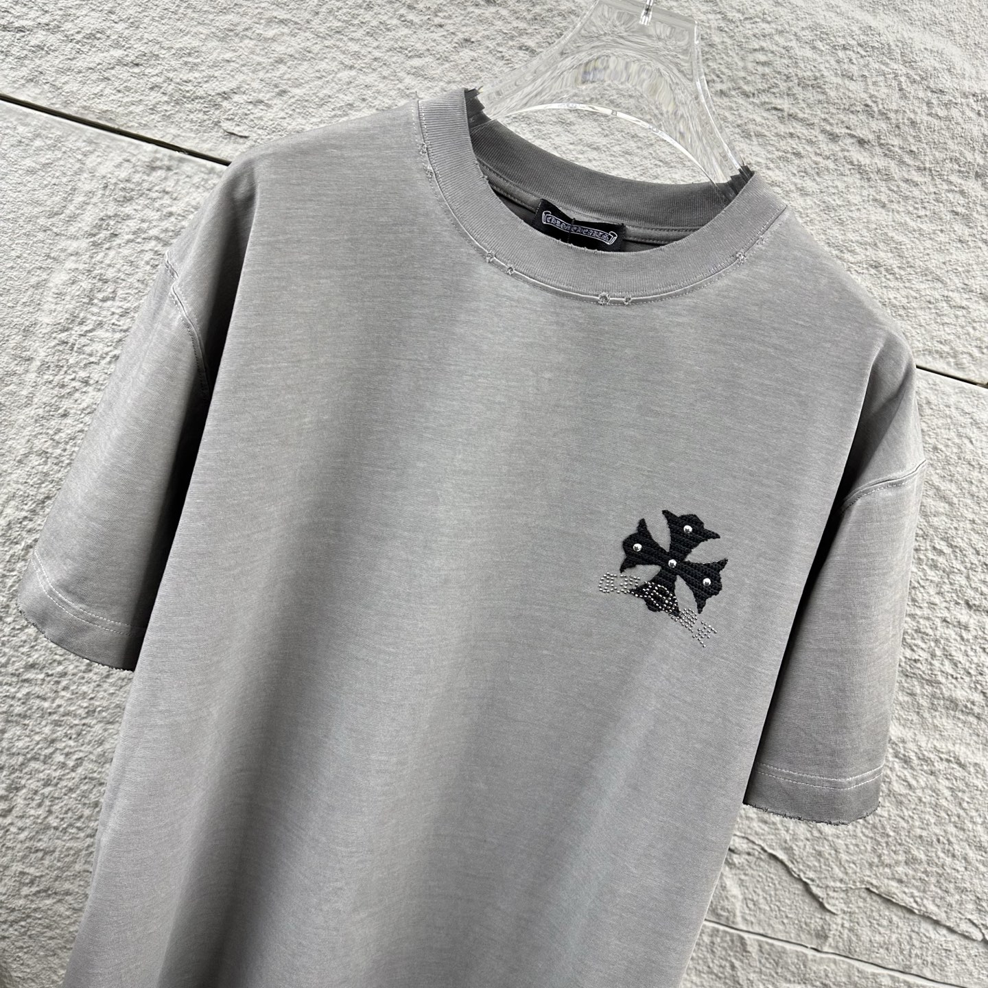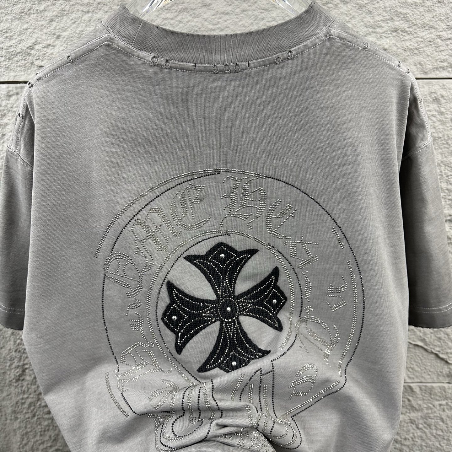 这款衣服是AAAAA 1:1 质量 (非常棒). 使用了和原版一模一样的材料. 商标部分也保持了和克罗心/Chrome Hearts一样. 图片拍摄是实物衣服拍摄, 您所收到的实物保证和我们图片一模一样.