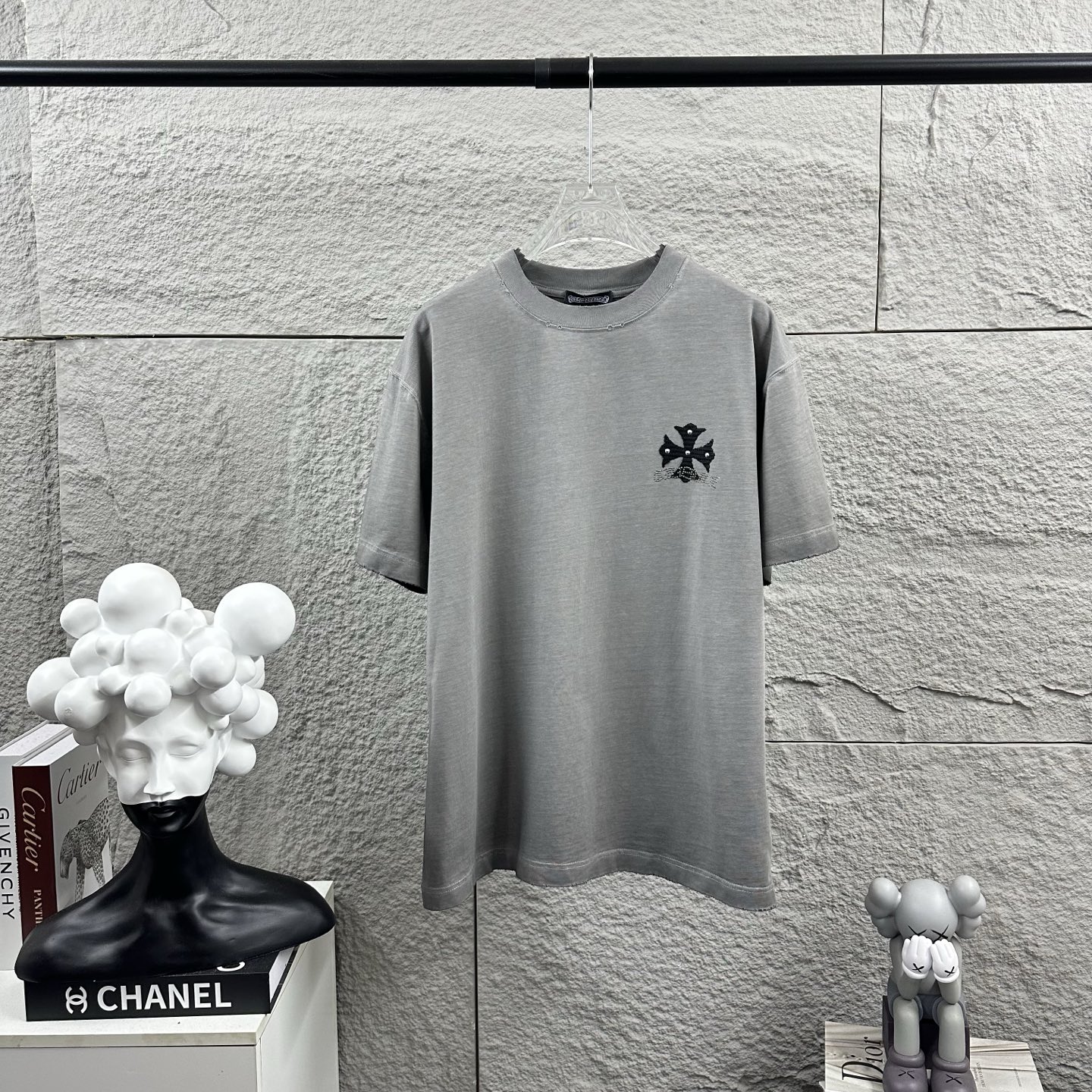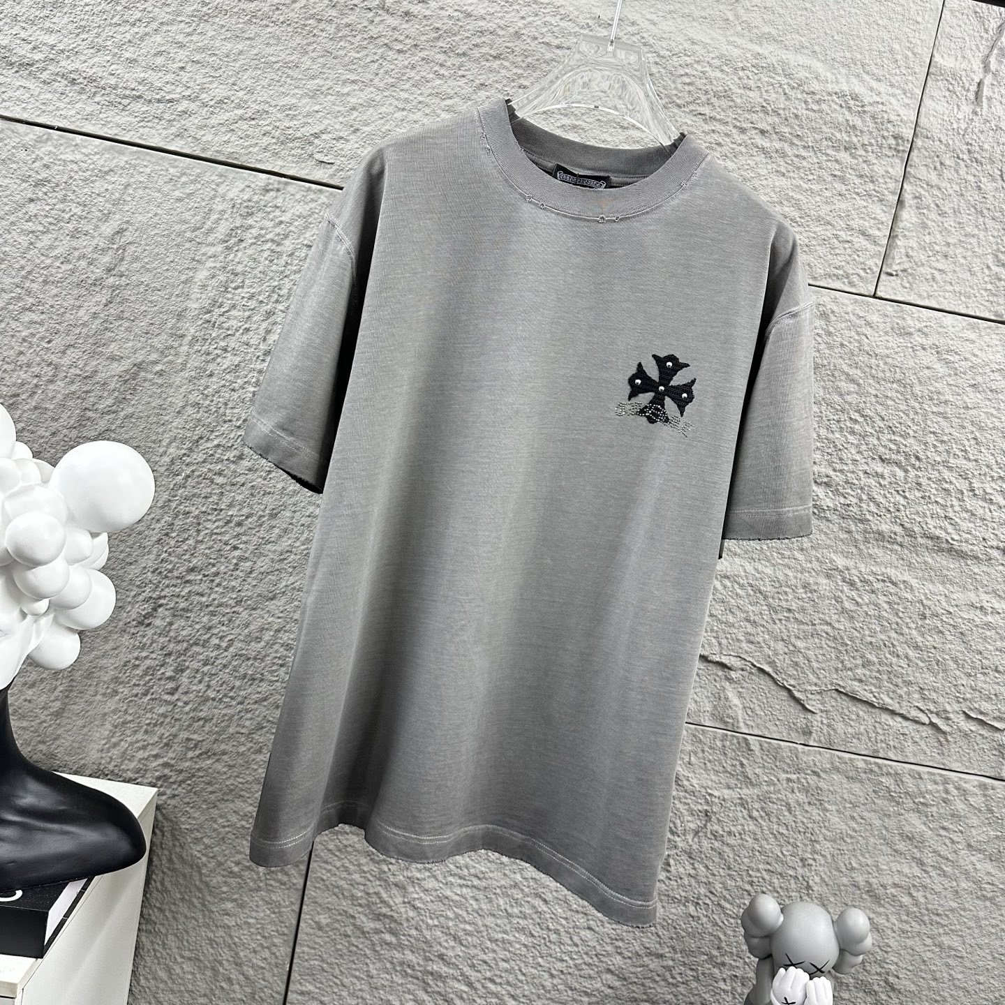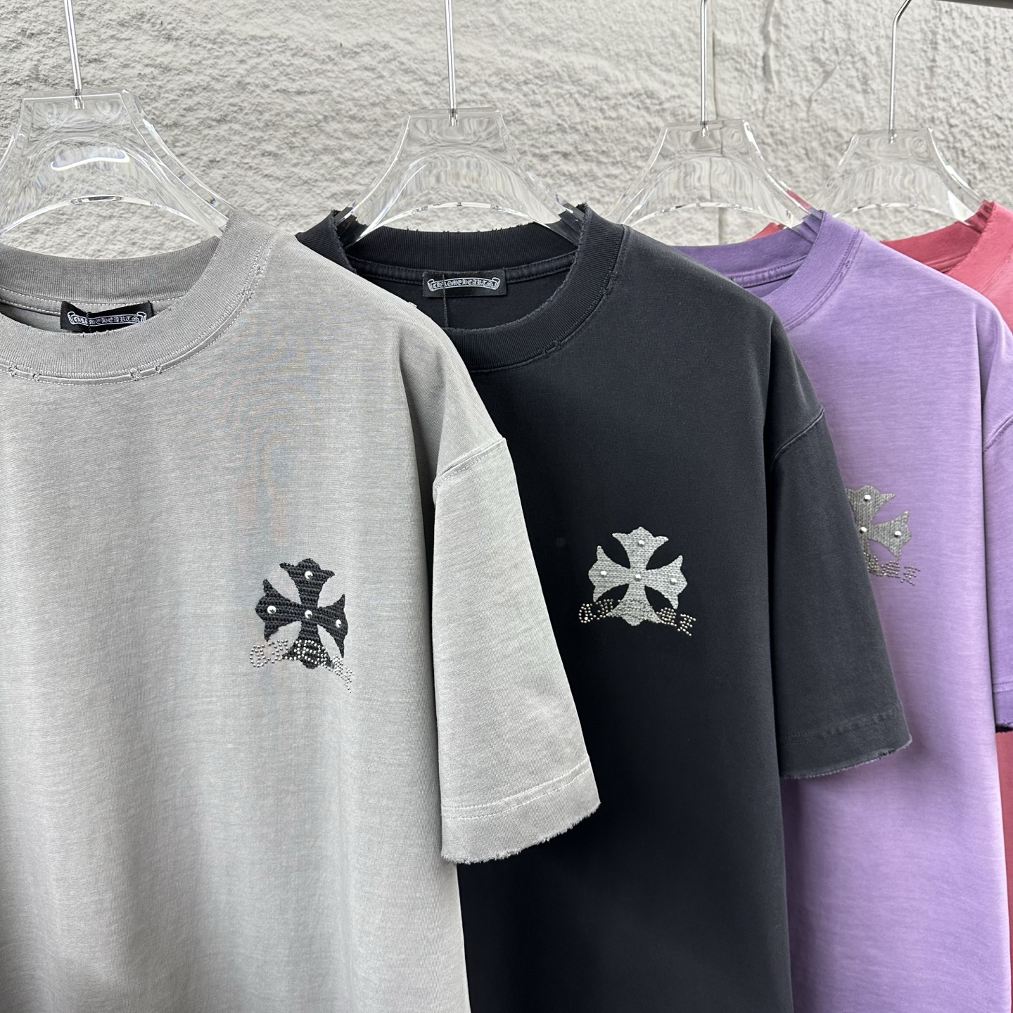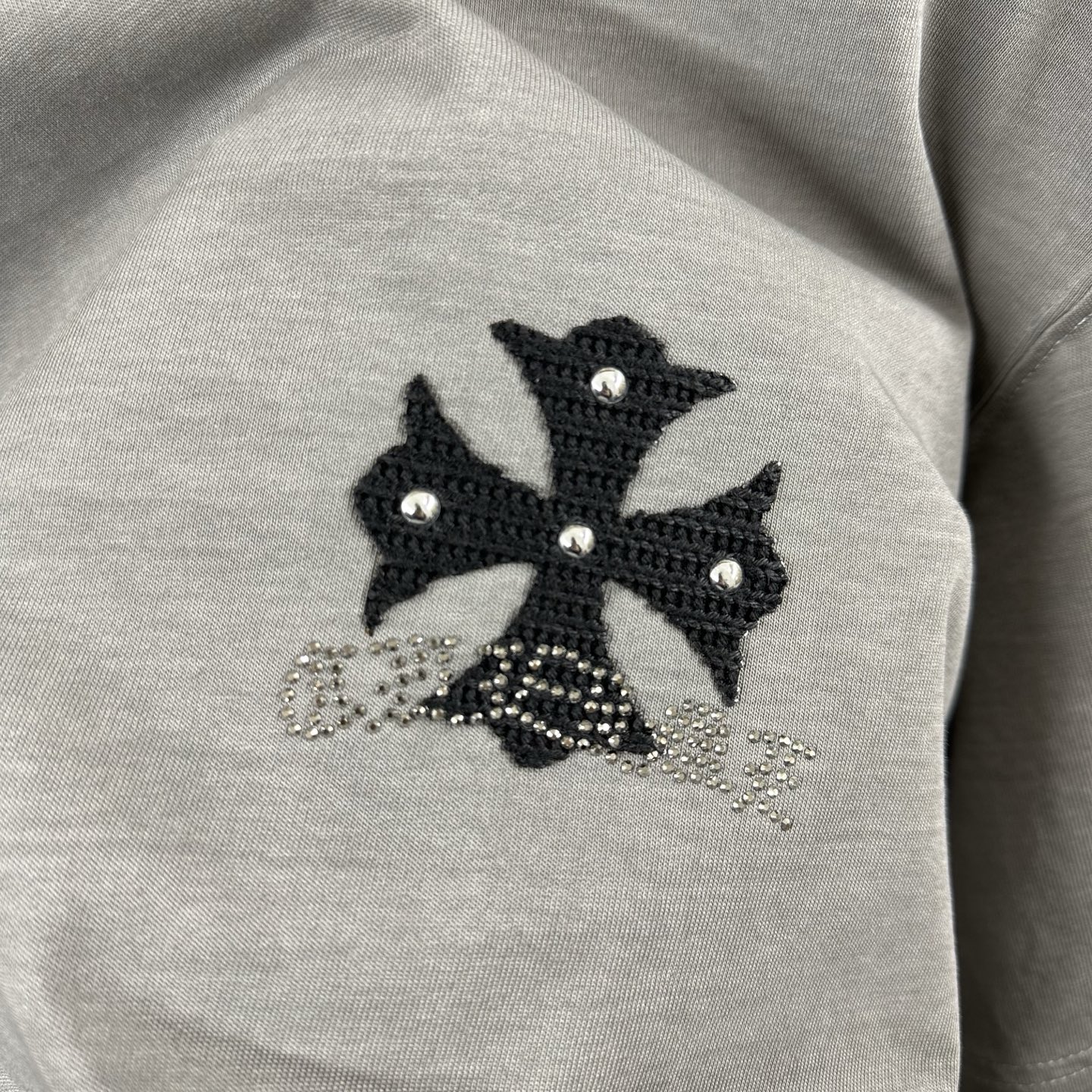 这款衣服是AAAAA 1:1 质量 (非常棒). 使用了和原版一模一样的材料. 商标部分也保持了和克罗心/Chrome Hearts一样. 图片拍摄是实物衣服拍摄, 您所收到的实物保证和我们图片一模一样.