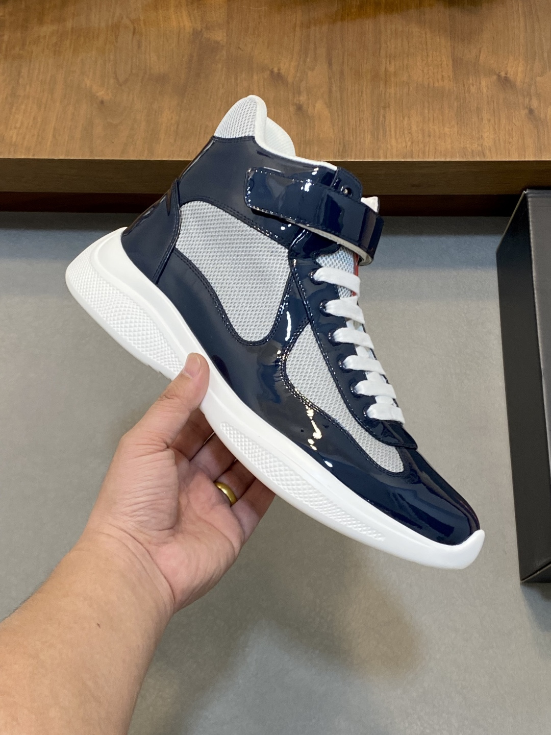 这款鞋子是AAAAA 1:1 质量 (非常棒). 使用了和原版一模一样的材料. 商标部分也保持了和普拉达/Prada一样. 图片拍摄是实物鞋子拍摄, 您所收到的实物保证和我们图片一模一样.