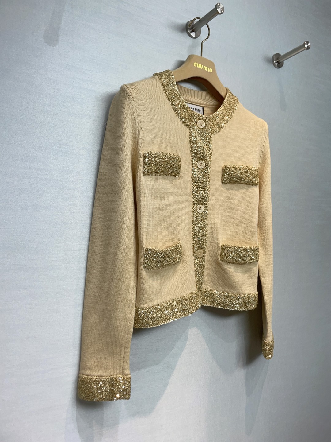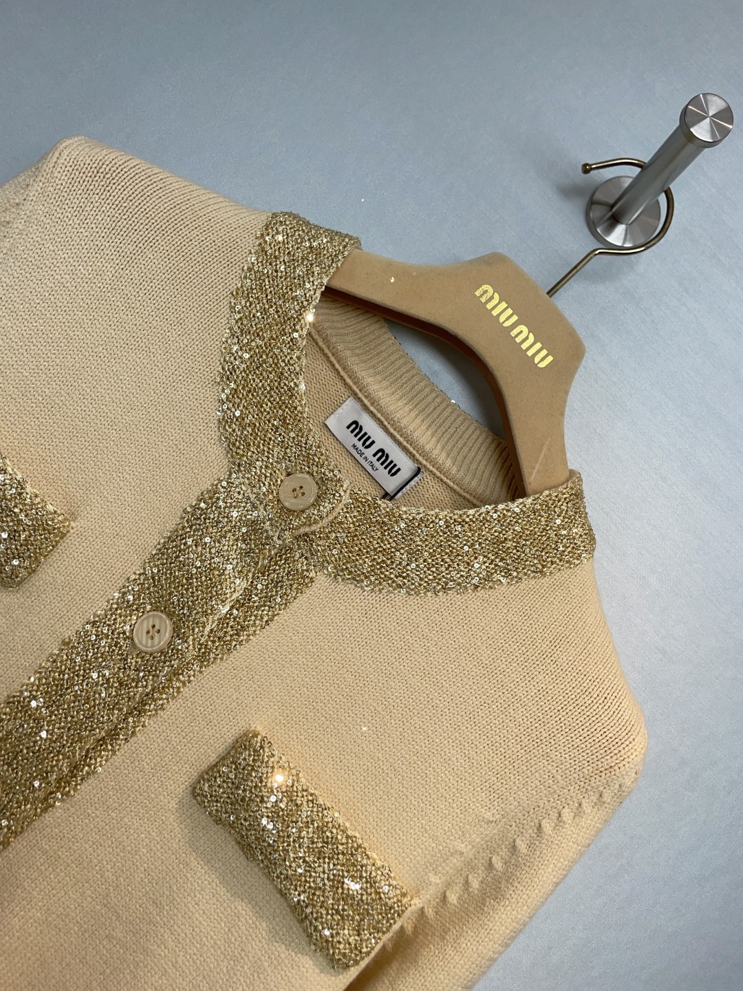 这款衣服是AAAAA 1:1 质量 (非常棒). 使用了和原版一模一样的材料. 商标部分也保持了和缪缪/Miu Miu一样. 图片拍摄是实物衣服拍摄, 您所收到的实物保证和我们图片一模一样.