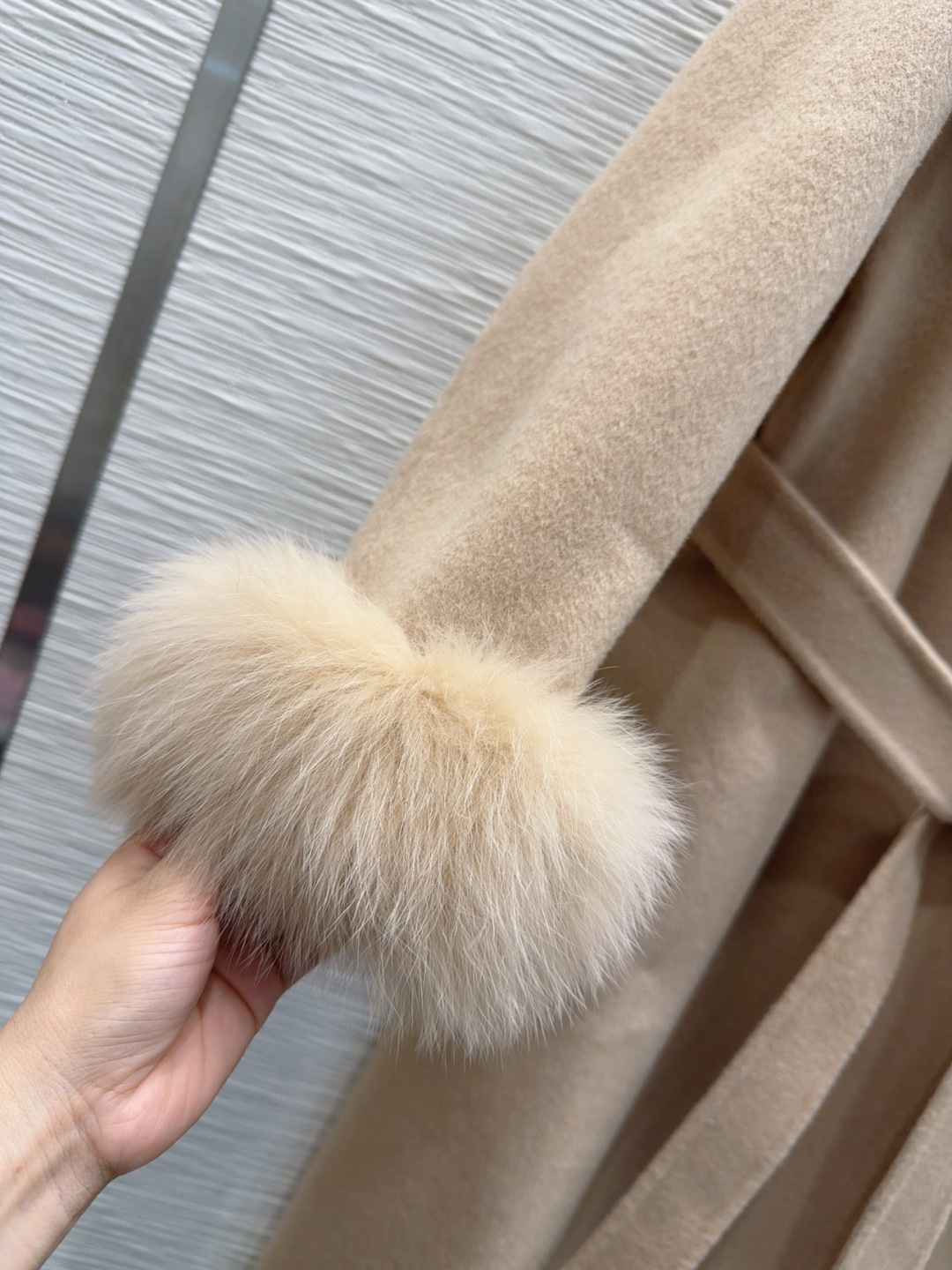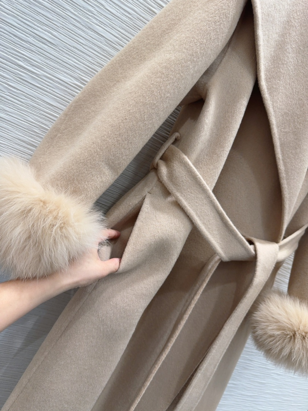 这款衣服是AAAAA 1:1 质量 (非常棒). 使用了和原版一模一样的材料. 商标部分也保持了和Max Mara一样. 图片拍摄是实物衣服拍摄, 您所收到的实物保证和我们图片一模一样.