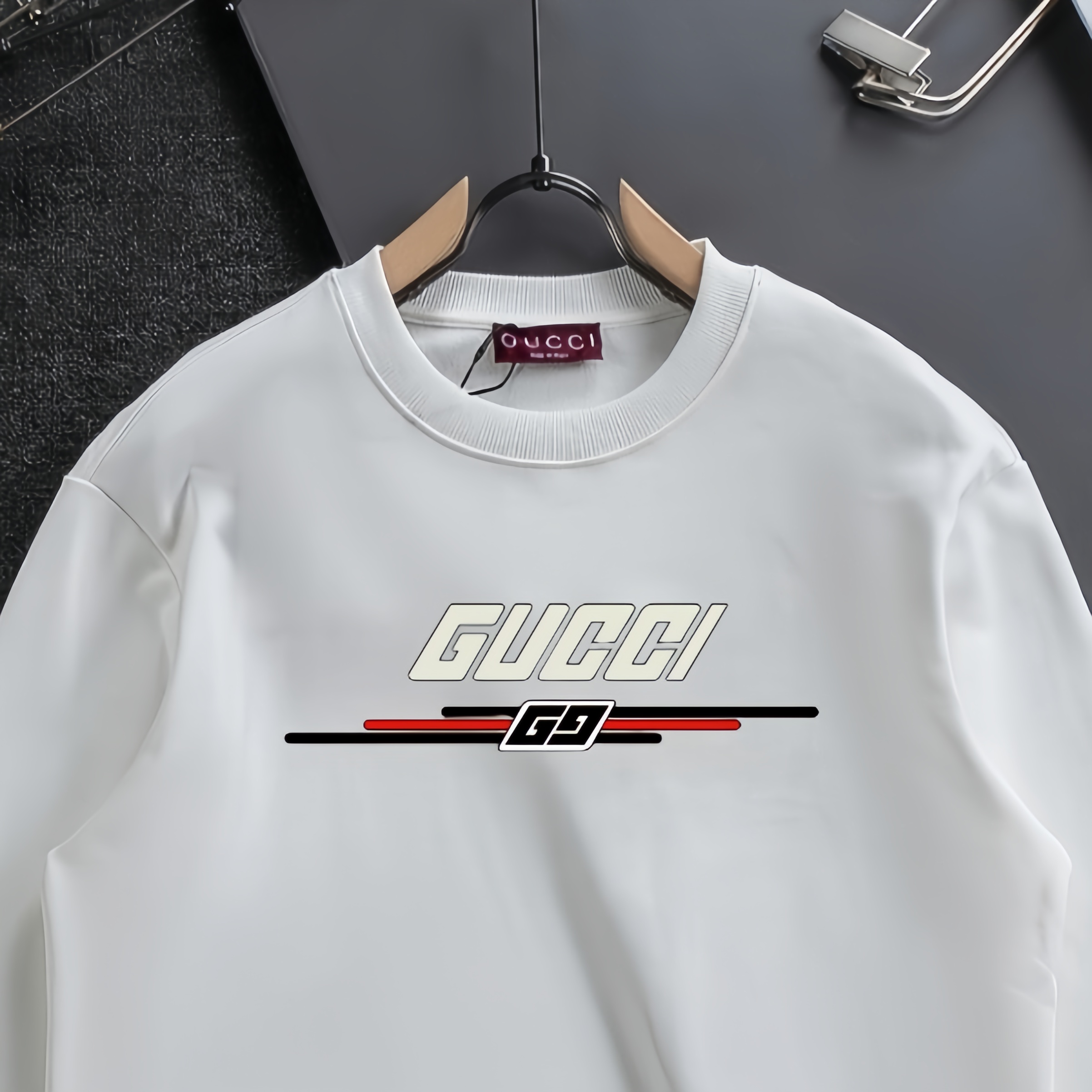 这款衣服是AAAAA 1:1 质量 (非常棒). 使用了和原版一模一样的材料. 商标部分也保持了和古奇/Gucci一样. 图片拍摄是实物衣服拍摄, 您所收到的实物保证和我们图片一模一样.