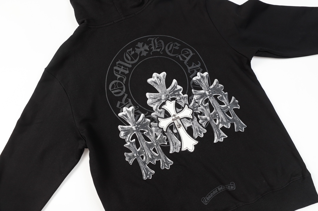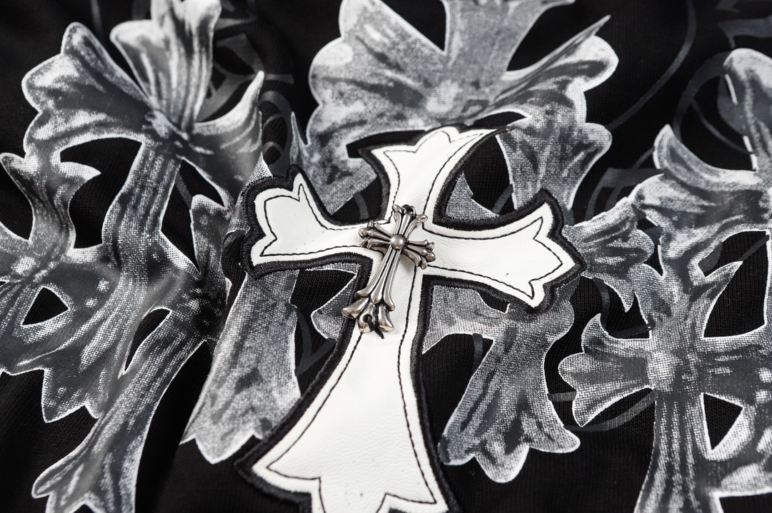这款衣服是AAAAA 1:1 质量 (非常棒). 使用了和原版一模一样的材料. 商标部分也保持了和克罗心/Chrome Hearts一样. 图片拍摄是实物衣服拍摄, 您所收到的实物保证和我们图片一模一样.