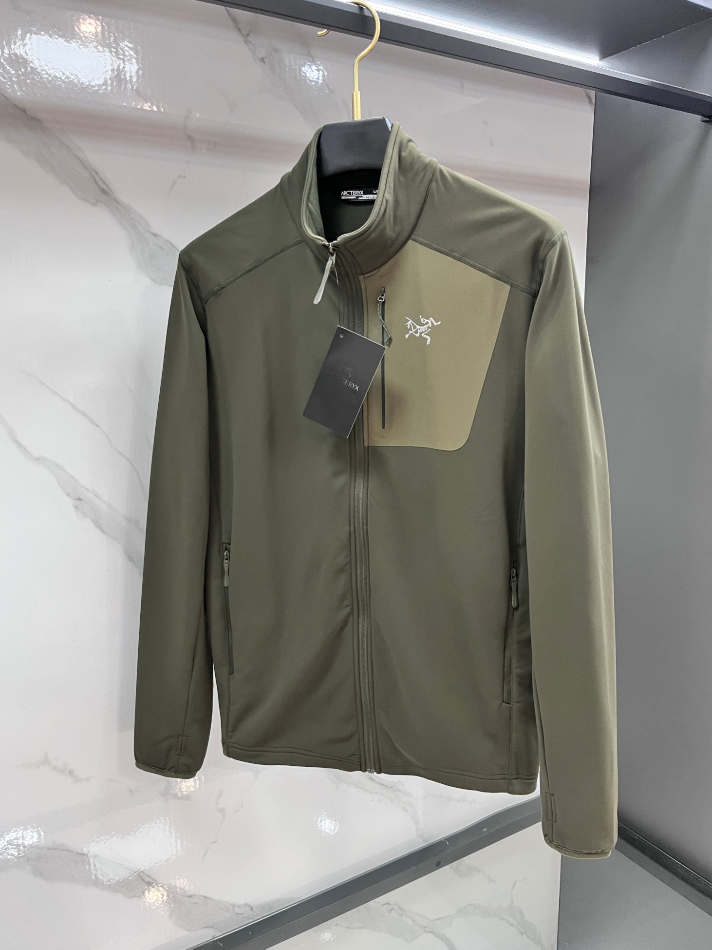 这款衣服是AAAAA 1:1 质量 (非常棒). 使用了和原版一模一样的材料. 商标部分也保持了和ARC'TERYX一样. 图片拍摄是实物衣服拍摄, 您所收到的实物保证和我们图片一模一样.