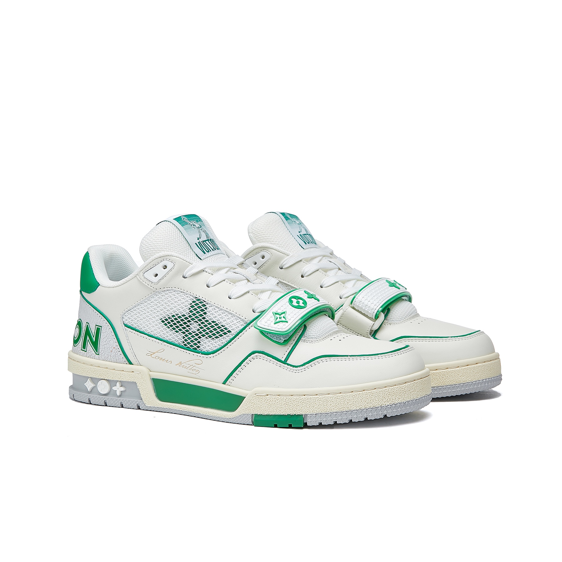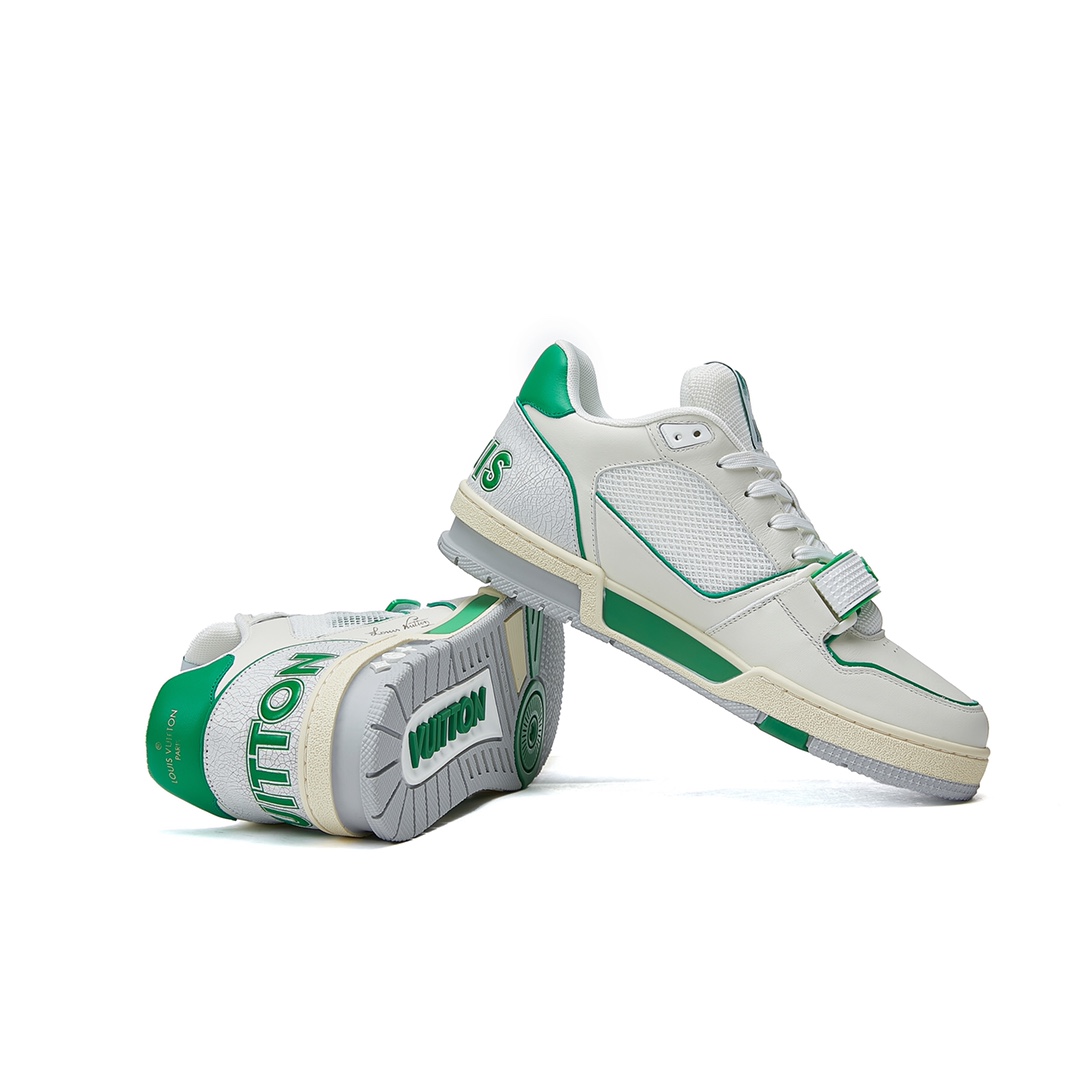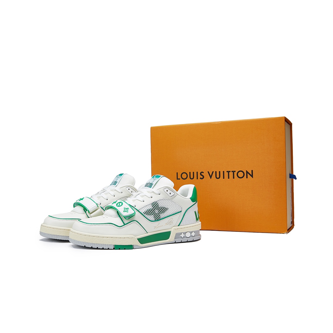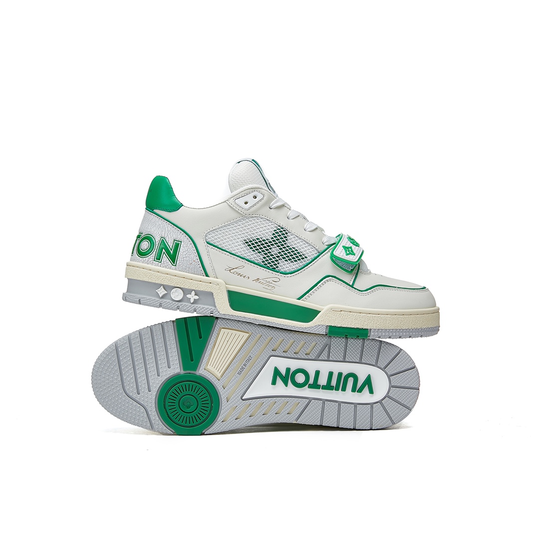 这款鞋子是AAAAA 1:1 质量 (非常棒). 使用了和原版一模一样的材料. 商标部分也保持了和路易威登/Louis Vuitton一样. 图片拍摄是实物鞋子拍摄, 您所收到的实物保证和我们图片一模一样.