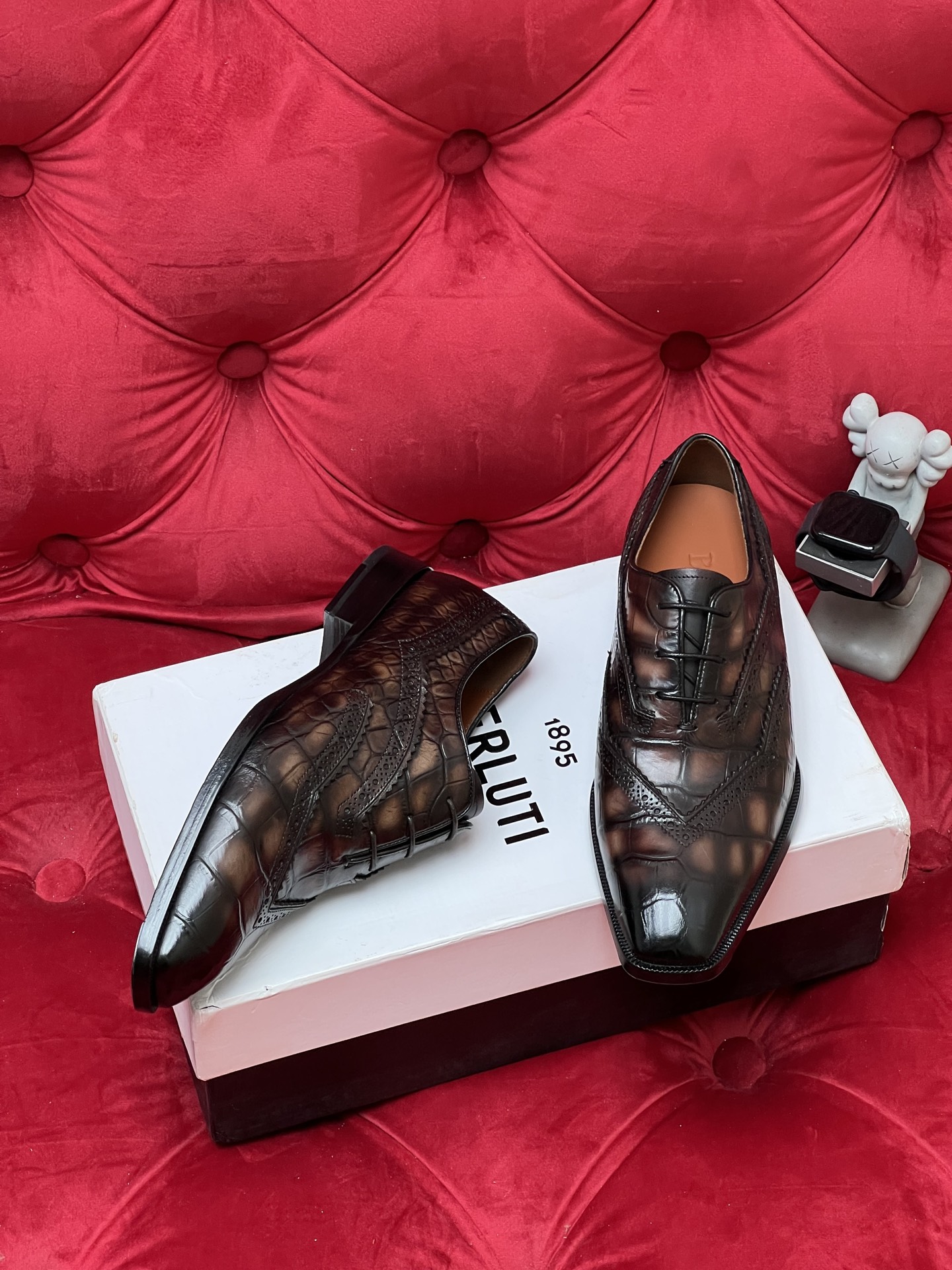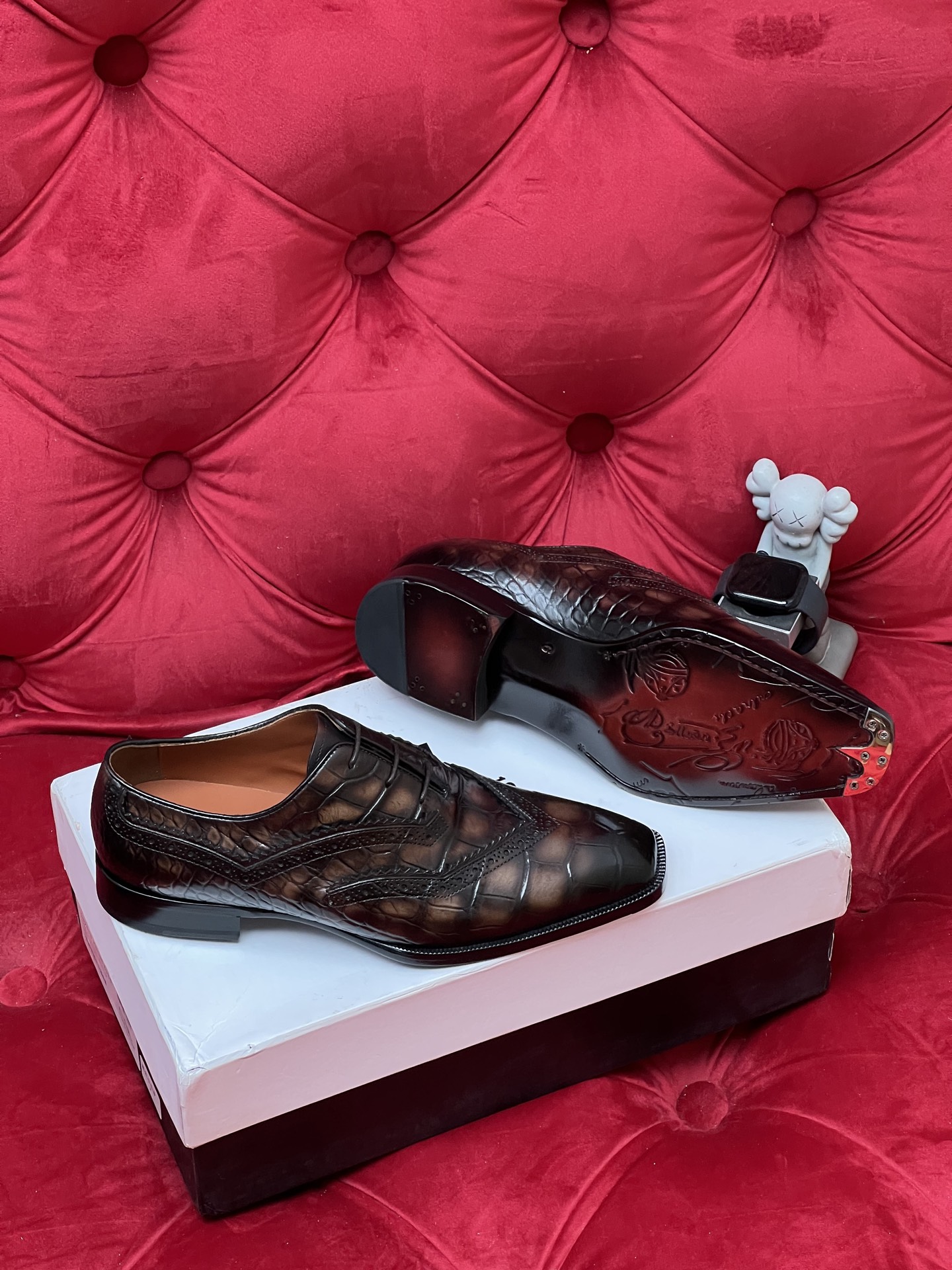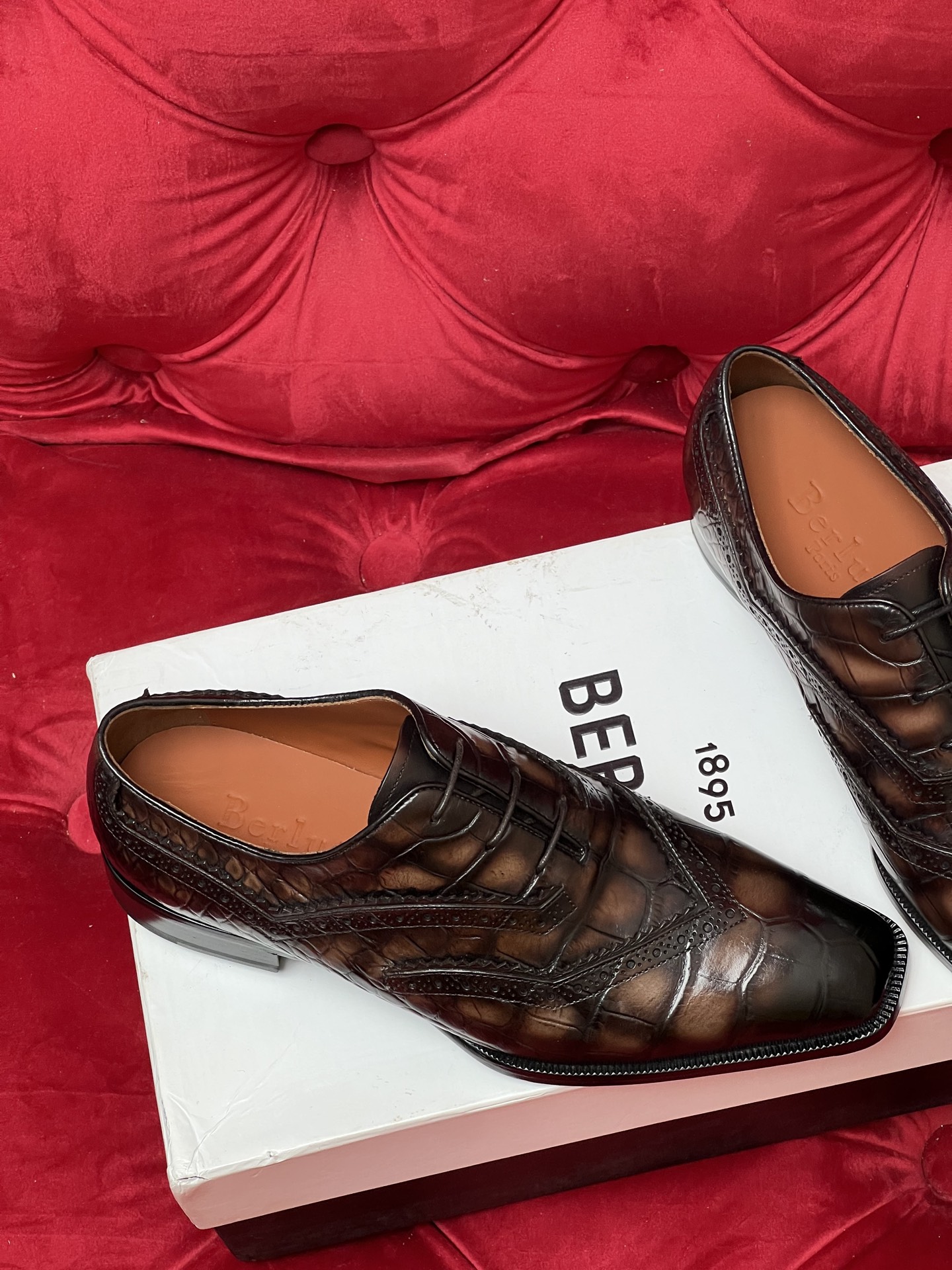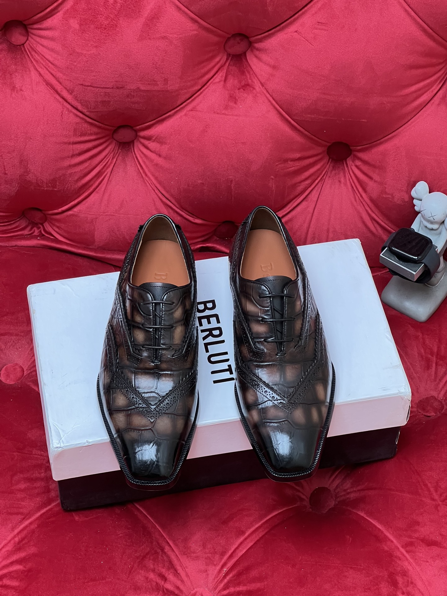 这款鞋子是AAAAA 1:1 质量 (非常棒). 使用了和原版一模一样的材料. 商标部分也保持了和Berluti一样. 图片拍摄是实物鞋子拍摄, 您所收到的实物保证和我们图片一模一样.