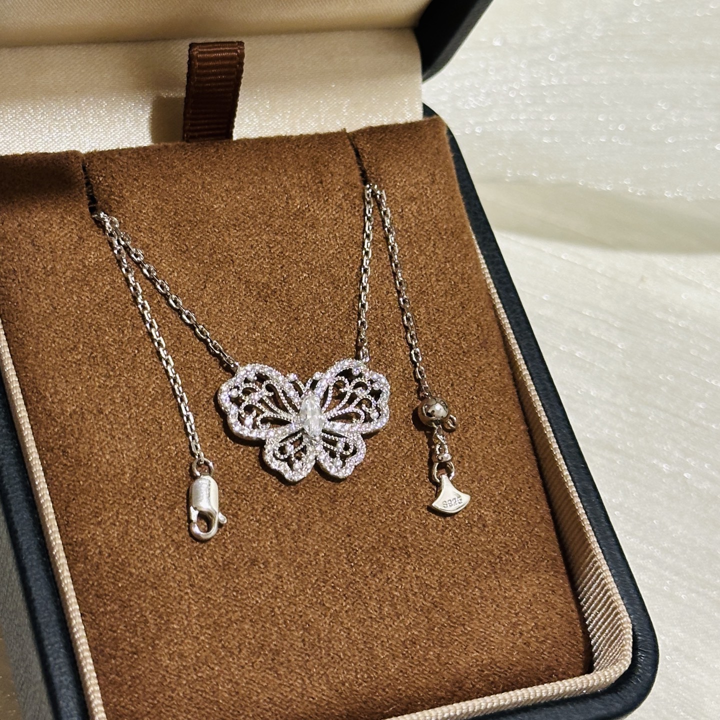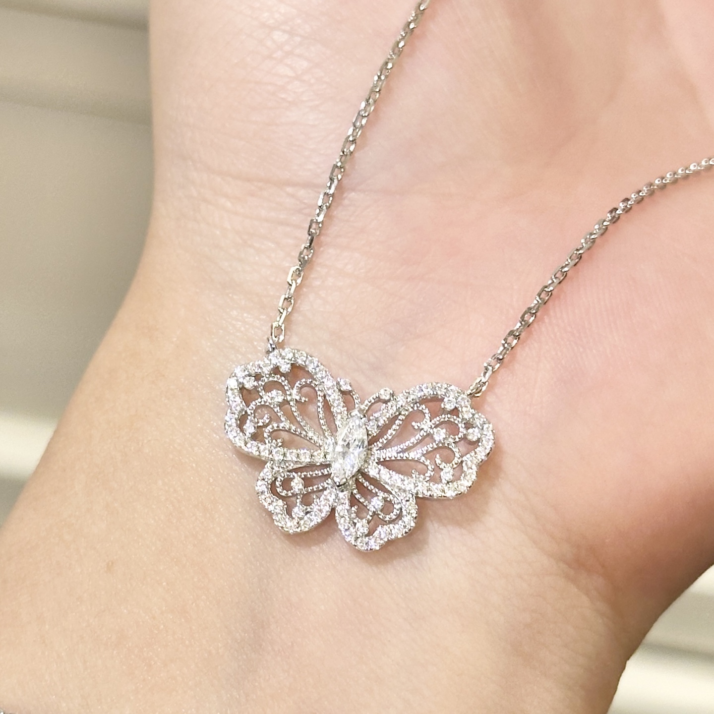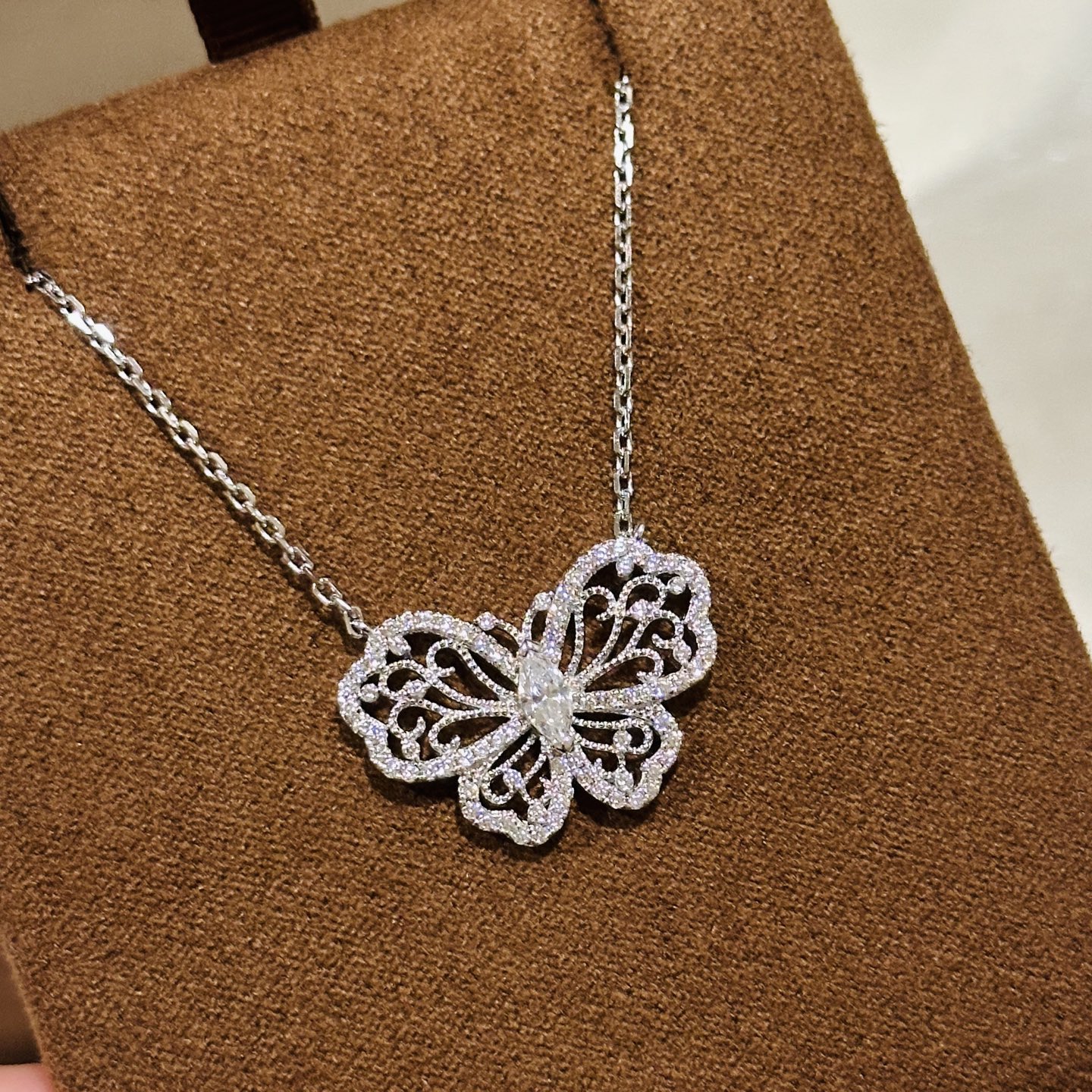 这款首饰是AAAAA 1:1 质量 (非常棒). 使用了和原版一模一样的材料. 商标部分也保持了和GRAFF一样. 图片拍摄是实物首饰拍摄, 您所收到的实物保证和我们图片一模一样.