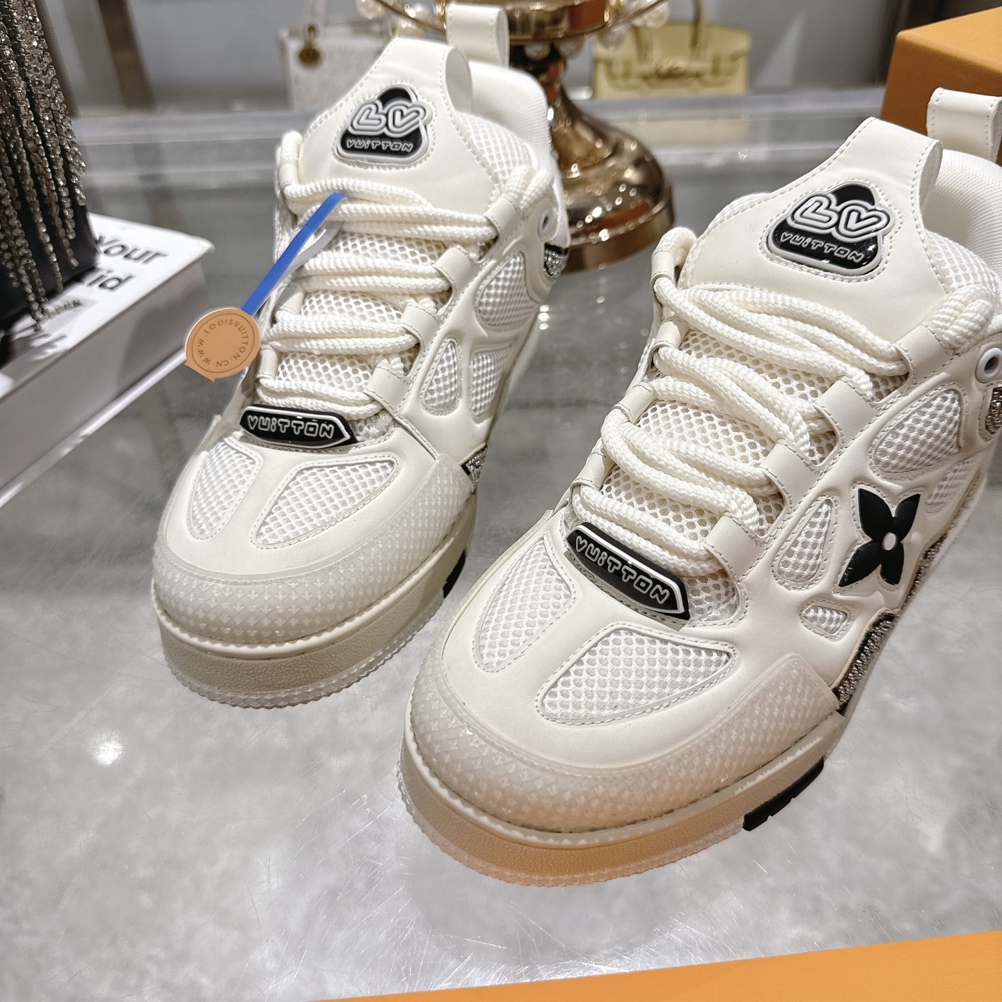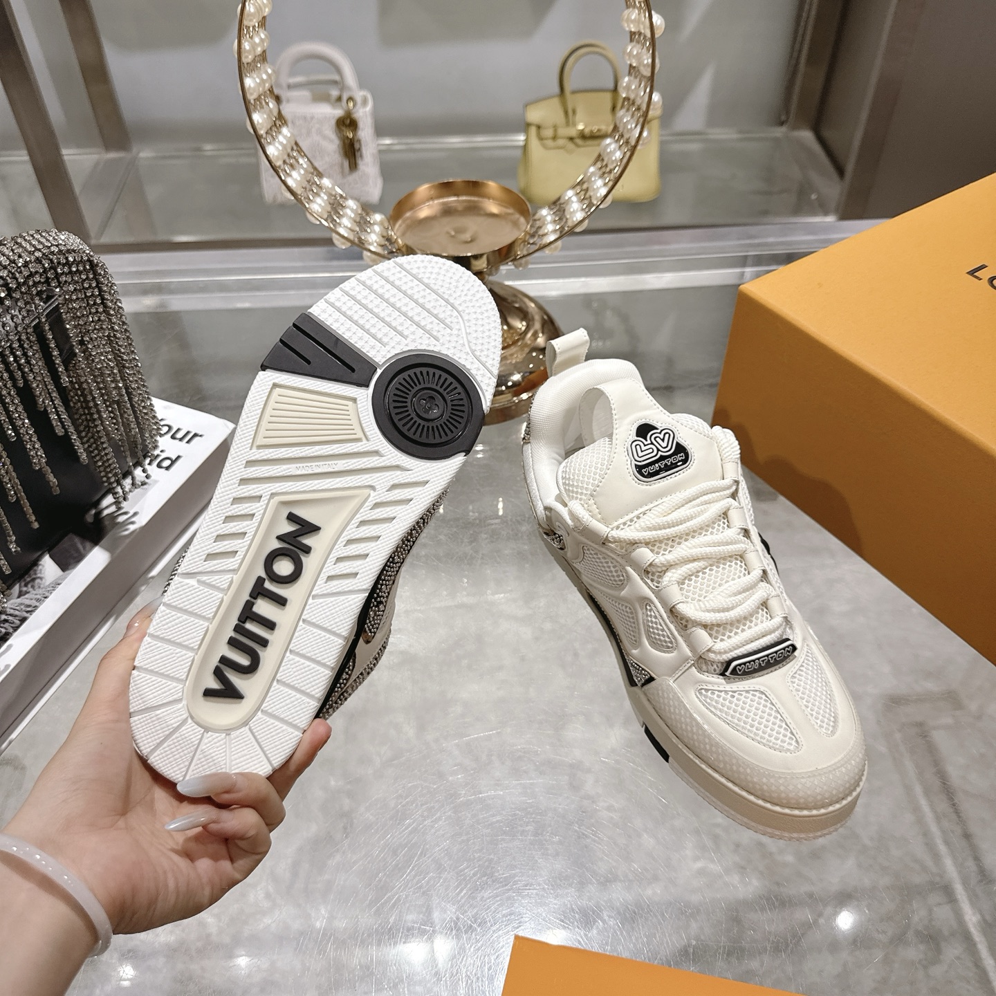 这款鞋子是AAAAA 1:1 质量 (非常棒). 使用了和原版一模一样的材料. 商标部分也保持了和路易威登/Louis Vuitton一样. 图片拍摄是实物鞋子拍摄, 您所收到的实物保证和我们图片一模一样.