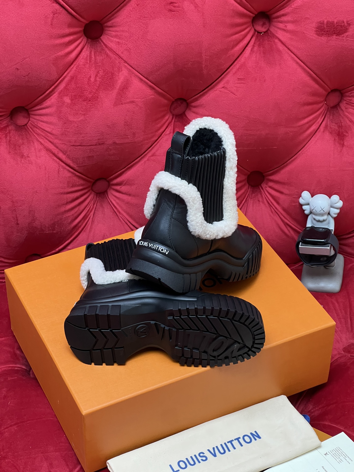 这款鞋子是AAAAA 1:1 质量 (非常棒). 使用了和原版一模一样的材料. 商标部分也保持了和路易威登/Louis Vuitton一样. 图片拍摄是实物鞋子拍摄, 您所收到的实物保证和我们图片一模一样.