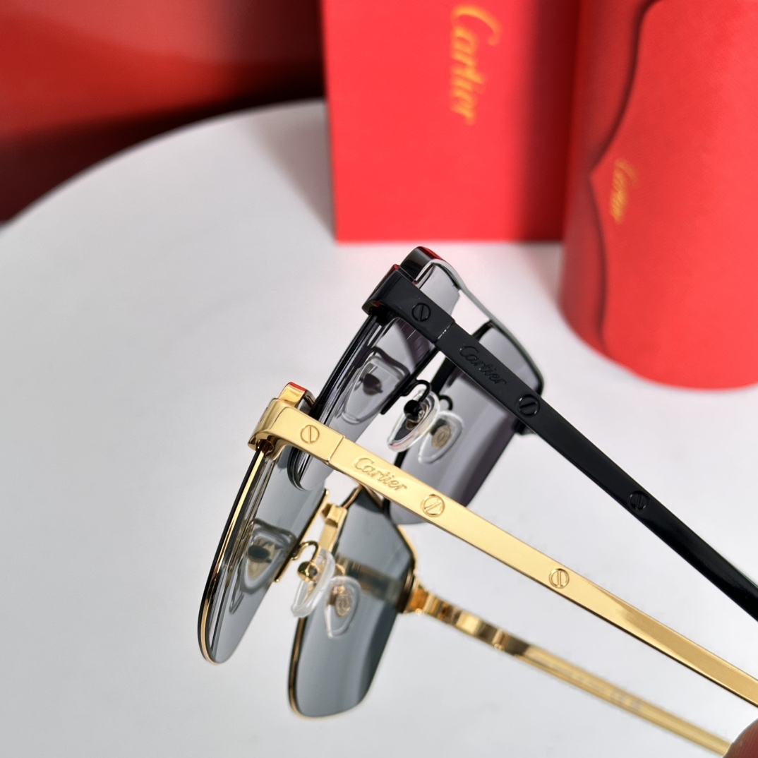 这款太阳眼镜是AAAAA 1:1 质量 (非常棒). 使用了和原版一模一样的材料. 商标部分也保持了和卡地亚/Cartier一样. 图片拍摄是实物太阳眼镜拍摄, 您所收到的实物保证和我们图片一模一样.