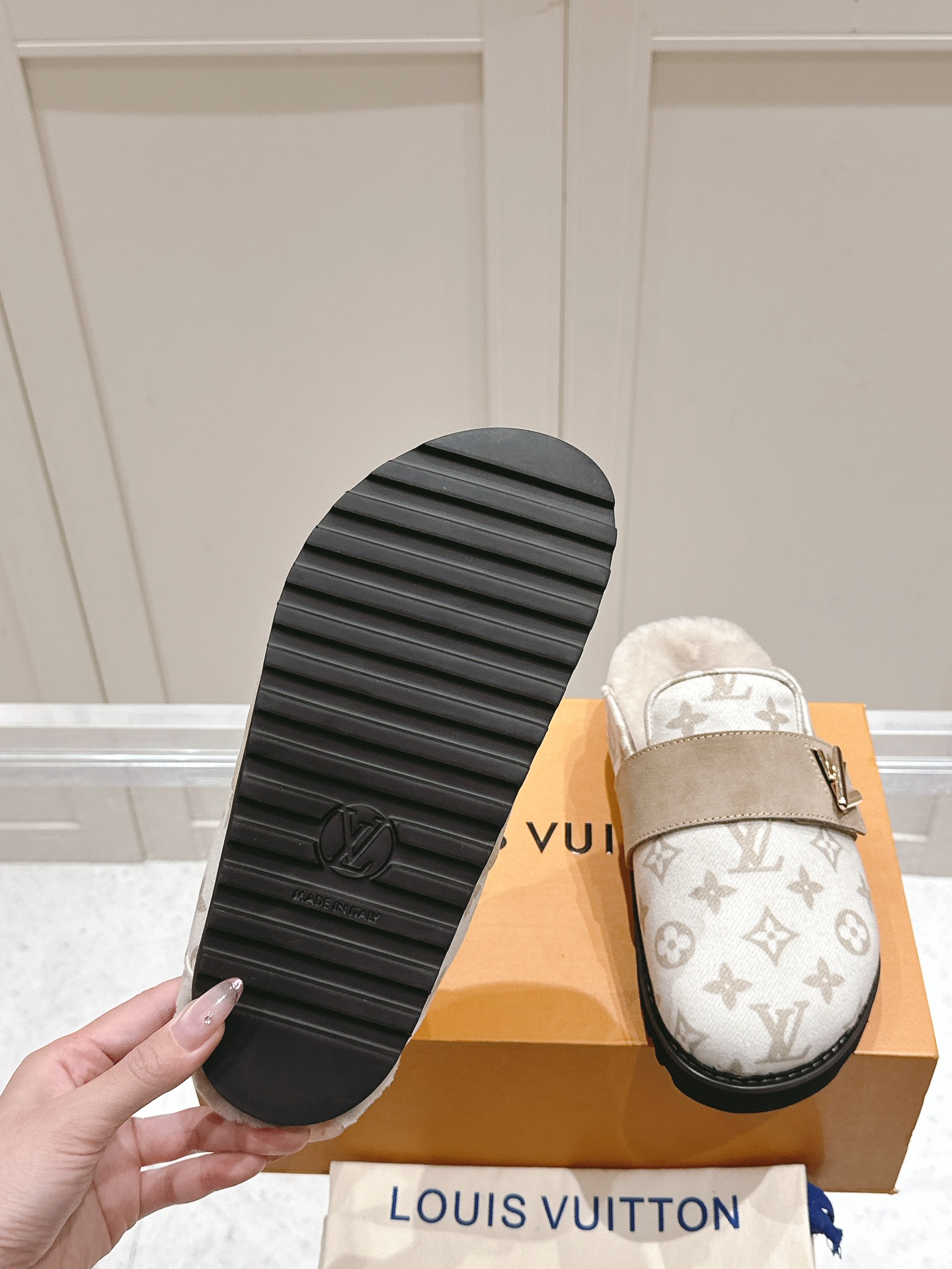 这款鞋子是AAAAA 1:1 质量 (非常棒). 使用了和原版一模一样的材料. 商标部分也保持了和路易威登/Louis Vuitton一样. 图片拍摄是实物鞋子拍摄, 您所收到的实物保证和我们图片一模一样.