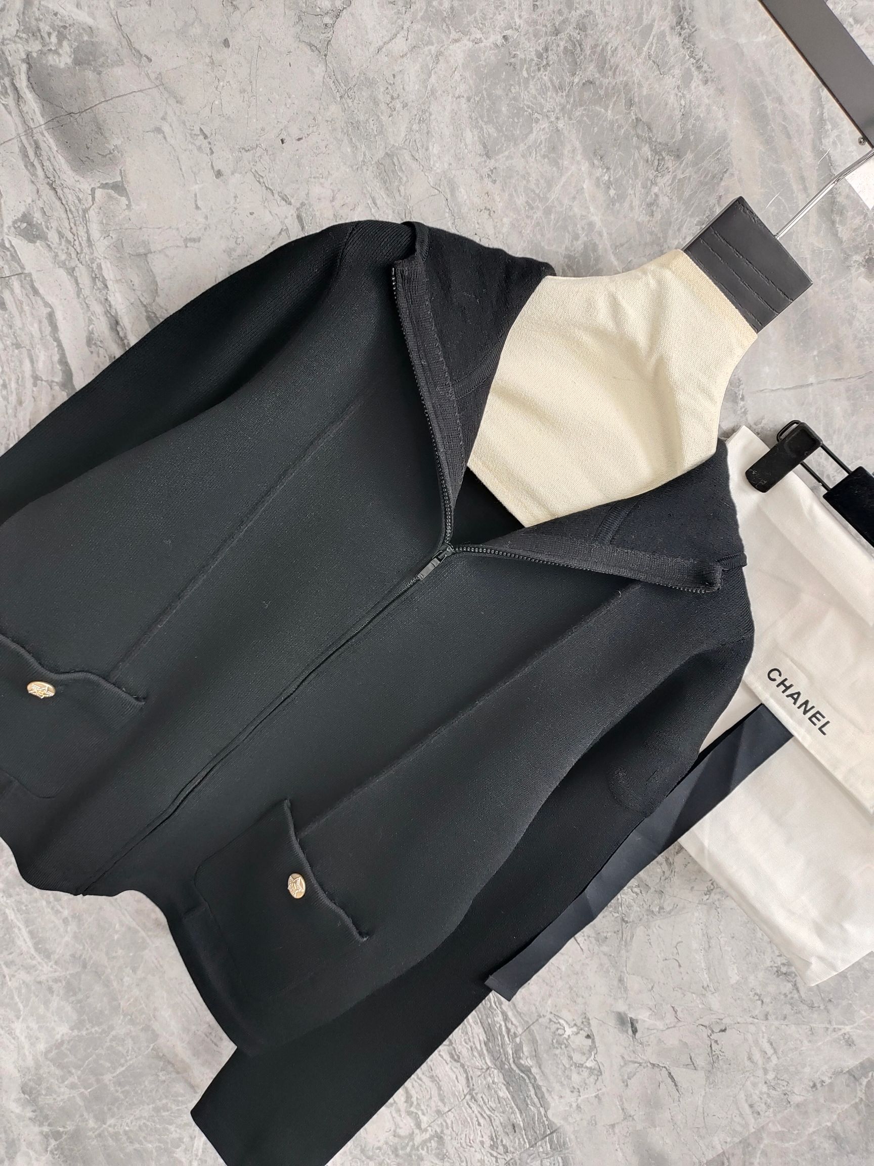 这款衣服是AAAAA 1:1 质量 (非常棒). 使用了和原版一模一样的材料. 商标部分也保持了和香奈儿/Chanel一样. 图片拍摄是实物衣服拍摄, 您所收到的实物保证和我们图片一模一样.