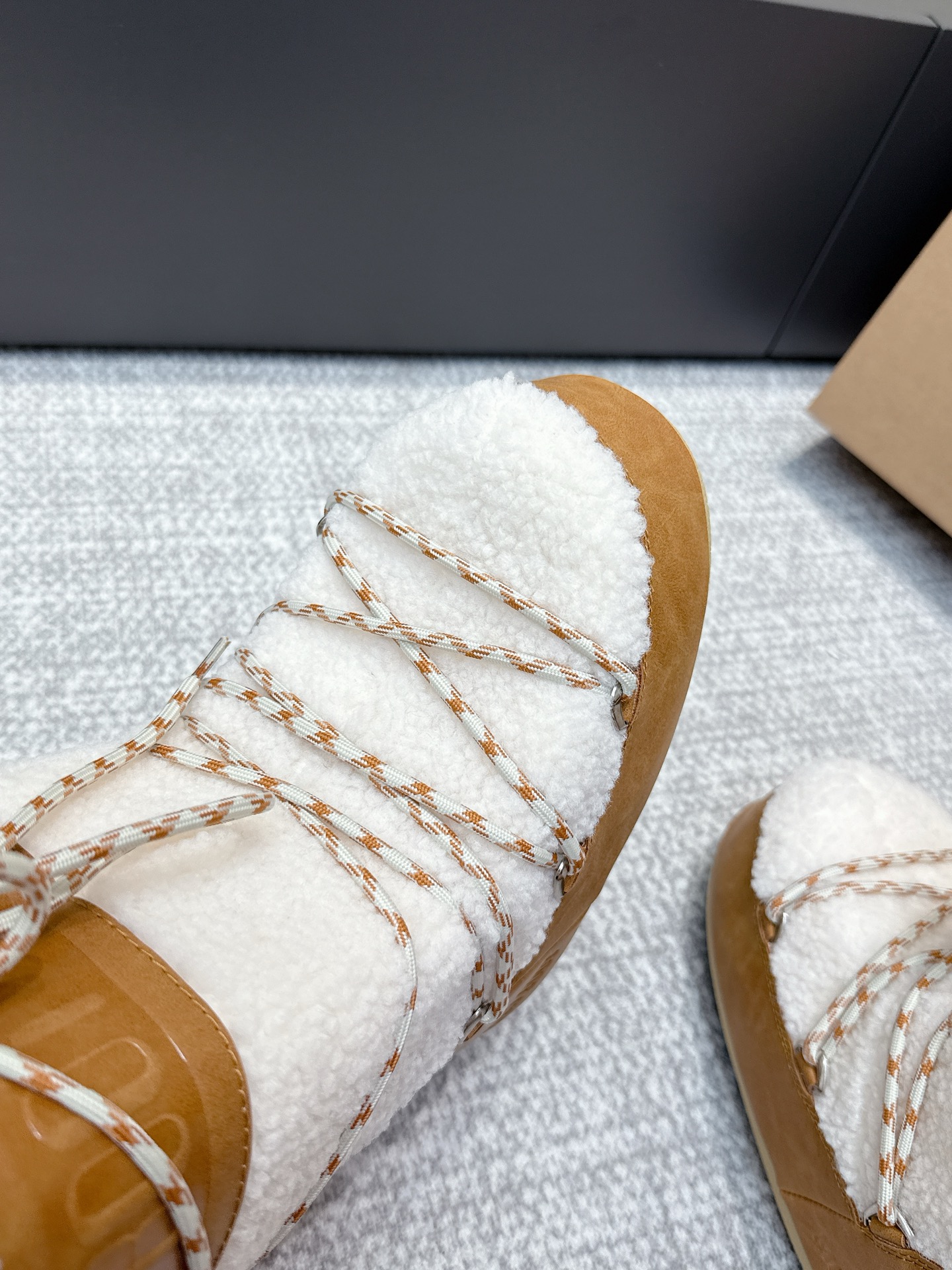 这款鞋子是AAAAA 1:1 质量 (非常棒). 使用了和原版一模一样的材料. 商标部分也保持了和UGG雪地靴一样. 图片拍摄是实物鞋子拍摄, 您所收到的实物保证和我们图片一模一样.