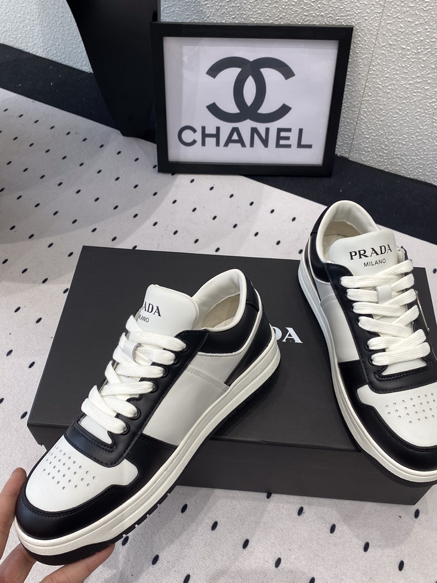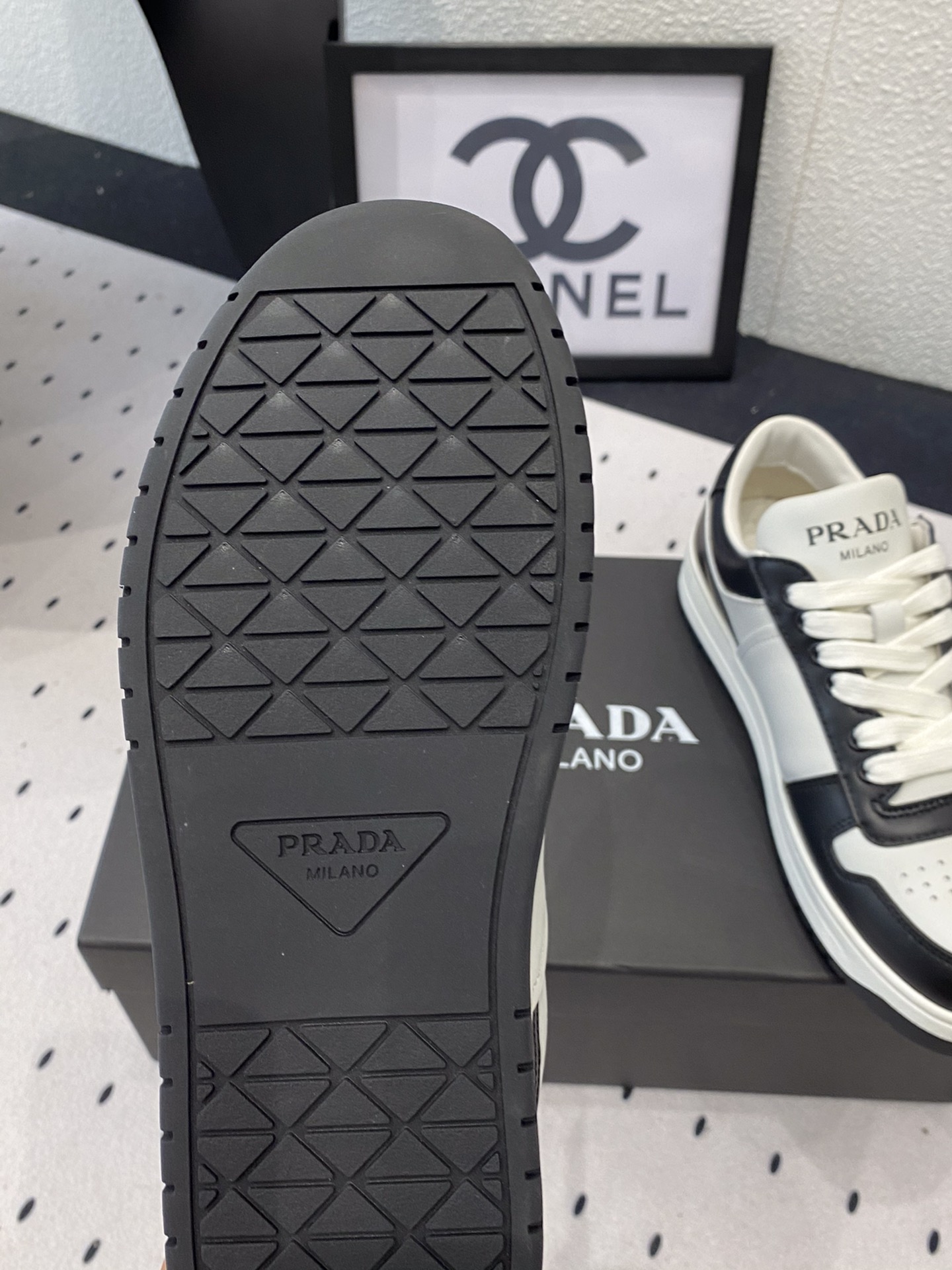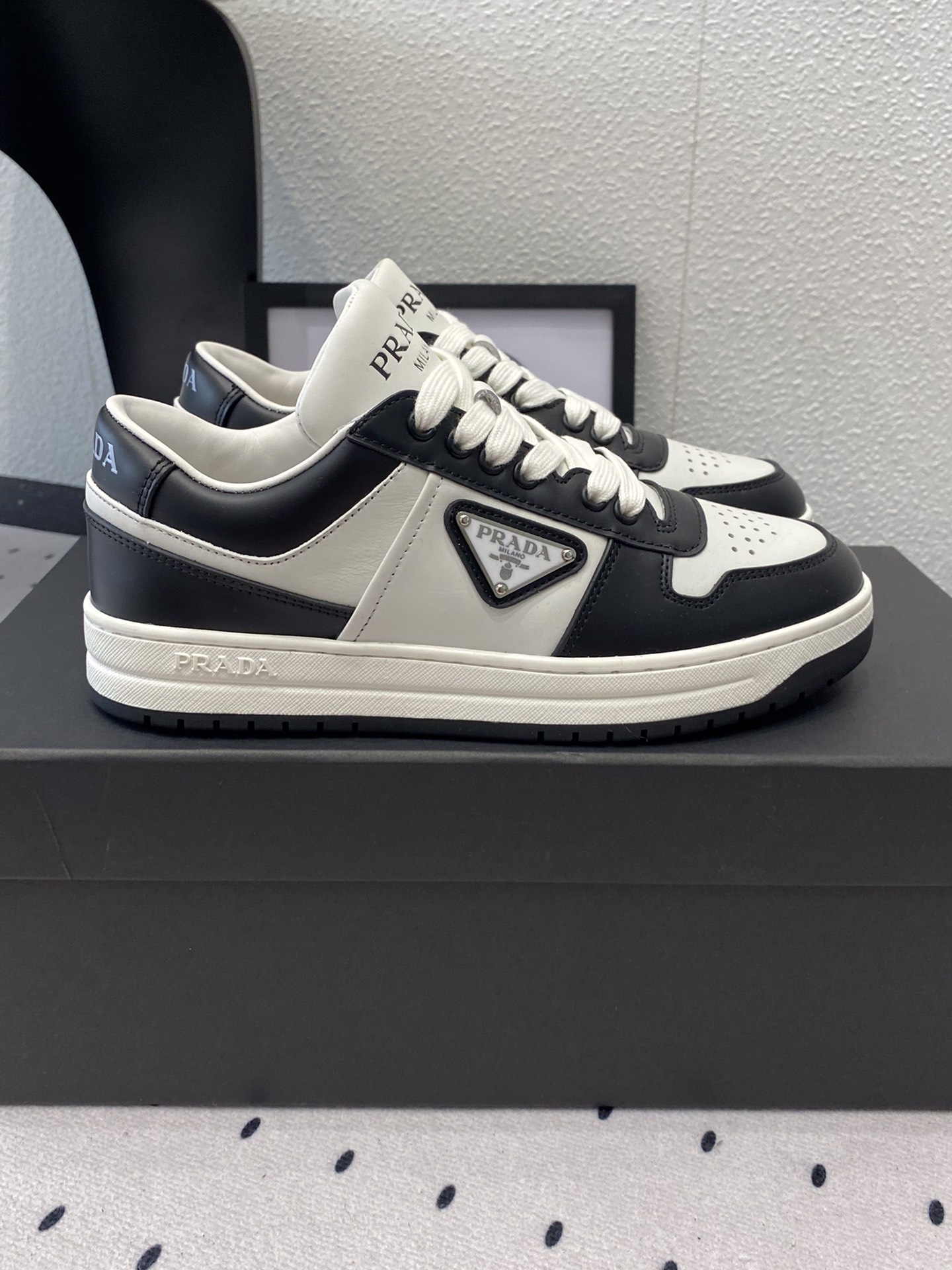 这款鞋子是AAAAA 1:1 质量 (非常棒). 使用了和原版一模一样的材料. 商标部分也保持了和普拉达/Prada一样. 图片拍摄是实物鞋子拍摄, 您所收到的实物保证和我们图片一模一样.