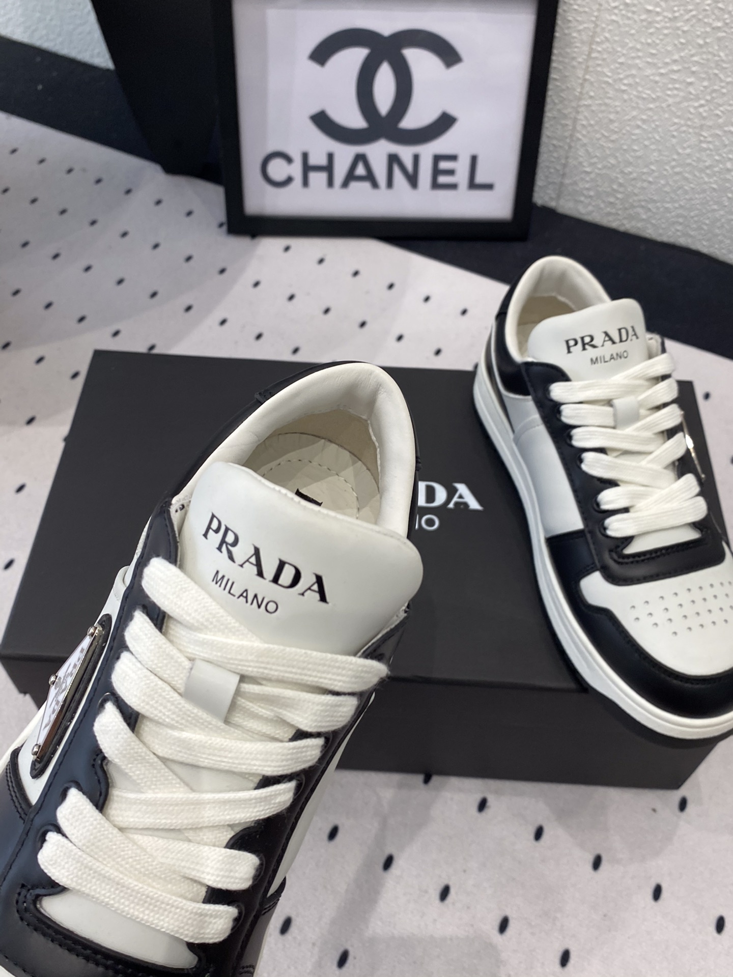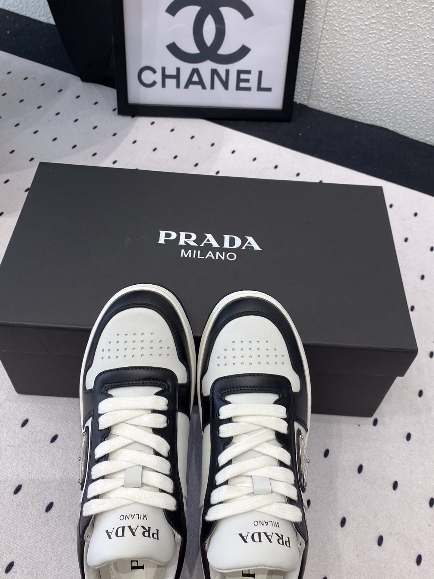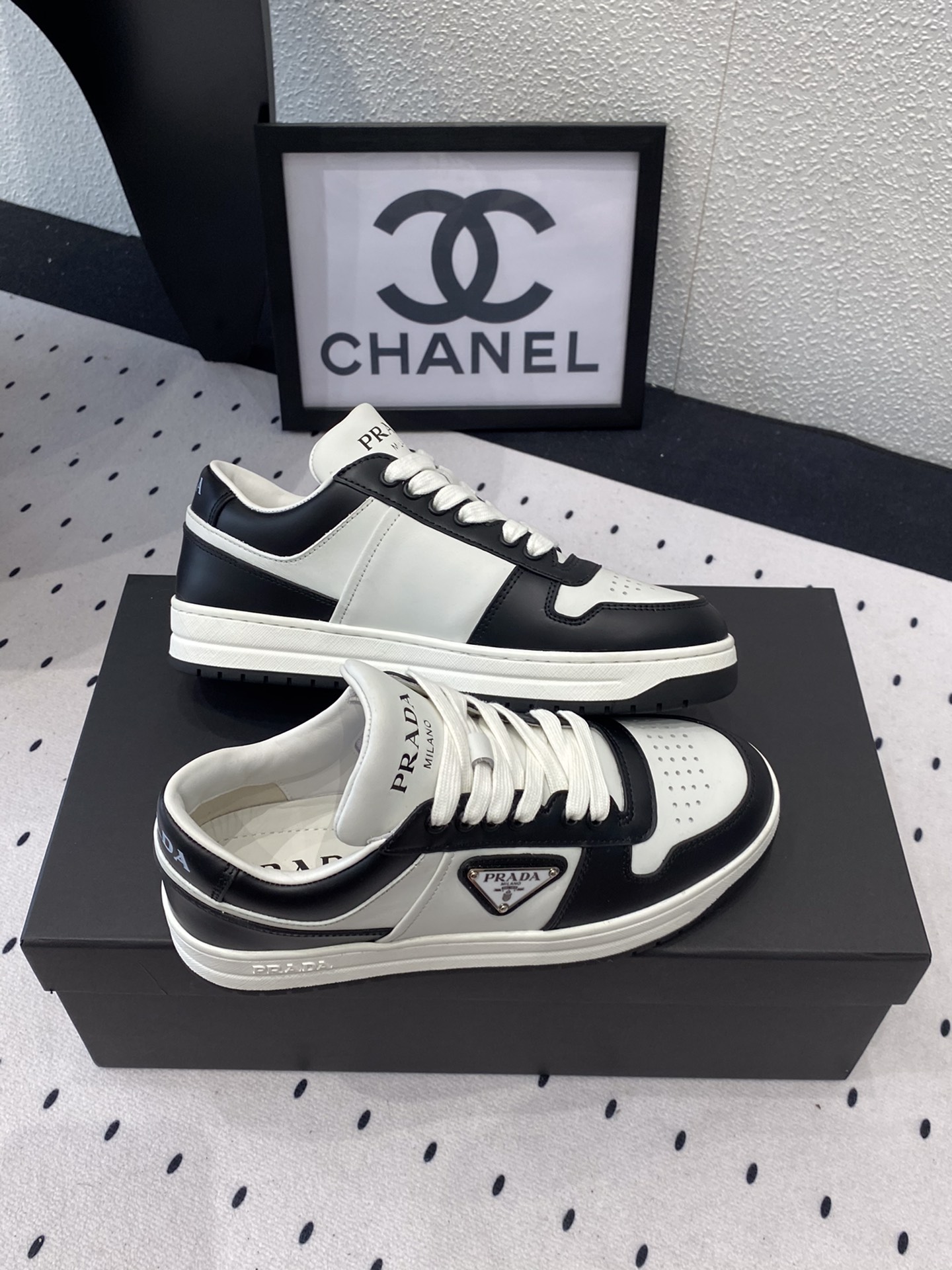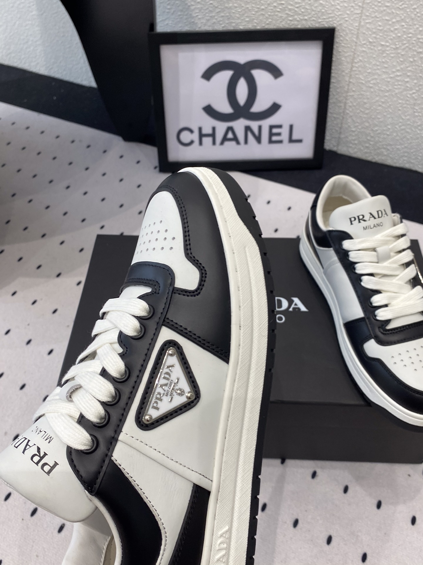 这款鞋子是AAAAA 1:1 质量 (非常棒). 使用了和原版一模一样的材料. 商标部分也保持了和普拉达/Prada一样. 图片拍摄是实物鞋子拍摄, 您所收到的实物保证和我们图片一模一样.