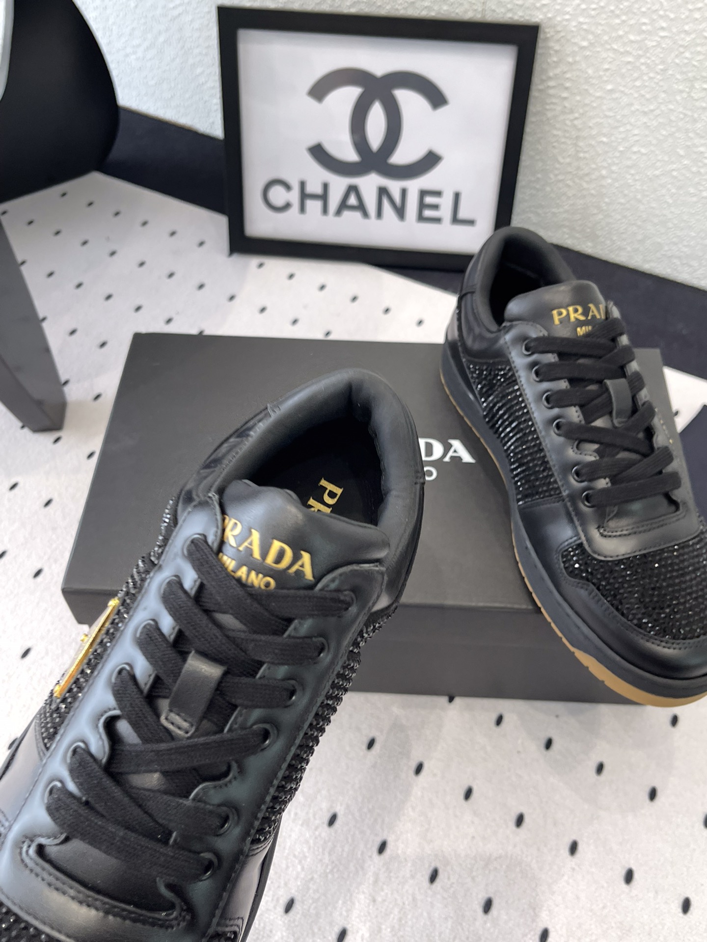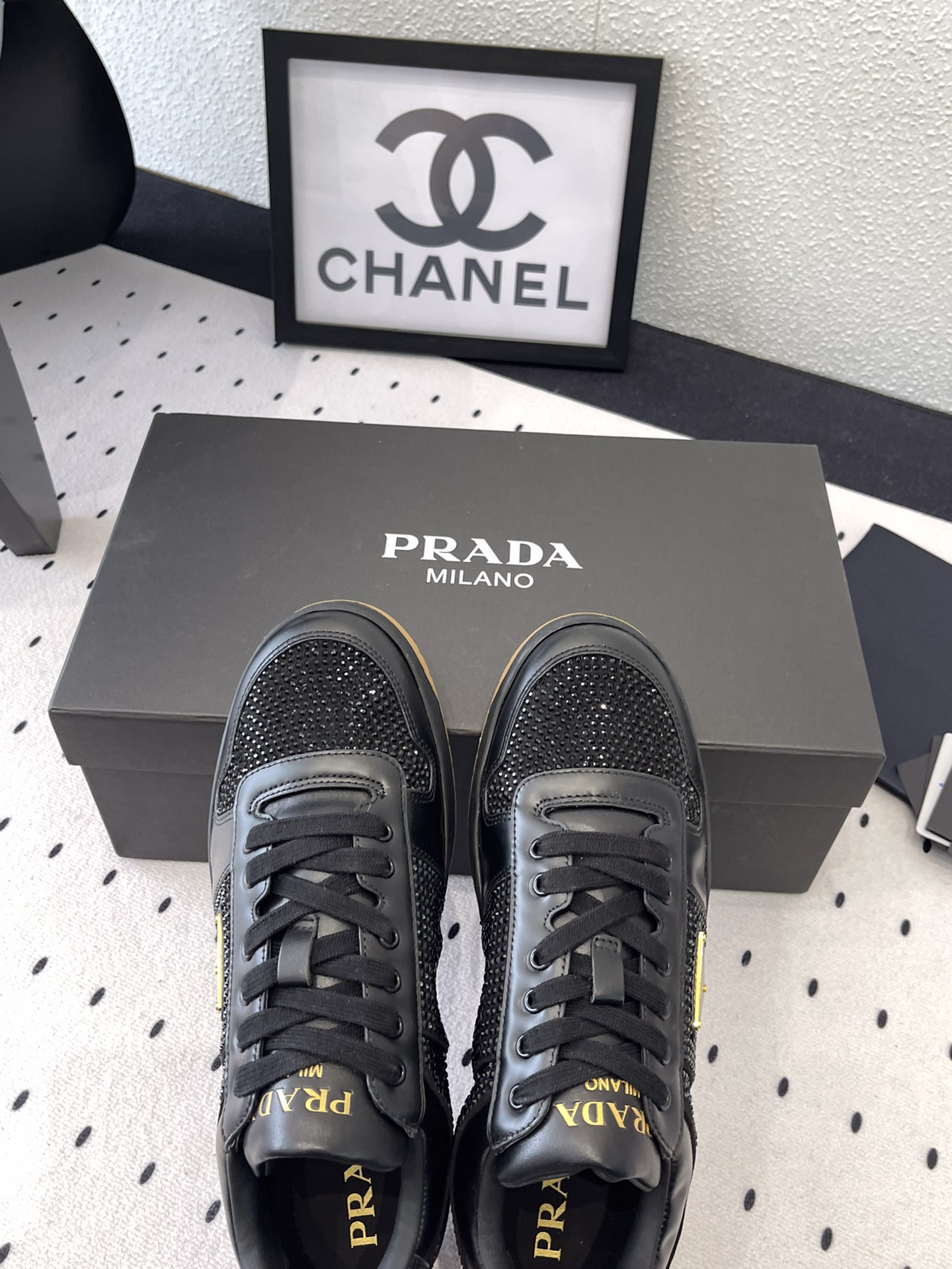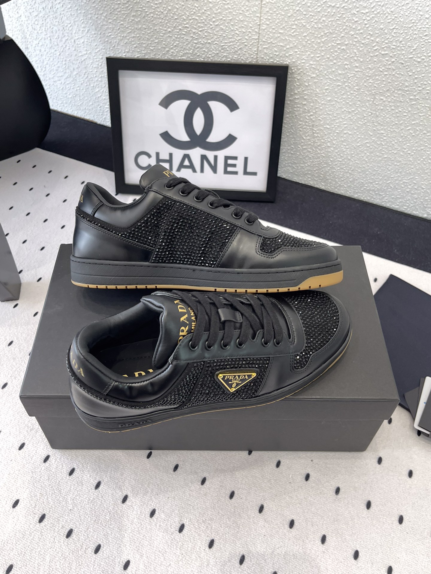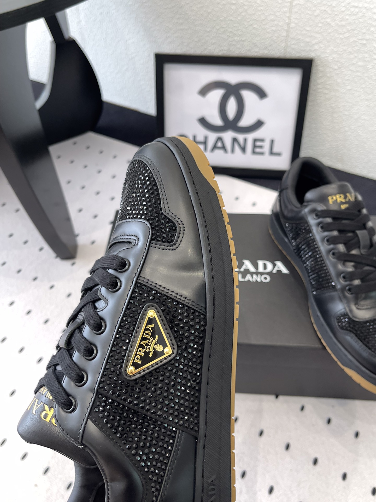 这款鞋子是AAAAA 1:1 质量 (非常棒). 使用了和原版一模一样的材料. 商标部分也保持了和普拉达/Prada一样. 图片拍摄是实物鞋子拍摄, 您所收到的实物保证和我们图片一模一样.