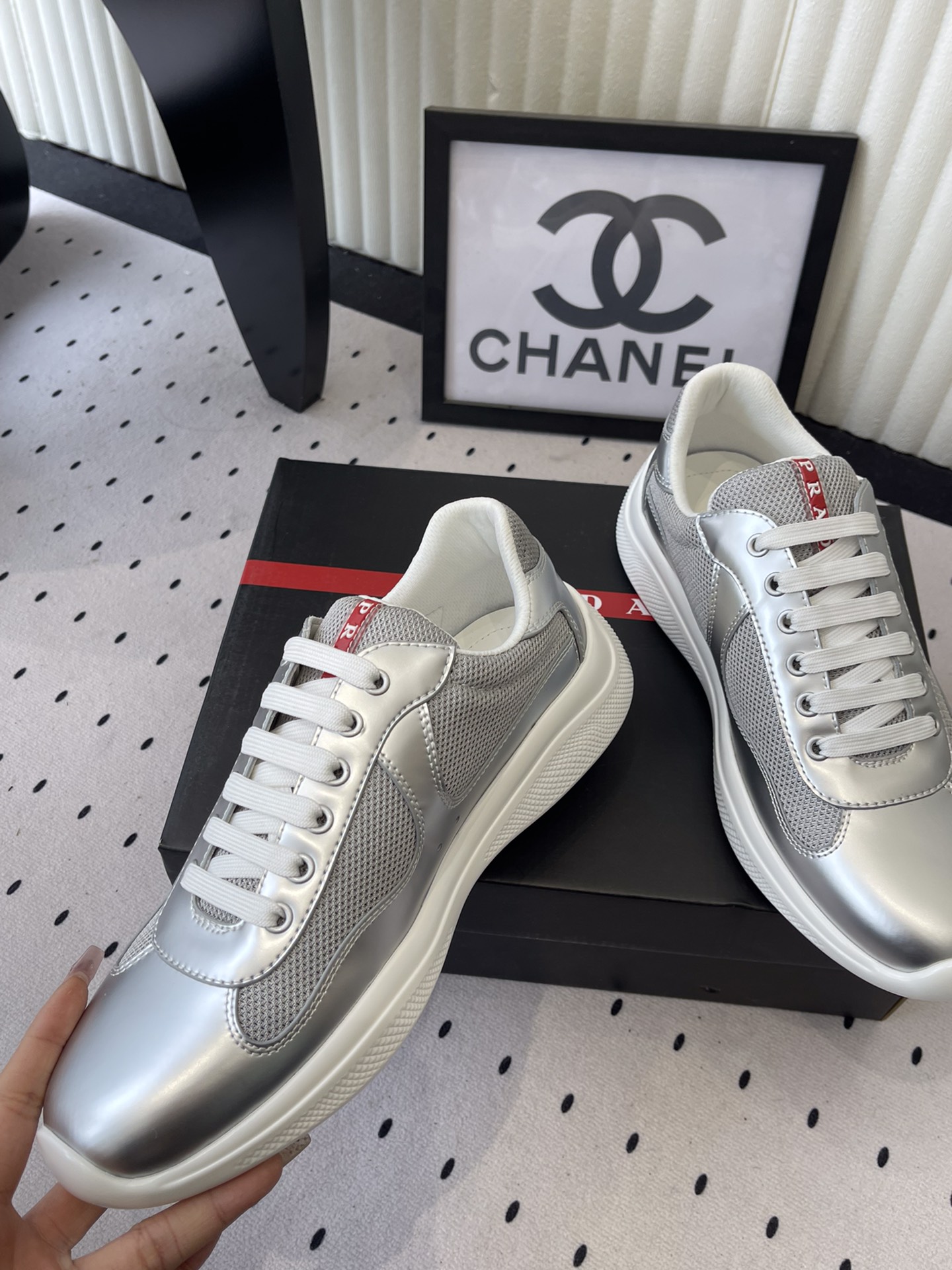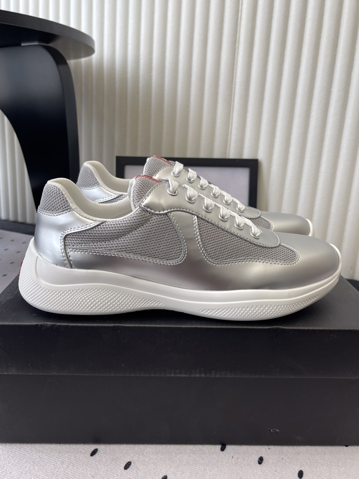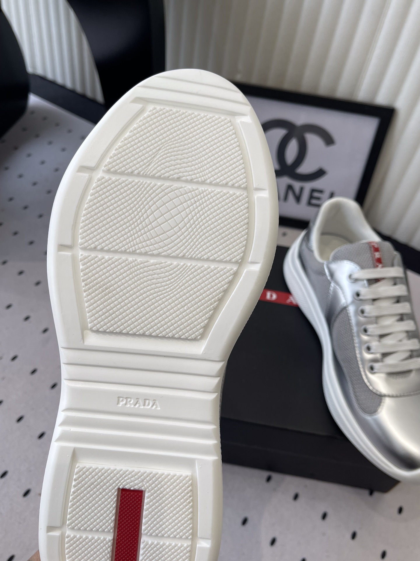 这款鞋子是AAAAA 1:1 质量 (非常棒). 使用了和原版一模一样的材料. 商标部分也保持了和普拉达/Prada一样. 图片拍摄是实物鞋子拍摄, 您所收到的实物保证和我们图片一模一样.