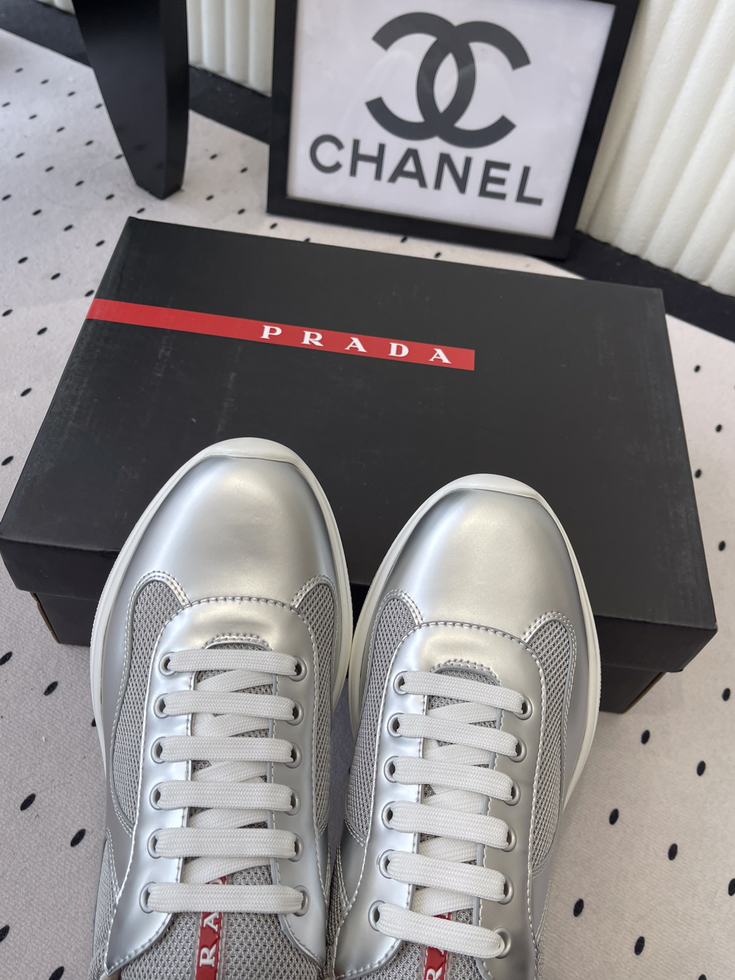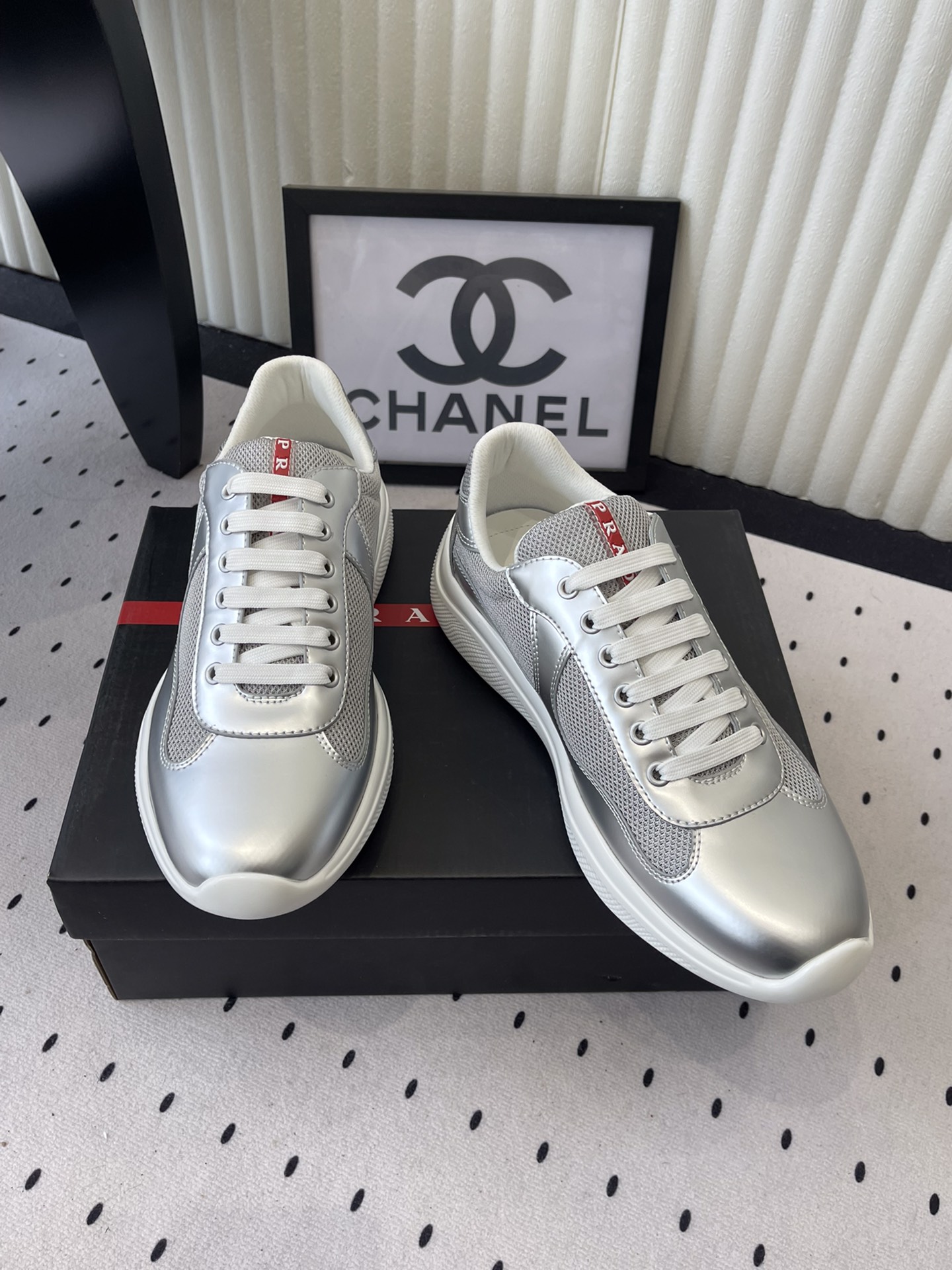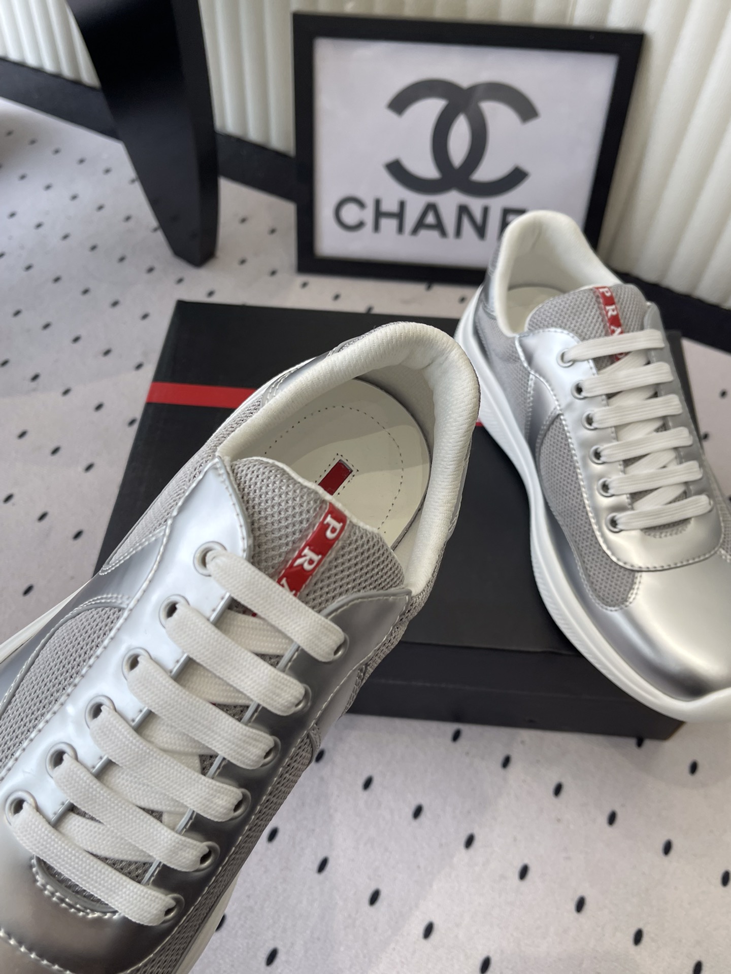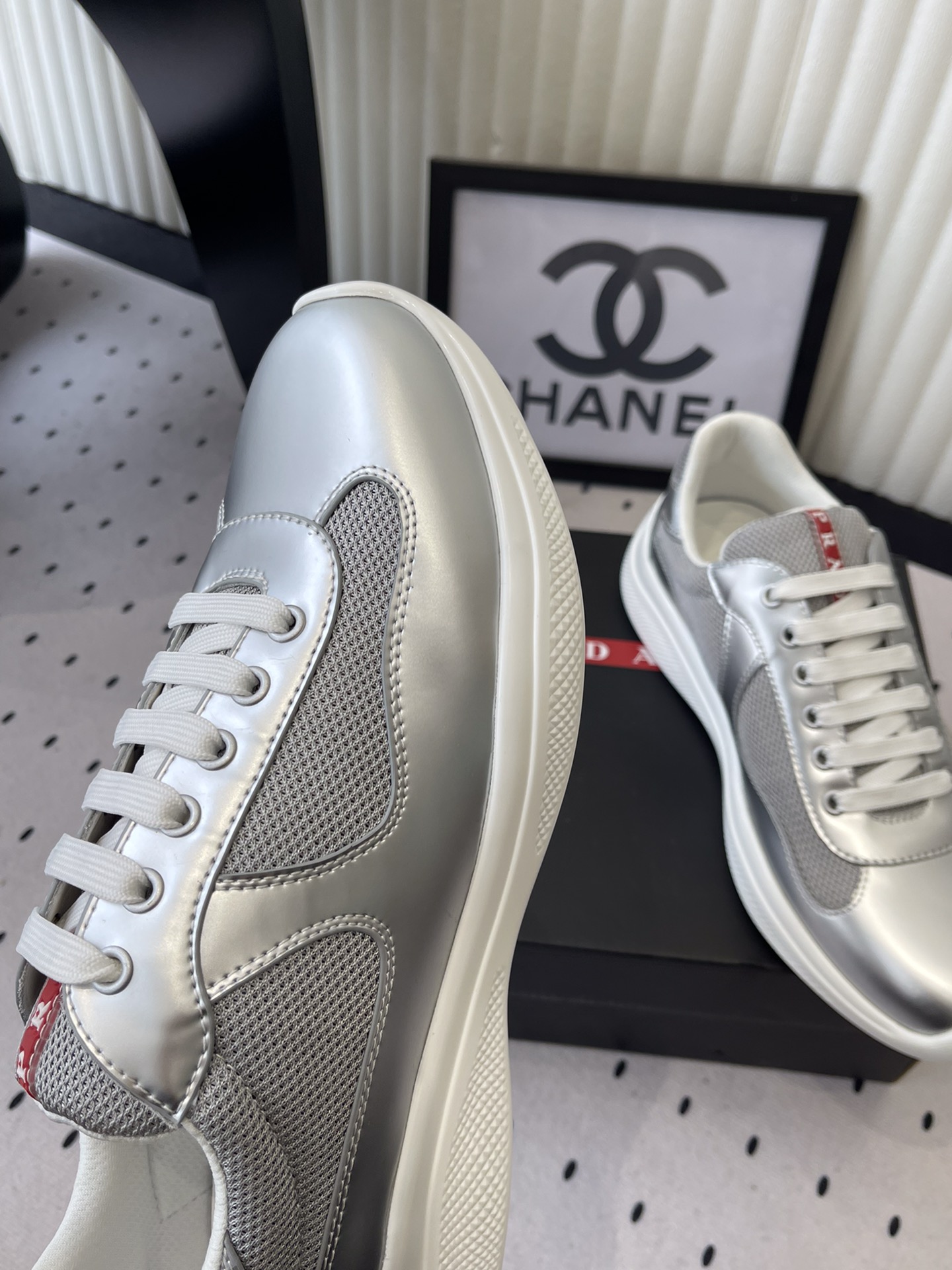 这款鞋子是AAAAA 1:1 质量 (非常棒). 使用了和原版一模一样的材料. 商标部分也保持了和普拉达/Prada一样. 图片拍摄是实物鞋子拍摄, 您所收到的实物保证和我们图片一模一样.