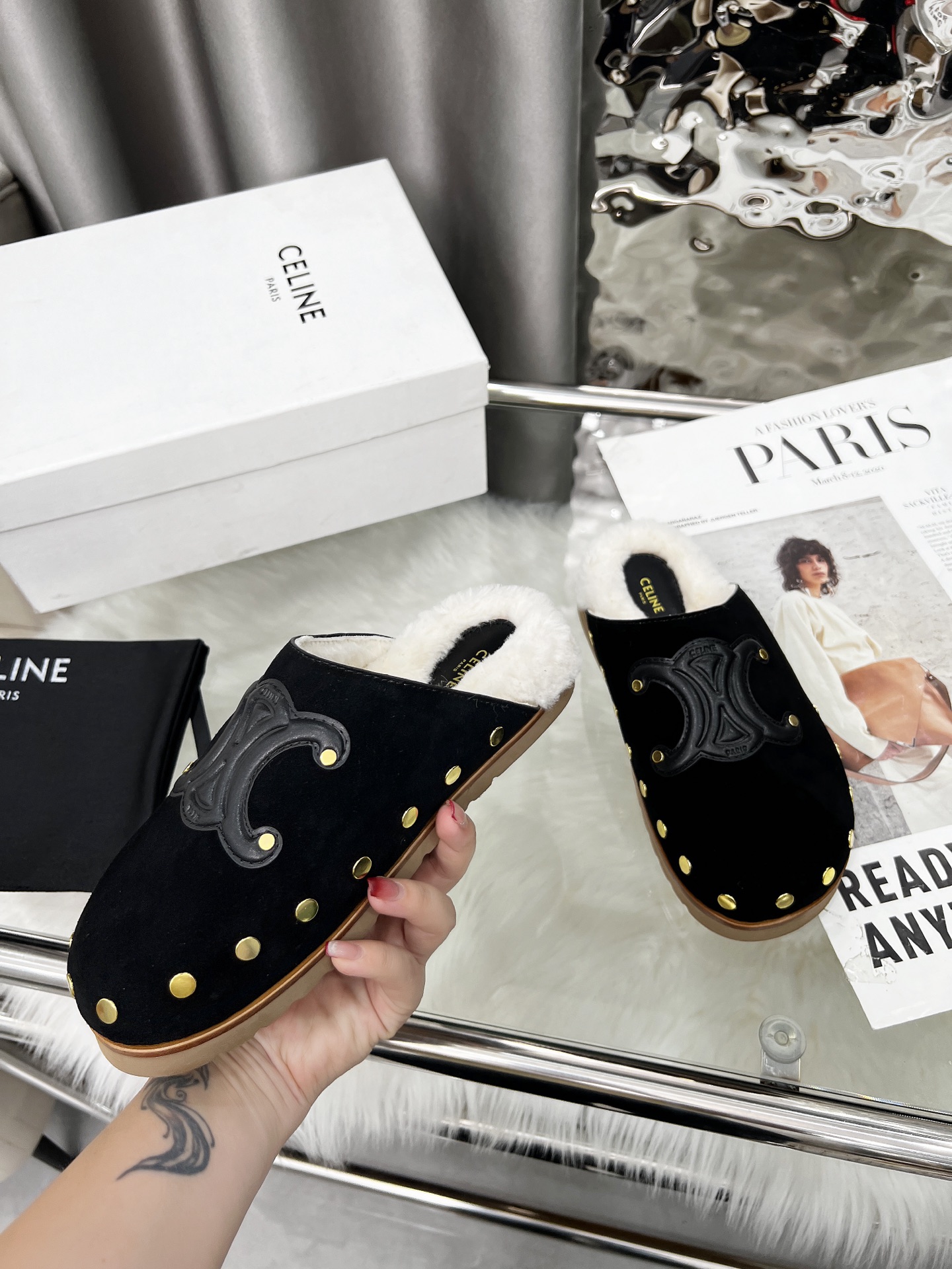 这款鞋子是AAAAA 1:1 质量 (非常棒). 使用了和原版一模一样的材料. 商标部分也保持了和思琳/Celine一样. 图片拍摄是实物鞋子拍摄, 您所收到的实物保证和我们图片一模一样.
