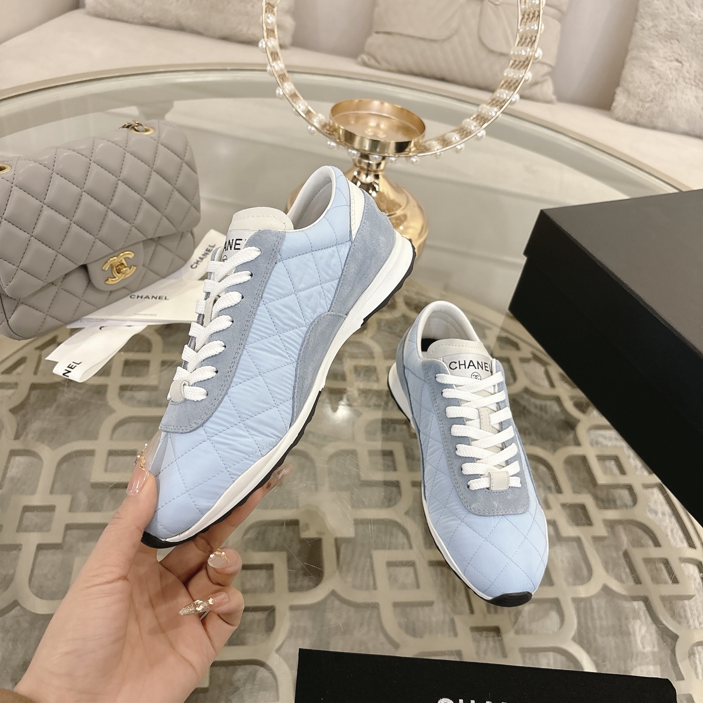 这款鞋子是AAAAA 1:1 质量 (非常棒). 使用了和原版一模一样的材料. 商标部分也保持了和香奈儿/Chanel一样. 图片拍摄是实物鞋子拍摄, 您所收到的实物保证和我们图片一模一样.