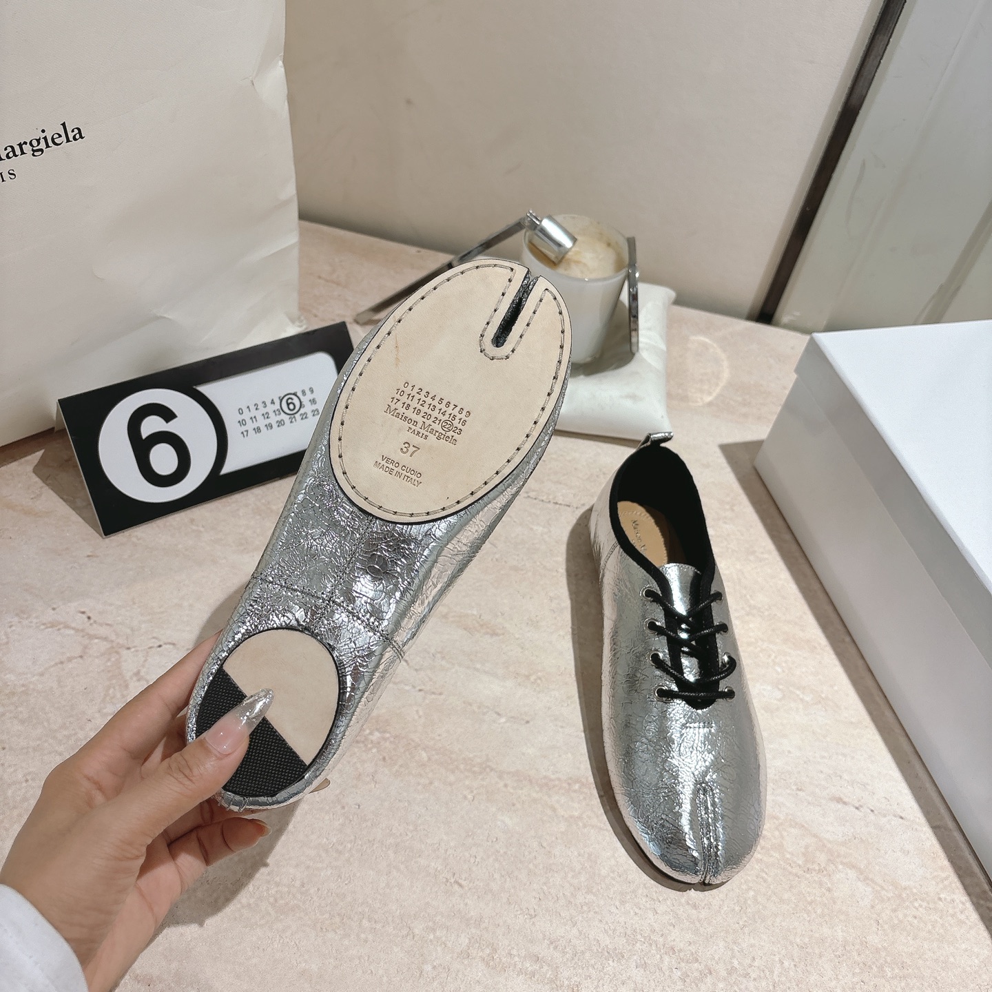 这款鞋子是AAAAA 1:1 质量 (非常棒). 使用了和原版一模一样的材料. 商标部分也保持了和Maison Margiela一样. 图片拍摄是实物鞋子拍摄, 您所收到的实物保证和我们图片一模一样.