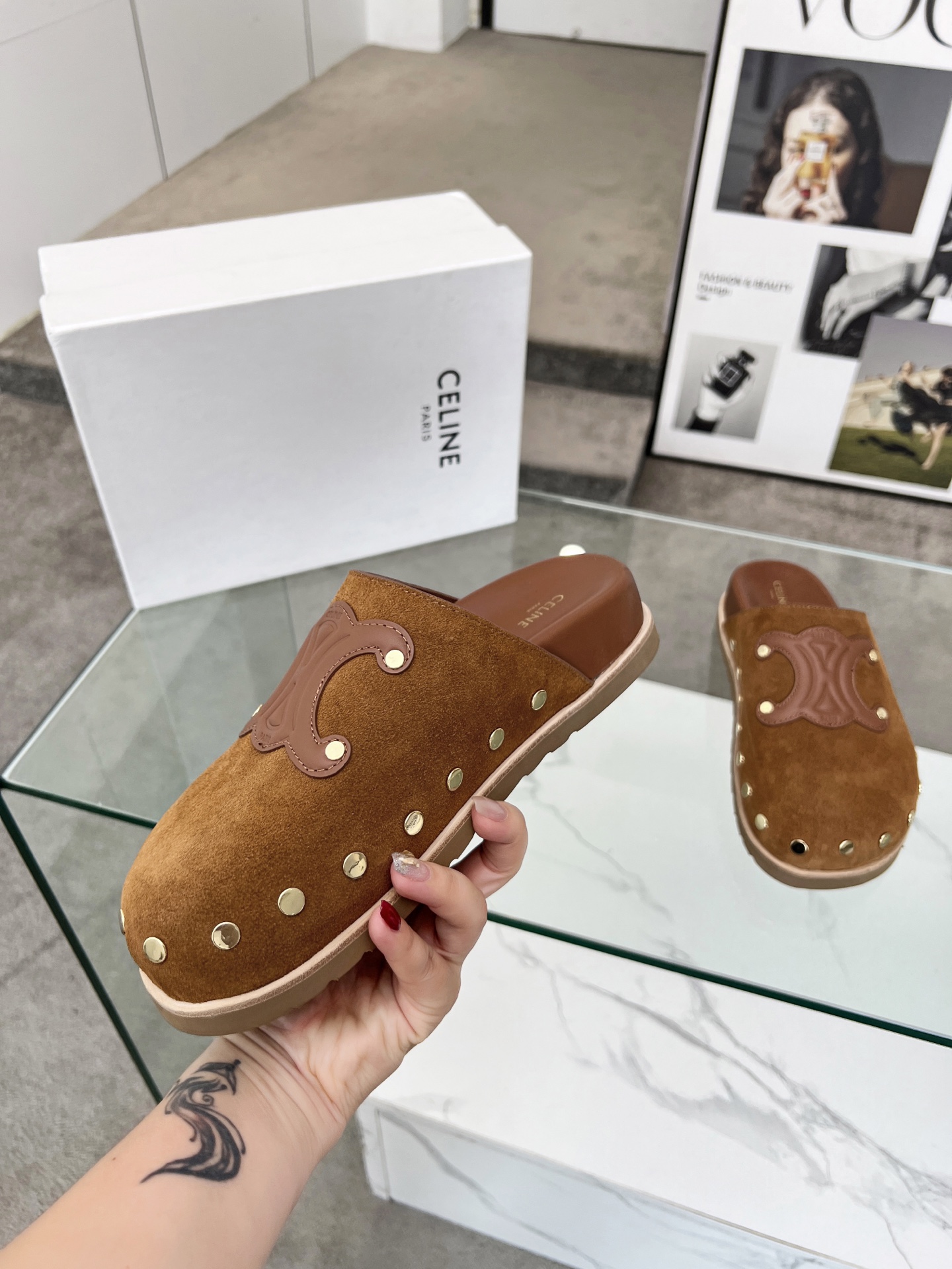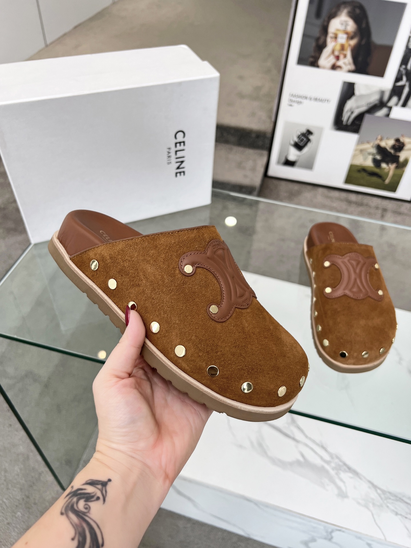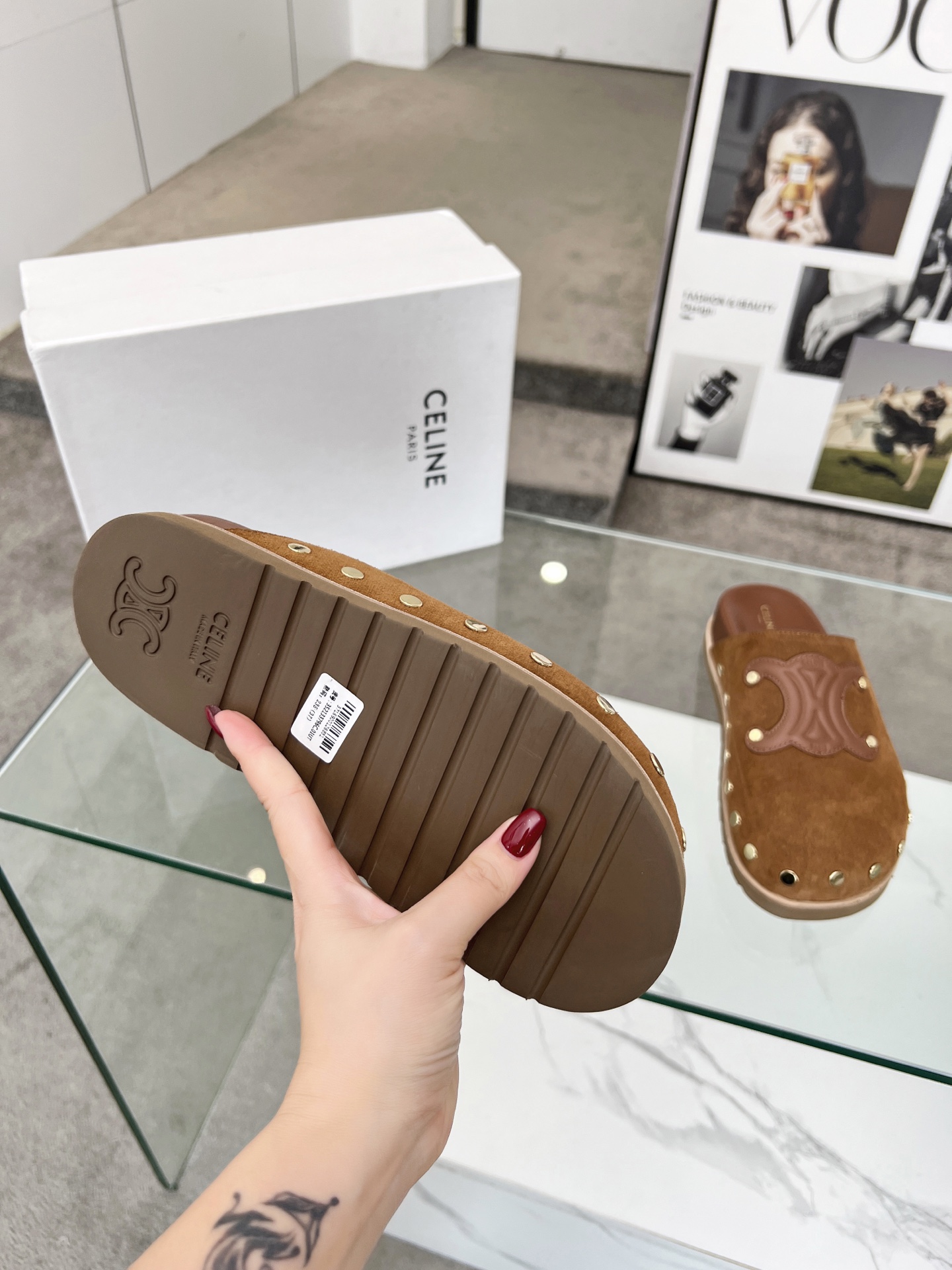 这款鞋子是AAAAA 1:1 质量 (非常棒). 使用了和原版一模一样的材料. 商标部分也保持了和思琳/Celine一样. 图片拍摄是实物鞋子拍摄, 您所收到的实物保证和我们图片一模一样.